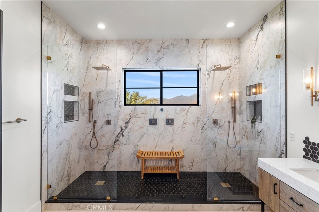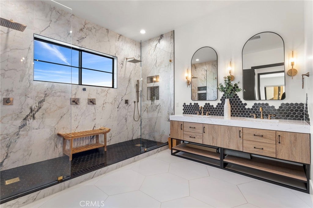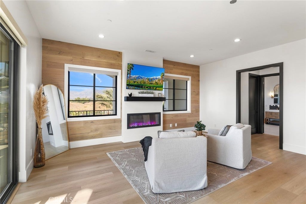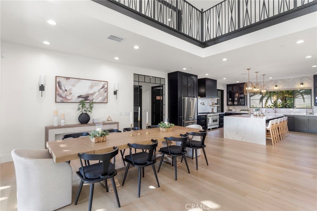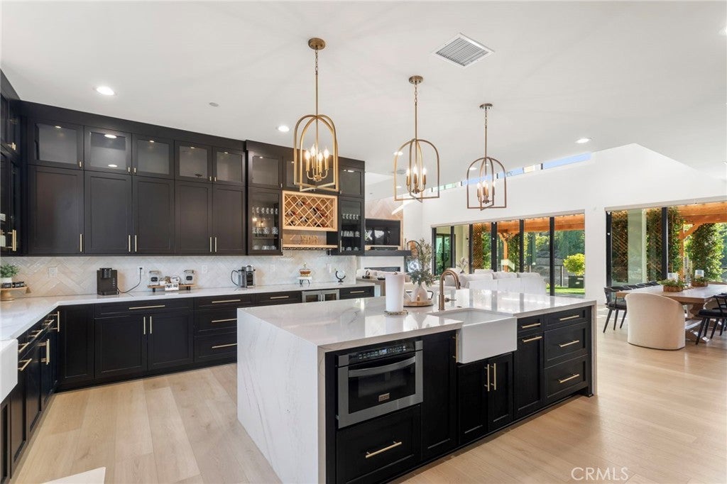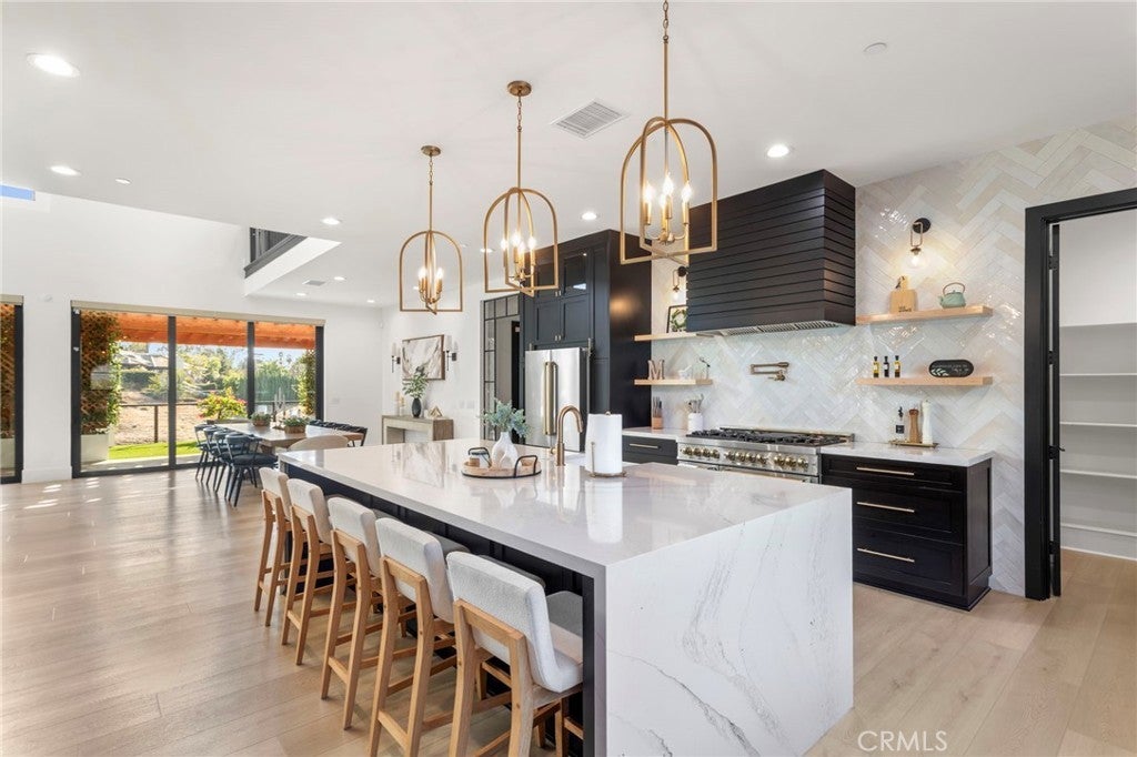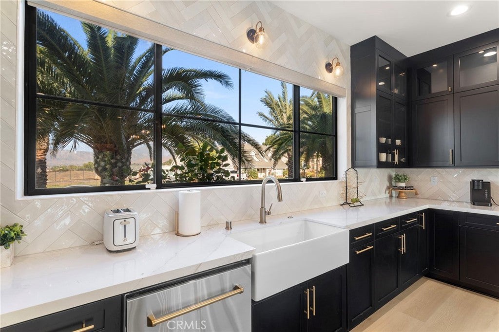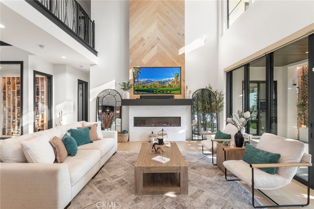 Experience refined California living in this exquisite estate with over 4,600 sq. ft. on nearly half an acre. Inside, soaring 9-ft doors, an expansive living room, upstairs loft, and a chef’s kitchen with a pot filler faucet, wine fridge, and under-cabinet lighting set the stage. A dramatic 30-ft wall of glass opens the home entirely to the backyard, creating seamless indoor-outdoor living. Unique details include motorized blinds, a secret liquor-display door with hidden storage, dual AC systems, and a master suite with its own alarm panel. Outdoors, enjoy a sparkling pool, wrap-around porch, $300,000 in lush landscaping, and panoramic 360° views. With 5 bedrooms, 6 baths, a double-door garage, and paid 10,000-watt solar, this estate blends luxury, comfort, and innovation.