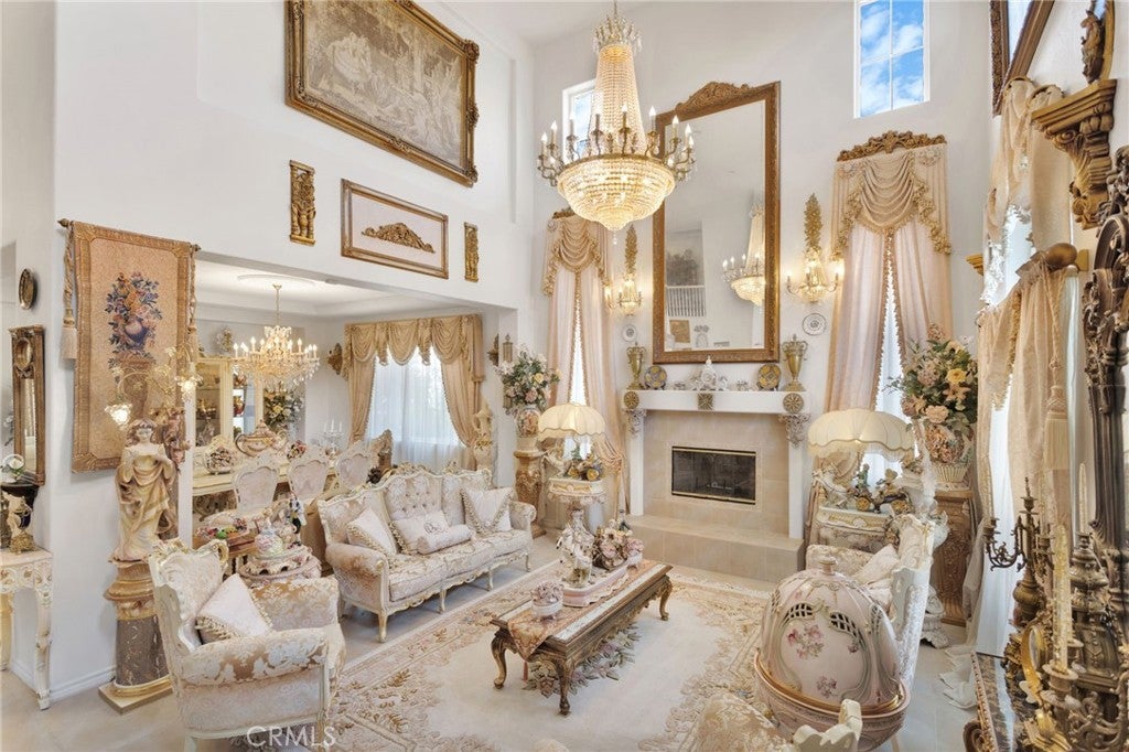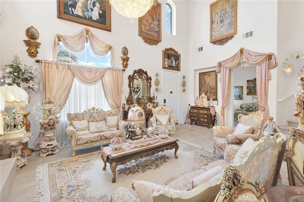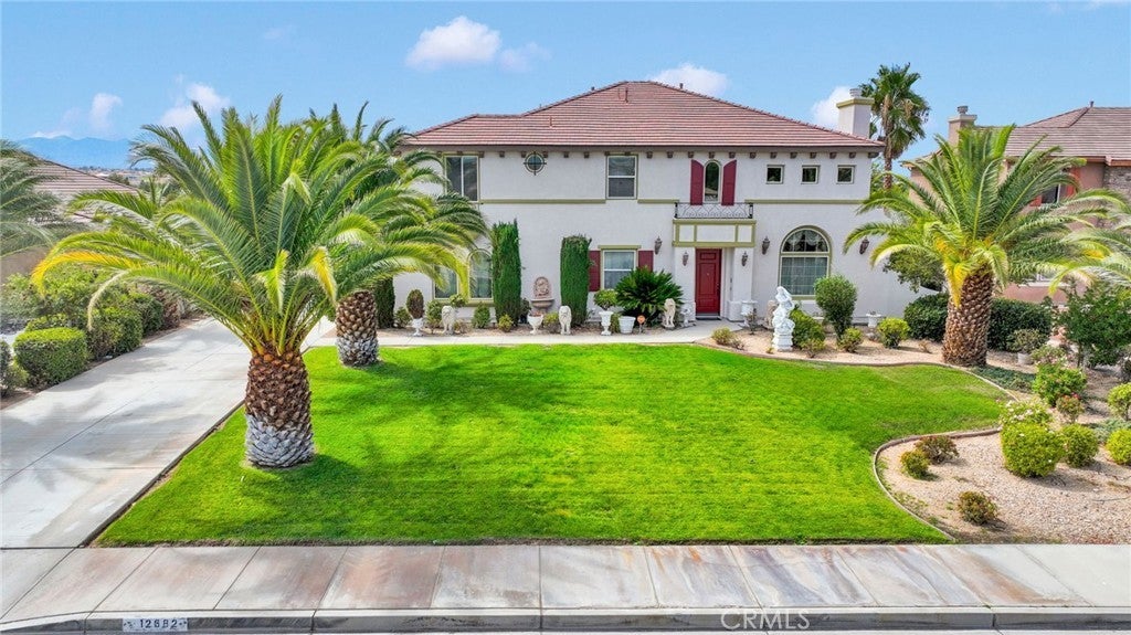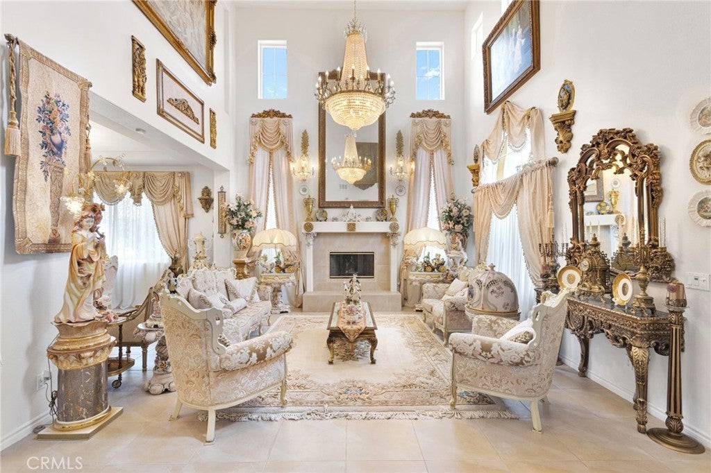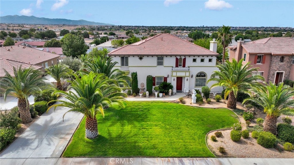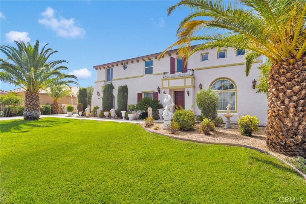 Welcome to a true masterpiece in Apple Valley! This stunning 7-bedroom, 6 -bathroom luxury estate perfectly blends timeless elegance with breathtaking views. From the moment you step inside, you’ll be captivated by the soaring ceilings, exquisite finishes, and the meticulous attention to detail in every corner. Plus an office and a mini suite bedroom downstairs. The grand living room showcases crystal chandeliers that sparkle with natural light pouring through the tall windows, while custom drapery, ornate gold accents an atmosphere of regal sophistication. Every space in this home reflects elegance—from the hand-carved furniture and artful wall décor. The home features a wired sound system throughout, perfect for entertaining or setting the mood in every room, along with a built-in intercom for convenience and security. The open layout flows seamlessly into multiple living and dining area, making it ideal for both intimate family gatherings and grand-scale entertaining. Additional bedrooms provide comfort and privacy for family or guests. Step outside to discover your own private paradise—perfect for enjoying High Desert sunsets and the surrounding beauty. This estate is more than just a home; it’s a statement of luxury and elegance in the heart of Apple Valley.