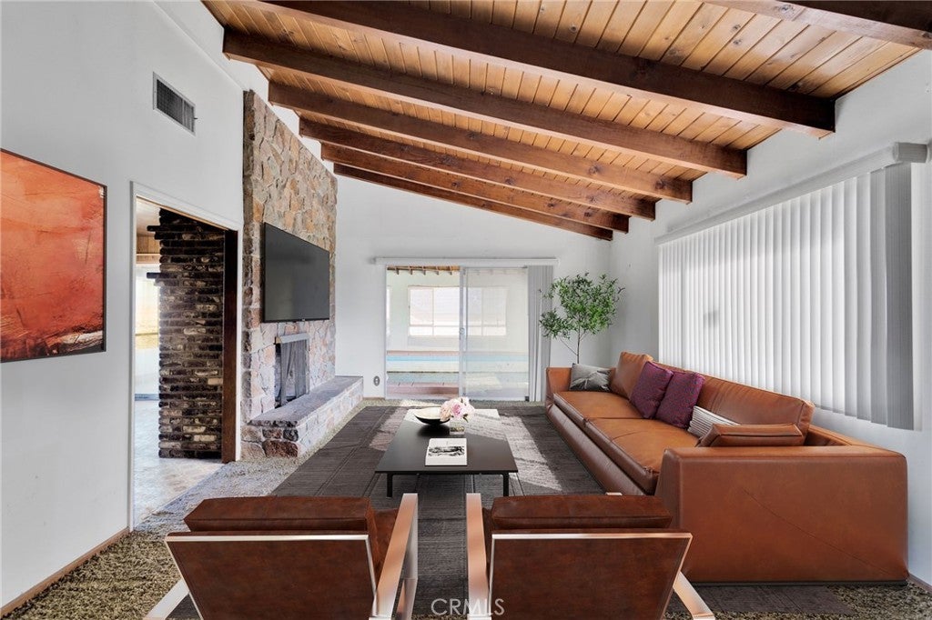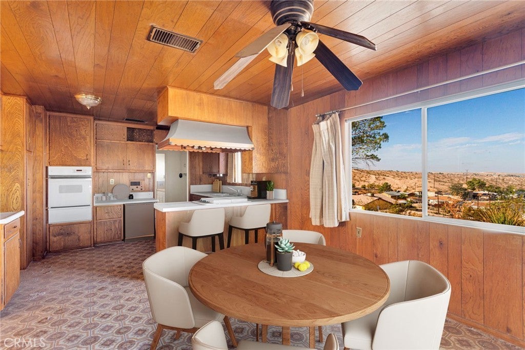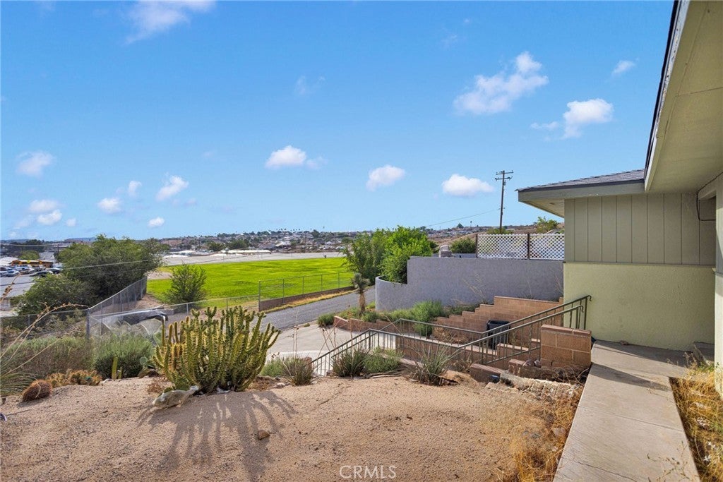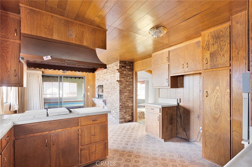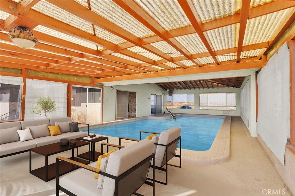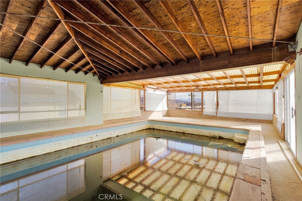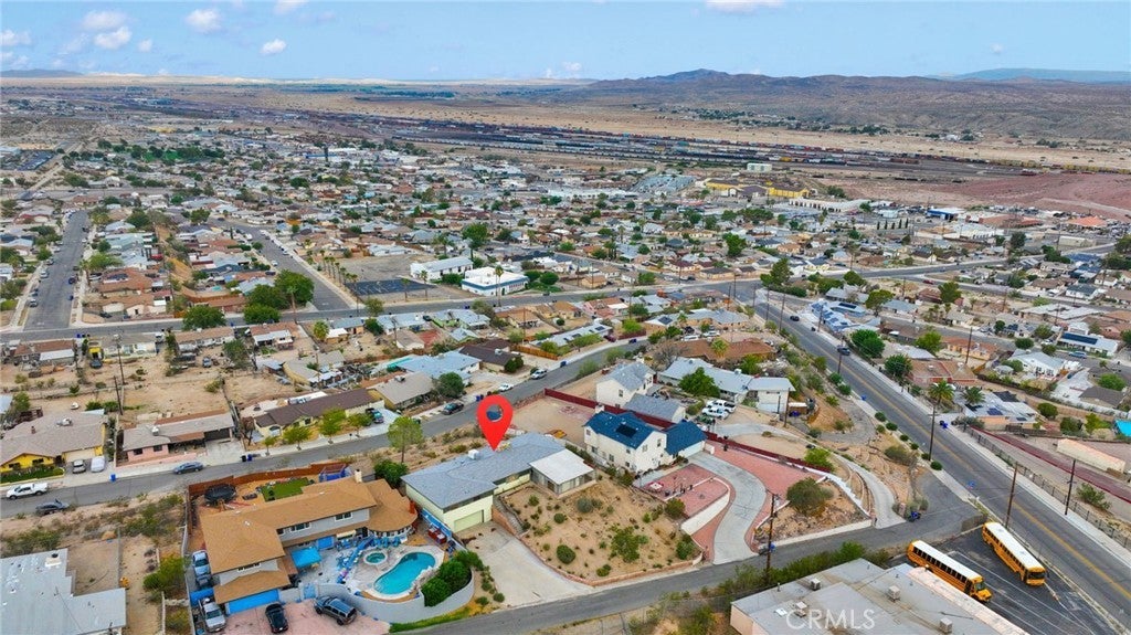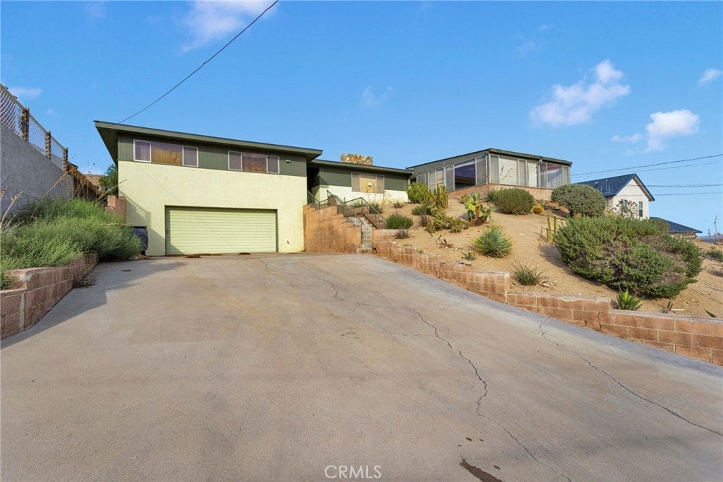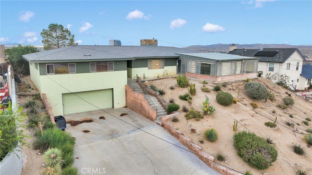 Calling all visionaries! This 3-bedroom, 2.5-bath home sits on a generous lot and offers endless potential for the right buyer. With vintage charm throughout, the home features wood-beamed ceilings, a stone fireplace, and mid-century touches waiting to be brought back to life. The kitchen showcases retro finishes, wood cabinetry, and large windows that flood the space with natural light and sweeping desert views. A spacious enclosed patio/sunroom with a pool adds valuable square footage and flexibility—perfect for future entertaining, hobbies, or a lounge area. Downstairs, the attached two-car garage includes not only additional storage space, but also a convenient powder room. Set on a sloped lot landscaped with desert-friendly vegetation and a wide driveway, the property provides ample room for parking, gardening, or expansion. This is a great opportunity to restore a classic Barstow home with vintage character, and standout amenities. Sold as-is. Buyer to conduct their own due diligence.