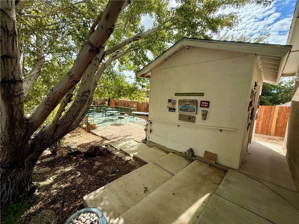 Beautiful single-story, one owner, custom home with 4 bedrooms, 2 3/4 bathrooms in 2553 sq. feet of thoughtfully designed living space. This open floor plan with vaulted ceilings features entry, spacious living room with wood burning fireplace, dining room with French doors out to the back patio and large kitchen. Kitchen has newer appliances, walk in pantry, cabinets that pull out, lots of drawers, and a large island for prep work or to sit around as a family. To the left of the home are 2 nice size bedrooms, main bath and the master bedroom with walk in closet and adjoining bath. To the right of the living area is access to the double car garage, bonus room for whatever you choose to make it and the 2nd Master bedroom and bath. This custom room has pine ceilings and the feel of being in a mountain resort with access to the great backyard. In the back you have a 15x35 workshop with 220 power, fenced garden with irrigation, 2 storage sheds, beautiful fruit trees and an outdoor deck that would be great for those large family get togethers. There are 32 solar panels that are paid for, central air and swamp cooler in garage not on roof that is duct through-out the home, security doors front and back, alarm system, in home laundry room with folding table, sink and ample storage, central vacuum, solar electric gate across the front driveway, and custom drainage to divert water from the front when it rains to a retention pond under the large deck in the back. THIS HOME IS A MUST SEE. Come take a look.