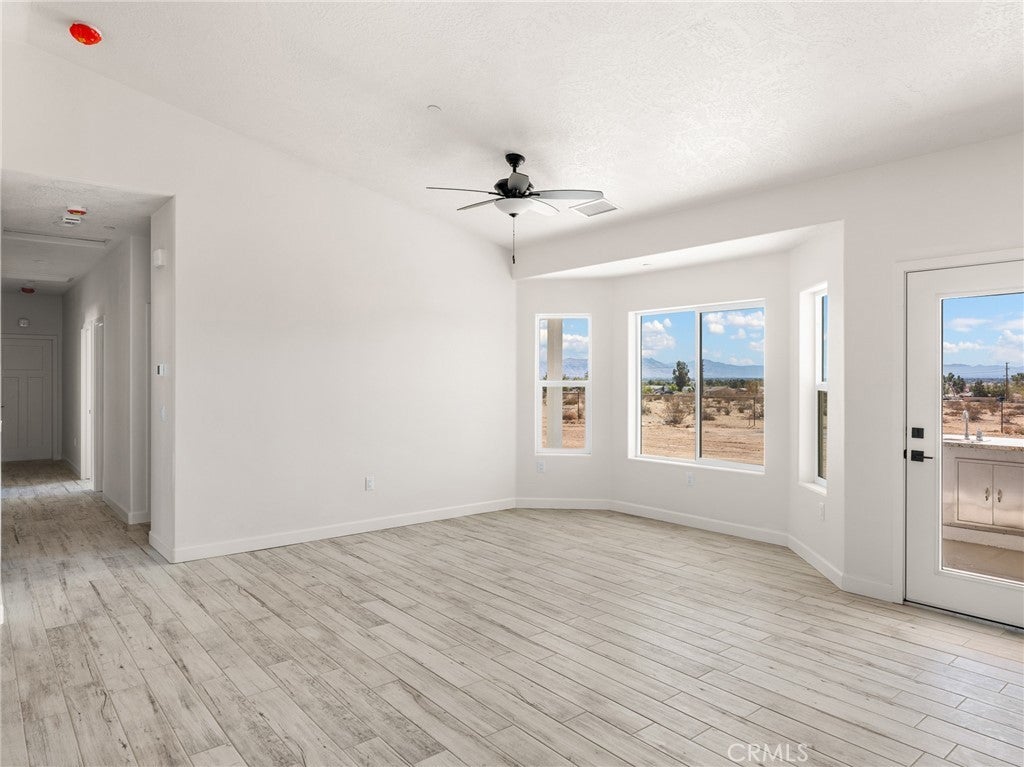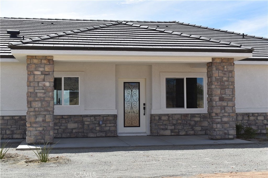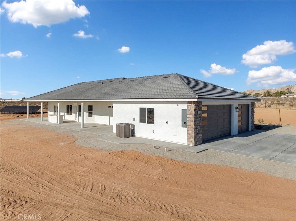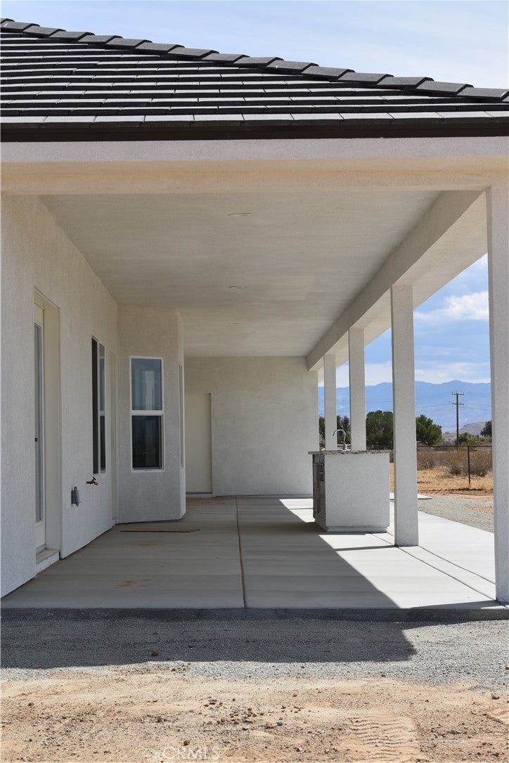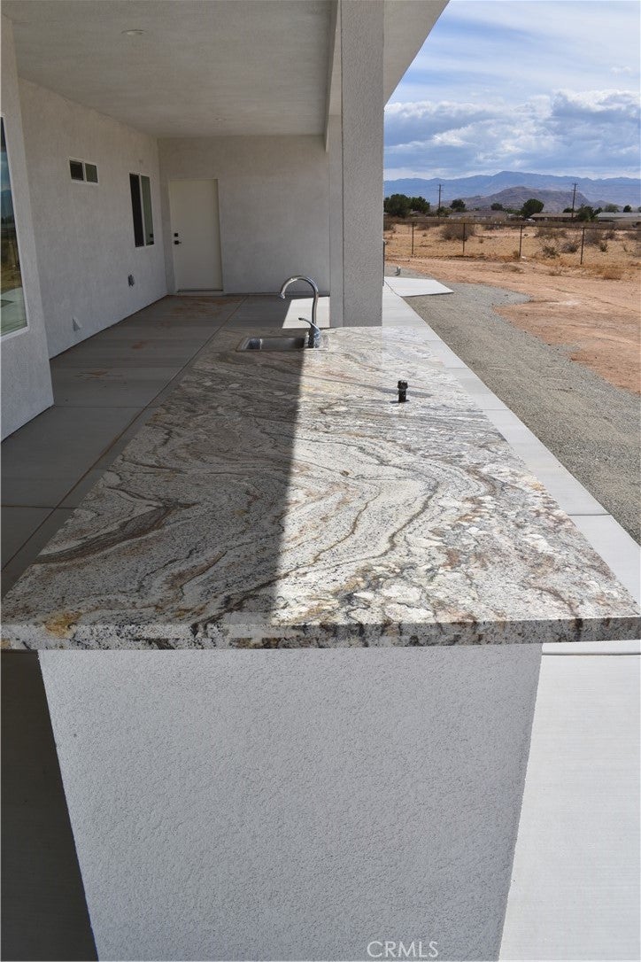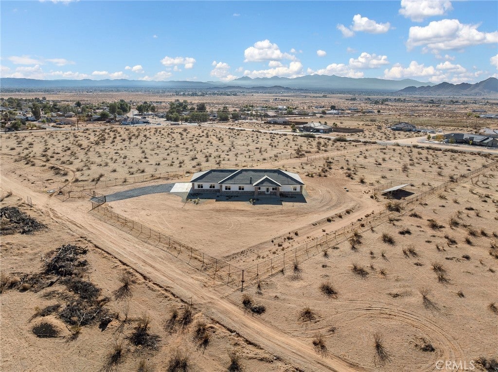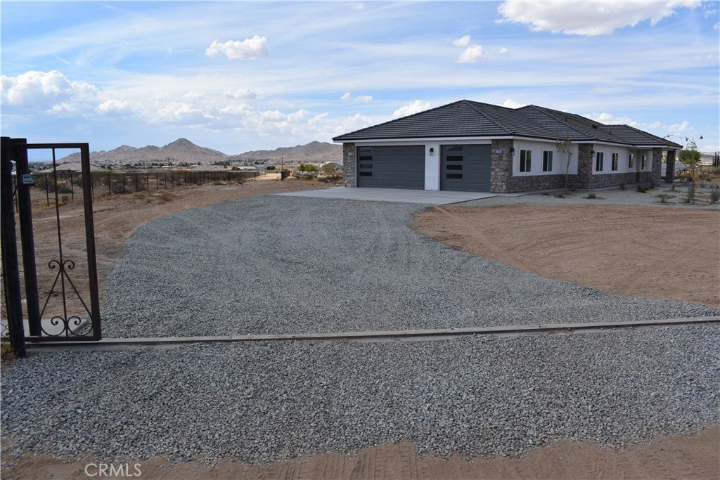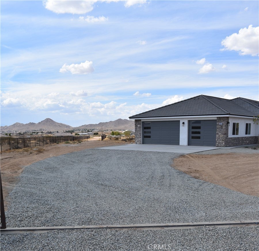 Beautiful new build on Pauhaska Road in Apple Valley, California. The view lot features 1.9 acres. The home is 2095 square feet. There are 4 bedrooms, one master bathroom with a freestanding tub, and one additional bathroom. The home has 9-foot ceilings, is sheer paneled and earthquake proof. The kitchen includes a pantry and a KitchenAid dishwasher. There is propane subbed outside, and a BBQ platform. It also contains subbed out features for electrical in the back yard for lighting. There is a 3-car garage with insulated doors and an oversized solar system, stucco eaves and a 30-year roof warranty. The seller will set the meter and pull power on or about October 20-30, 2025.