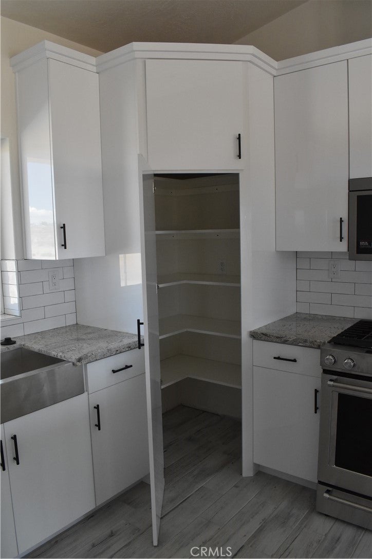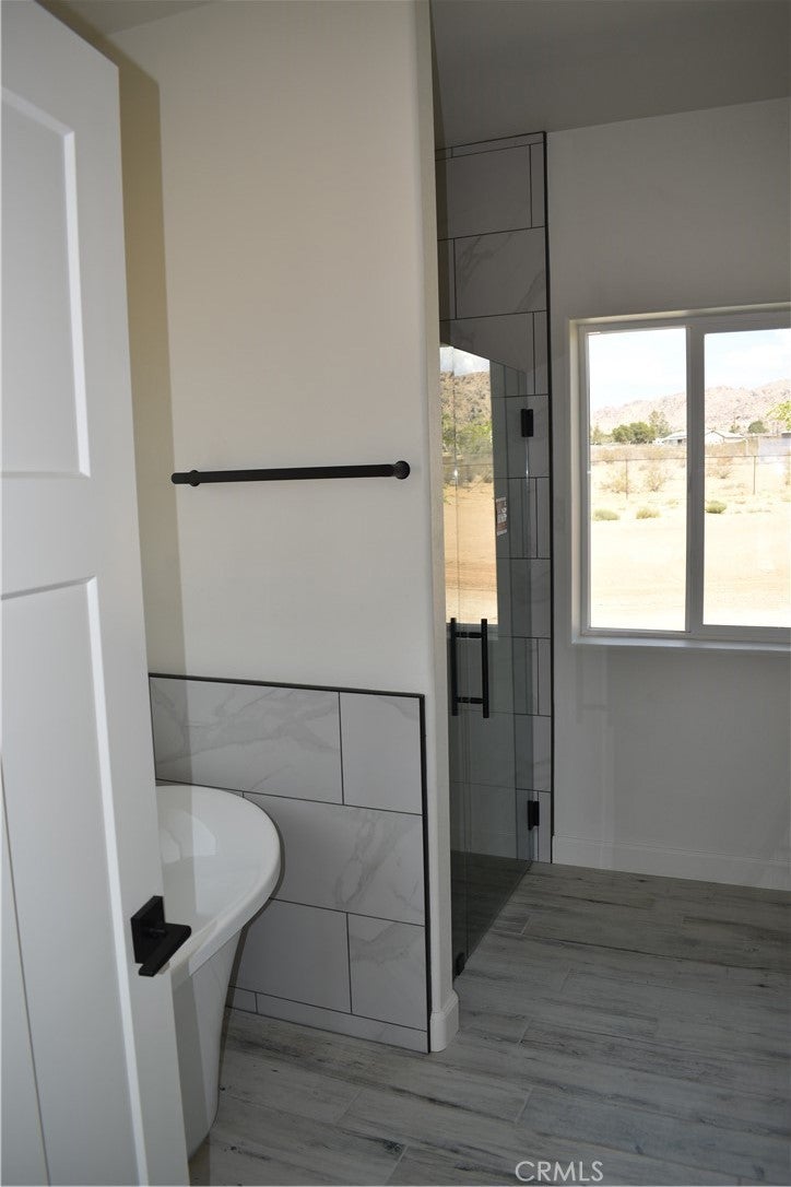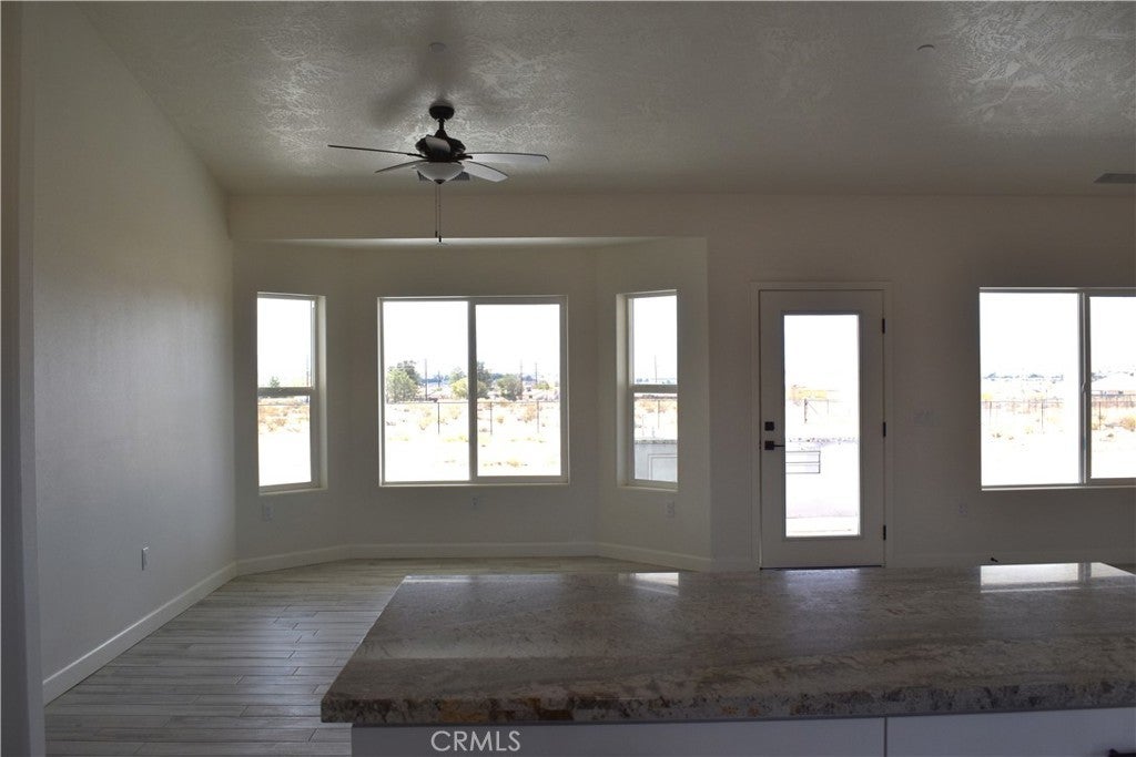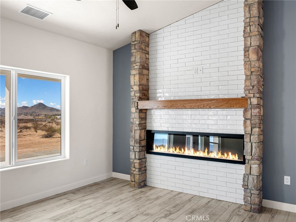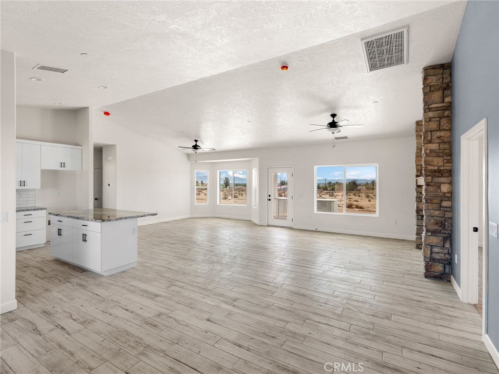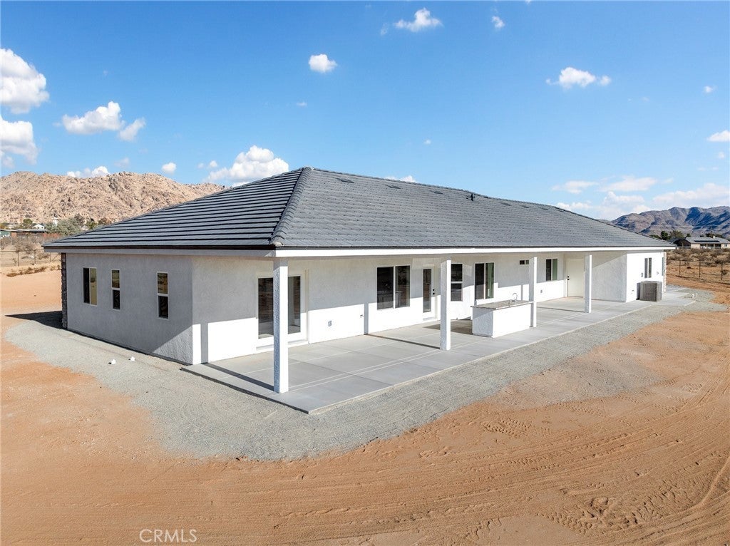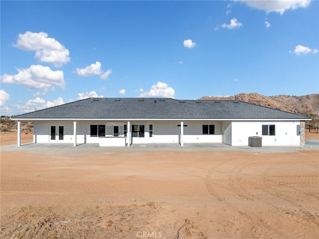 Beautiful new build on Pauhaska Road in Apple Valley, California. The view lot features 1.9 acres. The home is 2095 square feet. There are 4 bedrooms, one master bathroom with a freestanding tub, and one additional bathroom. The home has 9-foot ceilings, is sheer paneled and earthquake proof. The kitchen includes a pantry and a KitchenAid dishwasher. There is propane subbed outside, and a BBQ platform. It also contains subbed out features for electrical in the back yard for lighting. There is a 3-car garage with insulated doors and an oversized solar system, stucco eaves and a 30-year roof warranty. The seller will set the meter and pull power on or about October 20-30, 2025.