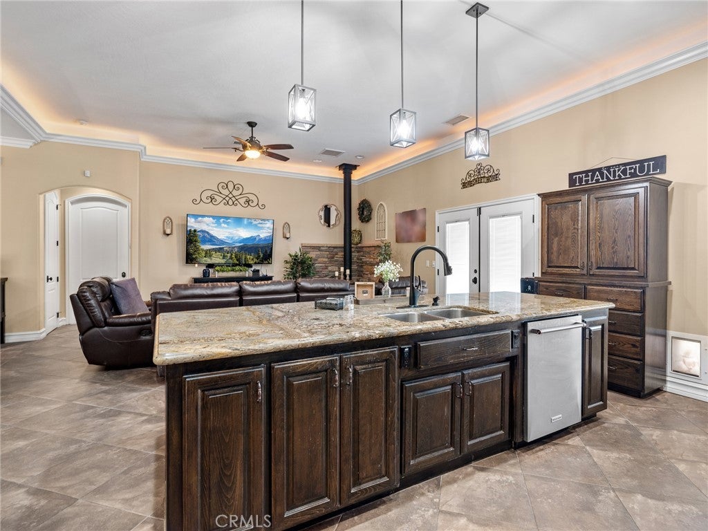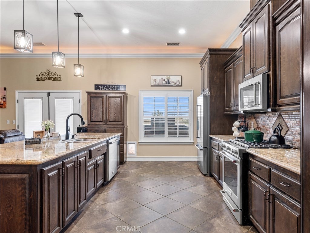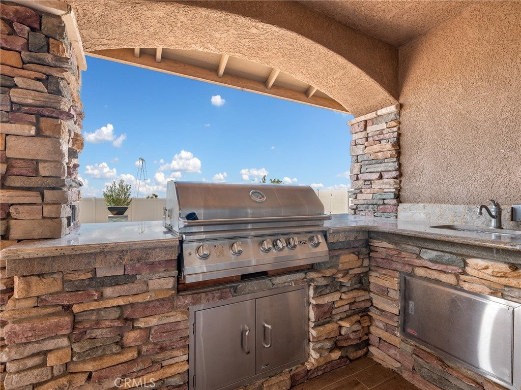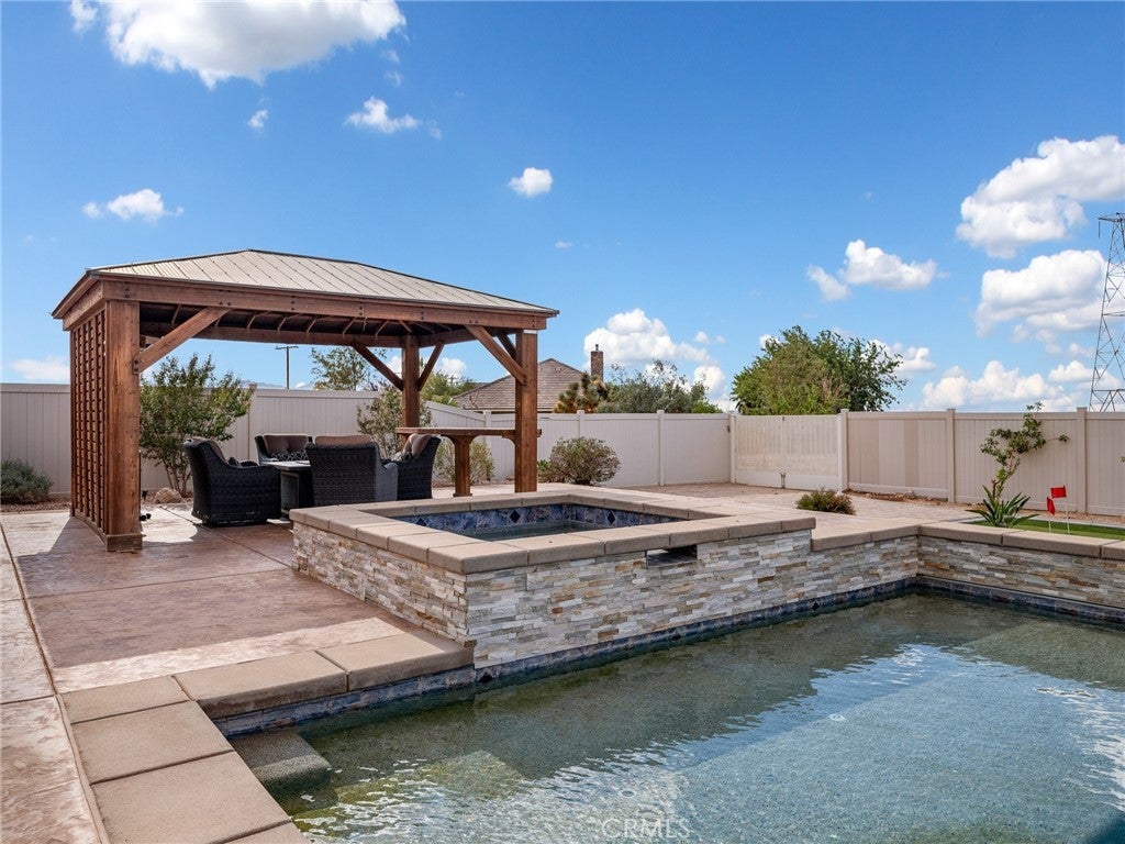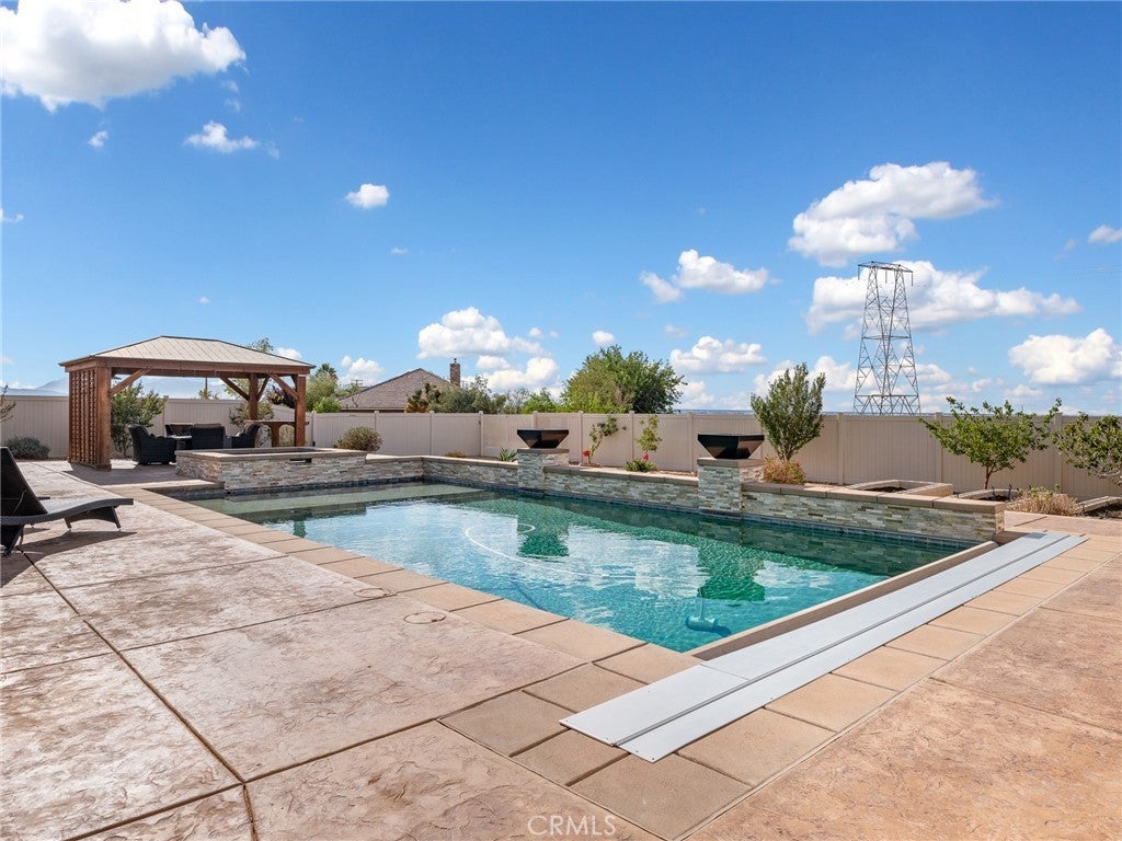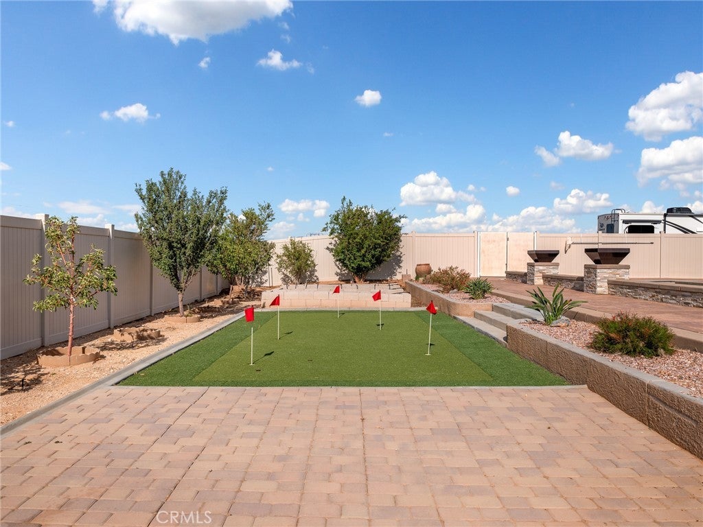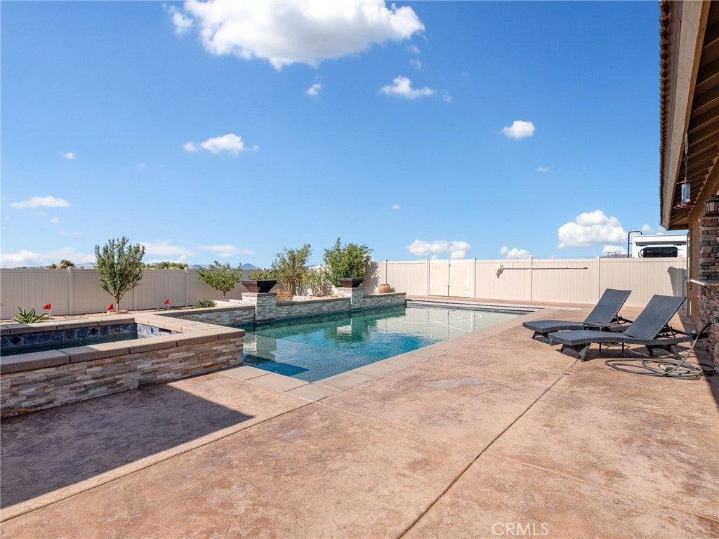 Luxury, Privacy and Stunning Views! Welcome home to this stunning 3-Bedroom, 3-Bath, 2253 SF Desert retreat. A true jewel nestled on a sprawling 2.5-acre lot with breathtaking views along with every amenity you could dream of. This thoughtfully designed home offers DUAL PRIMARY SUITES, each with spa-inspired bathrooms featuring walk-in showers, jetted tubs, and spacious walk-in closets-Ideal for privacy, comfort, or multi-generational living. At the heart of the home is a chef's kitchen designed to impress, complete with high end appliances, expansive countertops, and plenty of storage-a true culinary haven for entertaining or everyday living. The elegance continues throughout with tile flooring, plantation shutters, crown molding with ambient lighting, ceiling fans in every room, and French doors that blend indoor comfort with outdoor living. Step outside to your private resort-style backyard, where luxury and tranquility meet. Custom Pool and Spa with cascading waterfalls, fire bowls, and an automatic pool cover. Outdoor kitchen/BBQ for year-round entertaining, sunset dinners, or enjoying a quiet morning coffee. Pergola-covered patio, putting green for the golf enthusiast, vinyl privacy fencing along with desert friendly landscaping. Gated front courtyard with water feature and beautiful decorative stack stone enhances the entry. Additional features include oversized 2-car garage, RV pad, Security cameras/alarm system. Per County of San Bernardino, up to two (2) additional ADU units can be built per 2.5 acres, ideal for guest quarters or income potential. Whether you are seeking a peaceful desert sanctuary, a forever home with room to grow, or an entertainer's paradise, this exceptional property checks all the boxes. Come experience the lifestyle you've been dreaming of.