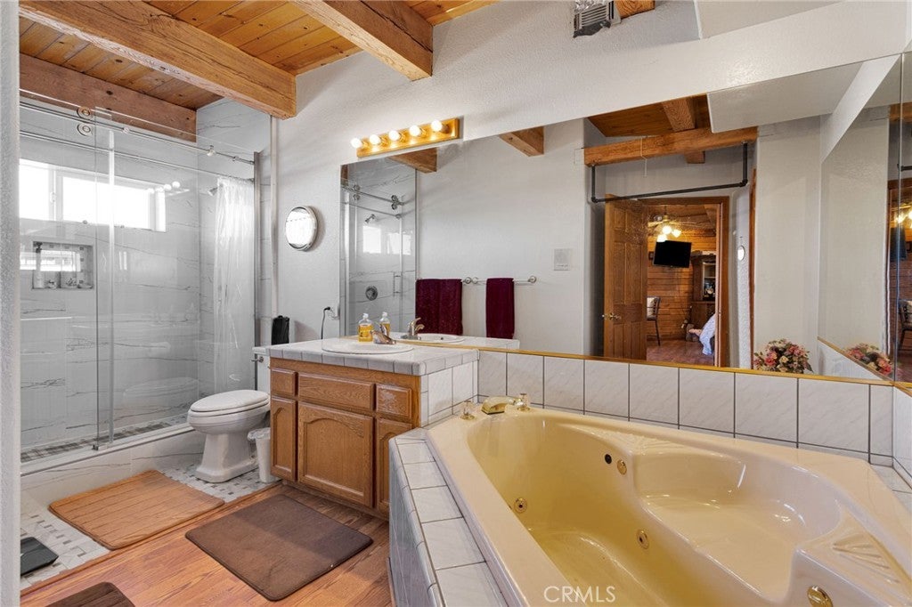 MAJOR PRICE IMPROVEMENT. Prestigious OAK HILLS. Location Location Location. 4000 + SF LIVING SPACE. PLUS 5000 SF + OUTBUILDING. With 2-STUDIO APARTMENTS or 2- Executive OFFICES. 5 roll up doors offers space to work and plenty of room for RV storage, boats, and toys. Bring your SMALL BUSINESS. Perfect Set up for HORSE RANCH or CARE FACILITY. Great for MULTI-GEN or MULTI-FAMILY living. Property boast 2- Master suites and 3- Additional bedrooms with bath and private access. Spacious Great Room with Rustic all wood ceilings and walls . Its like being at a Resort. Custom Kitchen . Expansive game room. Paved road . Fenced and cross fenced. Renewable Energy with Wind and Solar. All paid off. Makes for low utility cost. Back up 12 Volt electric system in place in case of emergency. Additional 40 ft. Underground storage . Can you say Wine Cellar ! Plenty of space for additional items that require cooler temps . Rain Soft Water Softener . Spectacular SUNRISES and SUNSETS . Close to new Amazon Distribution Center . There is SO MUCH MORE . Property Sold AS-IS due to the many custom features . This very unique and one of a kind property is a must see.