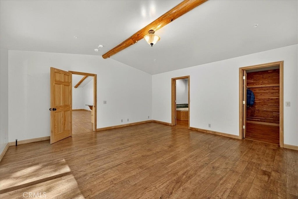 Beamed Ceilings, Ceiling Fan(s), Cathedral Ceiling(s), Granite Counters, Living Room Deck Attached, Open Floorplan, Pantry, Storage, Bedroom on Main Level, Main Level Primary, Walk-In Pantry, Walk-In Closet(s), Wired for Data