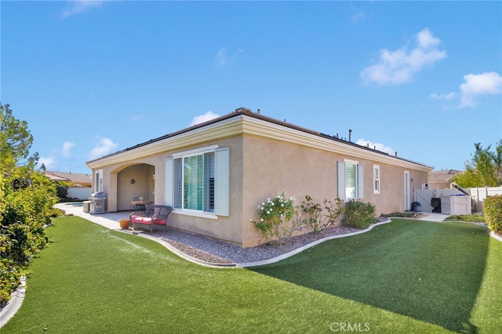 Welcome to 10215 Wascana Ln, a stunning 2,236 sq. ft. Sequoia model — the second-largest floor plan in the highly desirable 55+ active adult community of Sun City. This home combines thoughtful upgrades with rare outdoor amenities, creating a true retreat for year-round enjoyment. Fully owned solar keeps energy costs low, while a private pool and spa — complete with solar heating — provide the perfect setting to relax or entertain against a backdrop of mountain views. Inside, soaring 10-foot ceilings, plantation shutters throughout, and an open layout enhance the sense of space. The kitchen features Corian countertops, a center island, abundant cabinetry, and a charming breakfast nook, while the separate dining room offers the perfect setting for gatherings. The living room is anchored by an ornate fireplace and large windows framing scenic views. The tranquil primary suite includes a soaking tub, walk-in shower, dual sinks, and a spacious closet. A well-situated guest bedroom offers privacy on the opposite wing, and the versatile den can serve as an office, hobby space, or cozy retreat. Step outside to a backyard designed for easy living: a covered patio with a built-in gas BBQ, vibrant rose bushes, and strawberry beds on automatic irrigation. On the other side, your private pool and spa invite you to swim, soak, and unwind in complete privacy while enjoying the mountain backdrop. This is more than just a home — it’s a lifestyle. Come see why the Sequoia model is one of Sun City’s most sought-after floor plans, now with the rare bonus of your very own pool and spa.
