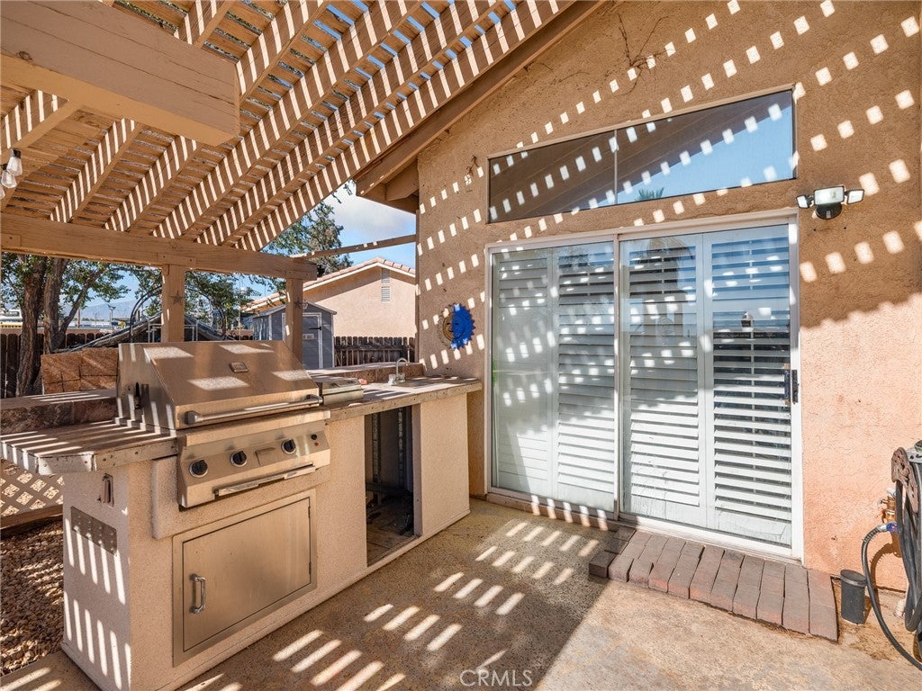POOL HOME WITH SOLAR! This beautifully maintained 5-bedroom, 3-bathroom Victorville home features a solar-heated in-ground pool and a full solar system for energy efficiency. The backyard is perfect for entertaining and family gatherings, complete with a gazebo, built-in BBQ, extra storage shed, chicken run with chicken hut, and a drywalled, insulated space currently used as a gym—ideal for fitness enthusiasts. Inside offers 2,504 sq ft of living space, a spacious two-story layout, a comfortable primary suite, central heating and air, and a 3-car attached garage. This home truly blends comfort, efficiency, and resort-style outdoor living. Also--Water heater replaced in 2020 Pool pump & filter replaced in 2020-A/C unit replaced in 2020-Water leak detection system to bring house up to code installed in 2024-Steel braided lines to all water fixtures -Kitchen cabinets have pull out shelves. Schedule your tour today!