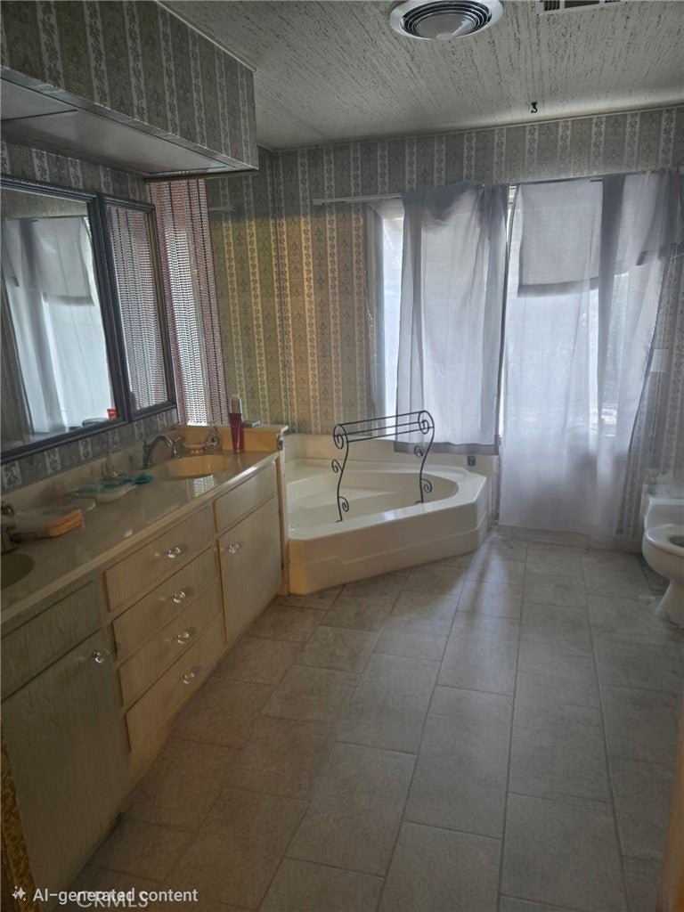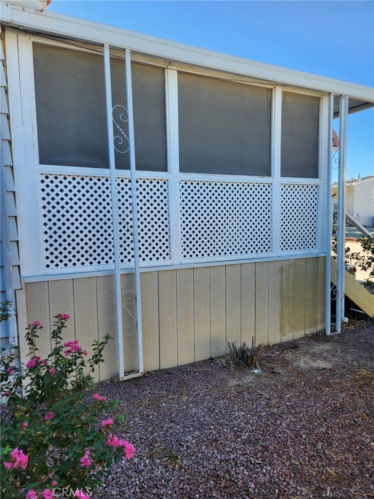 Welcome Home to Santiago Desert View Estates! This spacious triple-wide manufactured home offers over 2,000 square feet of comfortable living space with 2 bedrooms and 2 bathrooms. Step inside to find a bright, open floor plan featuring a large living room with a built-in bar—perfect for entertaining guests or relaxing after a long day. The updated kitchen has been beautifully redone by the seller and includes a built-in breakfast bar that opens to the dining area, ideal for casual meals and gatherings. A generous den floods with natural light, creating a warm and inviting space for reading, hobbies, or an additional sitting area. Each bedroom offers spacious closets with built-in storage, giving you plenty of room to stay organized. Enjoy the screened-in front porch, perfect for sipping coffee in the morning or unwinding on cool summer evenings. The home also features an indoor laundry room for added convenience and new flooring throughout for a fresh, modern touch. Located in the desirable Santiago Desert View Estates, this home combines comfort, charm, and space—all in a welcoming community setting.