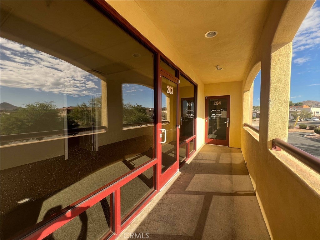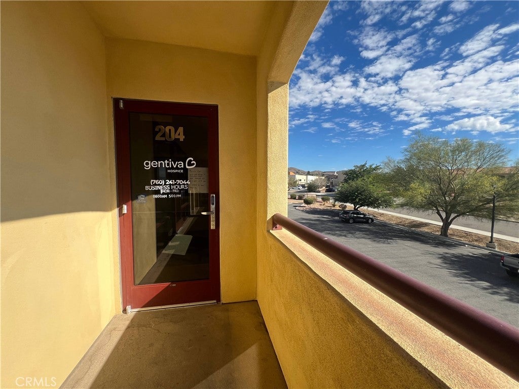 UPSTAIRS SUITE WITH ELEVATOR. Suite 204 has an open space floorplan with entry area, 2 offices, individual restroom and 2 access doors (see floorplan). It is ±1,337 SF in size, not including the outside walkway along the front and the back. As an upstairs unit, the suite has amazing light and unparalleled views of the desert landscape and the Town of Apple Valley. Great for a variety of uses including office, call center, administration and other professions. The location is in a prime Professional/Medical area of Apple Valley with immediate access to Highway 18 and walking distance to St. Mary Providence Hospital. Elevator and stair access. The building itself is newer and well-maintained inside and out with front and side parking. Nearby all conveniences including banking, gas, food, coffee, and other professional uses. Current tenants in the building include a beauty Salon and pharmacy. Space next door is also available, able to be combined to a total of ±2,530 SF. First year rate includes common area maintenance.