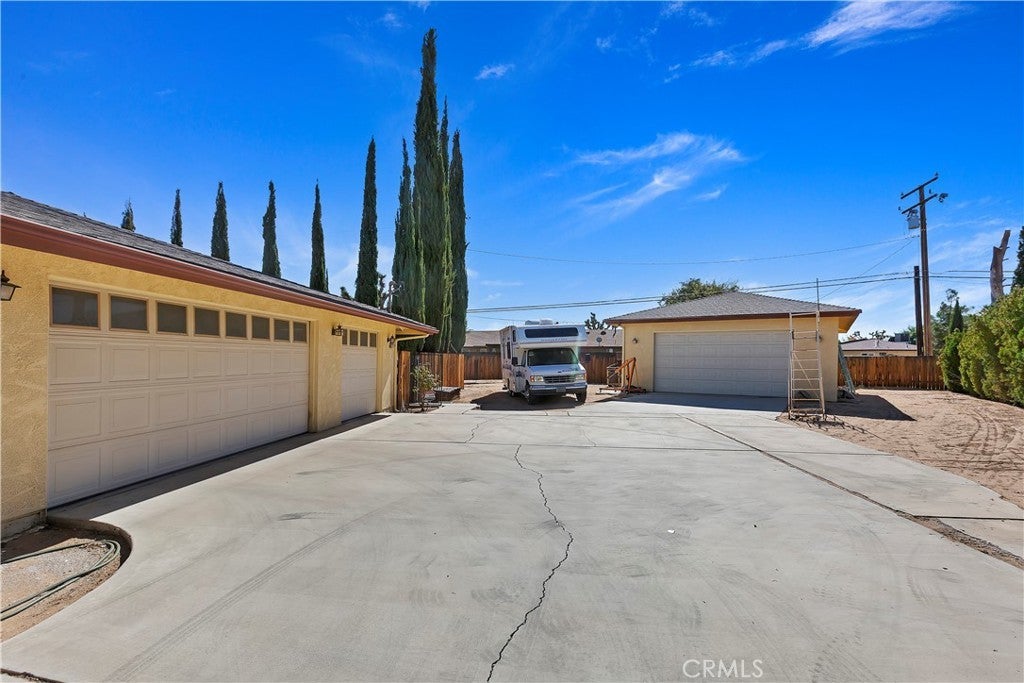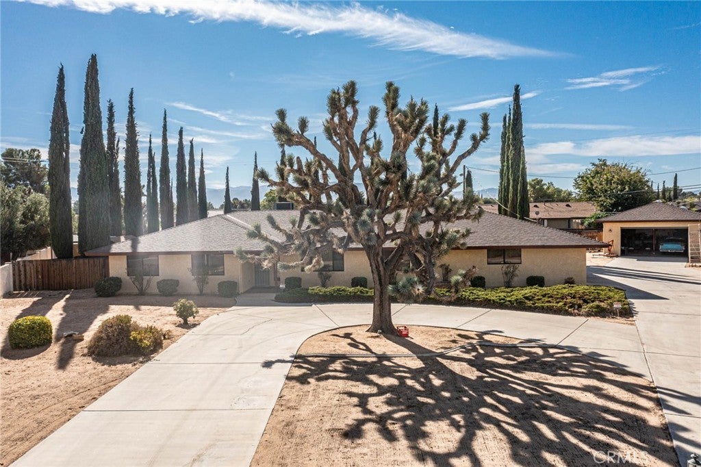 Welcome to 20407 Eyota Rd, Apple Valley — a spacious ranch-style retreat tucked away in a peaceful cul-de-sac! This inviting 2,006 sq. ft. single-story home offers comfort, space, and exceptional functionality—perfect for those seeking room to live, work, and create. A large circular driveway frames the beautifully maintained front yard, highlighted by a signature Joshua Tree. Car enthusiasts and hobbyists will appreciate the oversized 3-car attached garage (30+ ft. deep) and a detached 2-car workshop equipped with a commercial-grade air compressor with built-in lines and an evaporative cooler—ideal for year-round projects.There is 220 available, can help with setting up for your E/V charger or any equipment needing this wattage. Inside, the home features rustic laminate flooring throughout, a new roof, fresh exterior paint, updated ductwork, and a new A/C and heating system for peace of mind. While the kitchen and bathrooms retain their original charm, the kitchen has received a light makeover—opening up the space by removing the overhead cabinet and adding a breakfast bar that connects seamlessly to the family room. The open-concept living and dining areas are warm and inviting, centered around a large brick fireplace and a mounted 75” TV, perfect for entertaining or cozy nights in. All three bedrooms are situated in the east wing, each with ceiling fans and plenty of natural light. The primary suite opens to a private patio, ideal for a future jacuzzi, garden nook, or peaceful meditation area. Enjoy the tranquility of this well-established neighborhood while still being close to shopping, dining, and schools. With a solid structure, upgraded systems, and endless potential for personalization, this Apple Valley gem is ready for its next chapter. Contact a realtor and make this home your home sweet home.