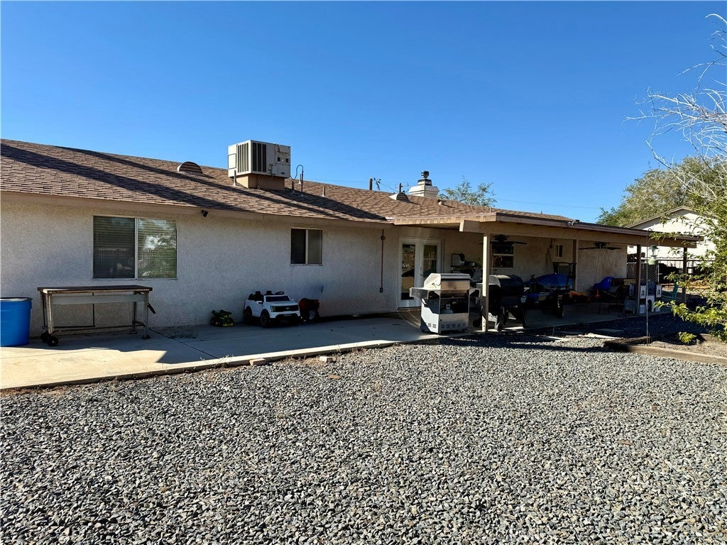 Beautiful Hesperia Home recent upgrades 3 bedroom 2 full baths, kitchen with a lot of newer cabinets, coriander counter tops, newer stainless steel appliances microwave, stove, dishwasher, inside laundry room newer washer and dryer included vinyl floors newer inside paint, nice living room with a fireplace, nice newer French door takes you to nice and big cover patio plus extra concrete extends to side of the house central air and heat plus a widow evaporative cooler, rock landscaped, nice shed for storage fenced back yard central air and heat