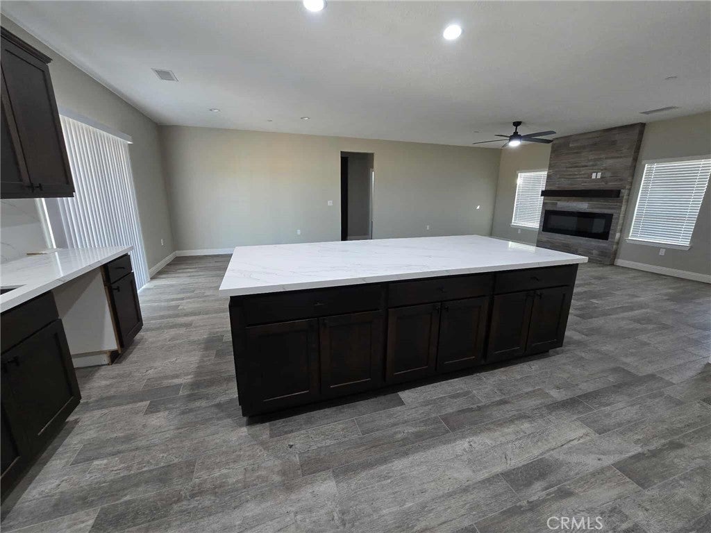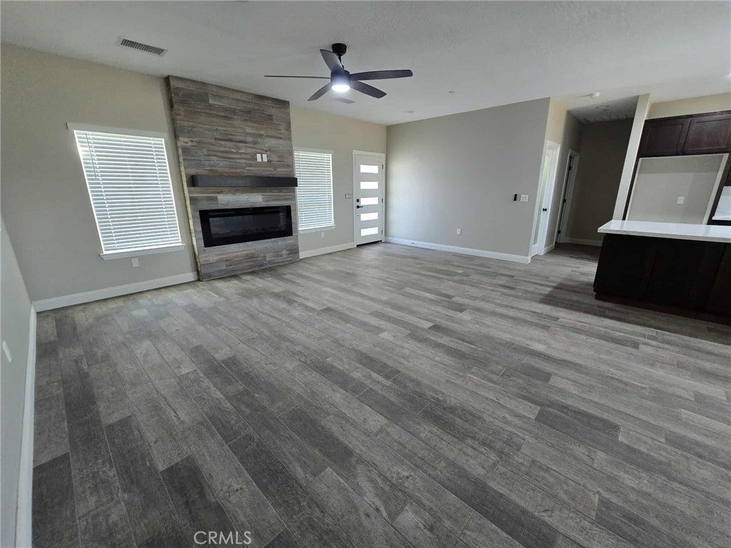 Welcome to a stylish, open-concept home built for modern living! It features 3 spacious bedrooms and 2 bathrooms and showcases a stunning custom reclaimed wood accent wall and electric fireplace in the main living space and window blinds throughout for privacy. The gourmet kitchen is a showstopper, equipped with top-tier stainless steel appliances, a walk-in pantry, and an oversized island for entertaining. Your private master suite offers a generous bedroom, a luxury bath with double sinks and a large walk-in shower, plus an enormous walk-in closet. Practical amenities include an indoor laundry room with ample storage and an oversized two-car garage. The exterior boasts an Alumawood patio cover for your summer enjoyment. PAID OFF SOLAR! This spacious lot is a blank canvas awaiting your personal landscape design and is also located close to schools, parks and shopping centers!
