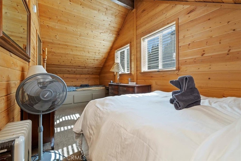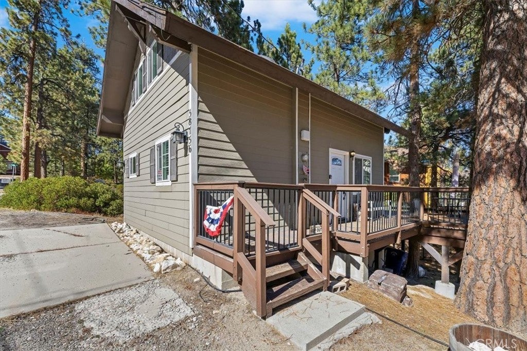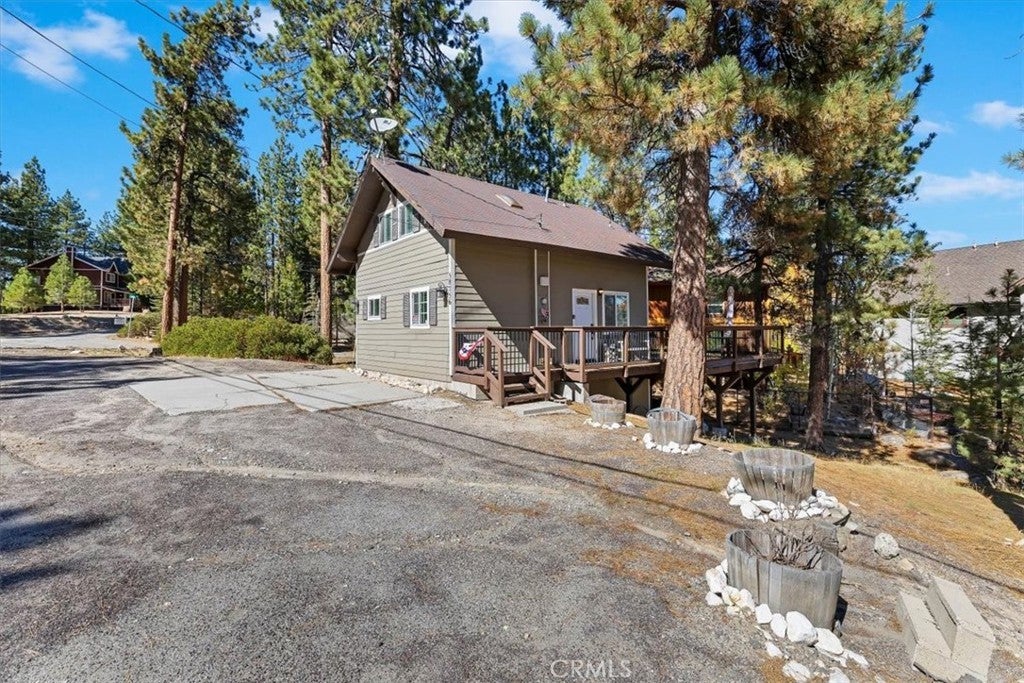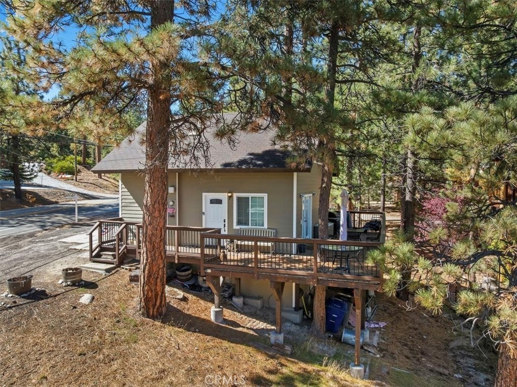 WELCOME TO YOUR DREAM HOME, FULLY FURNISHED AND READY TO MOVE IN! Just steps to Boulder Bay in beautiful Big Bear Lake. Offering 1134 sq ft of living space with central heating on a LARGE 14,000 sq ft lot. The owner spared no expense with beautiful upgrades and amenities. Newer roof, windows and French doors leading to wrap around porch with seating and BBQ, perfect for entertaining. This inviting 2 bedroom and 2 full bathroom mountain retreat is less than 5 minutes to Big Bear Lake and The Village. Walk into the open concept living area with a cozy fireplace and many games to enjoy. One full bathroom downstairs, two comfortable carpeted bedrooms upstairs with a full bath and dryer ready to heat your towels on those cold nights. Flat parking pad with ample parking right off the street for easy access to the front door. Ample storage under the home. Enjoy sledding down your own snow covered hill right from your porch. This home delivers on location, charm and comfort for all seasons. PRICED TO SELL!!! THIS ONE WON'T LAST LONG!!!