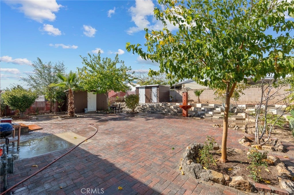 Welcome to this beautifully maintained 2-bedroom, 2-bath manufactured home nestled in the center of Victorville — close to shopping, dining, and all city conveniences! This home sits on its own land, offering both comfort and independence without park fees. Step inside and be greeted by bright natural lighting, beautiful tile and laminate floors, and tastefully finished walls that create a warm and inviting atmosphere. The spacious living and dining areas flow perfectly for entertaining or relaxing, while the well-designed kitchen offers plenty of cabinet space and functionality. Enjoy the convenience of a dedicated laundry room and two full bathrooms that are clean, and well cared for. Outside, you’ll find beautiful landscaping that enhances the home’s curb appeal, a carport for covered parking, and two storage sheds—perfect for tools, hobbies, or extra storage. The backyard is private, well-kept, and ideal for outdoor gatherings or simply relaxing in your own peaceful retreat. Surrounded by lush fruit trees in the back and 2 large pepper trees in the front for shade. Connected to public sewer and located on a quiet street, this home offers a wonderful blend of city living and suburban comfort. Don’t miss the opportunity to own this lovely, move-in-ready home in one of Victorville’s most convenient locations!