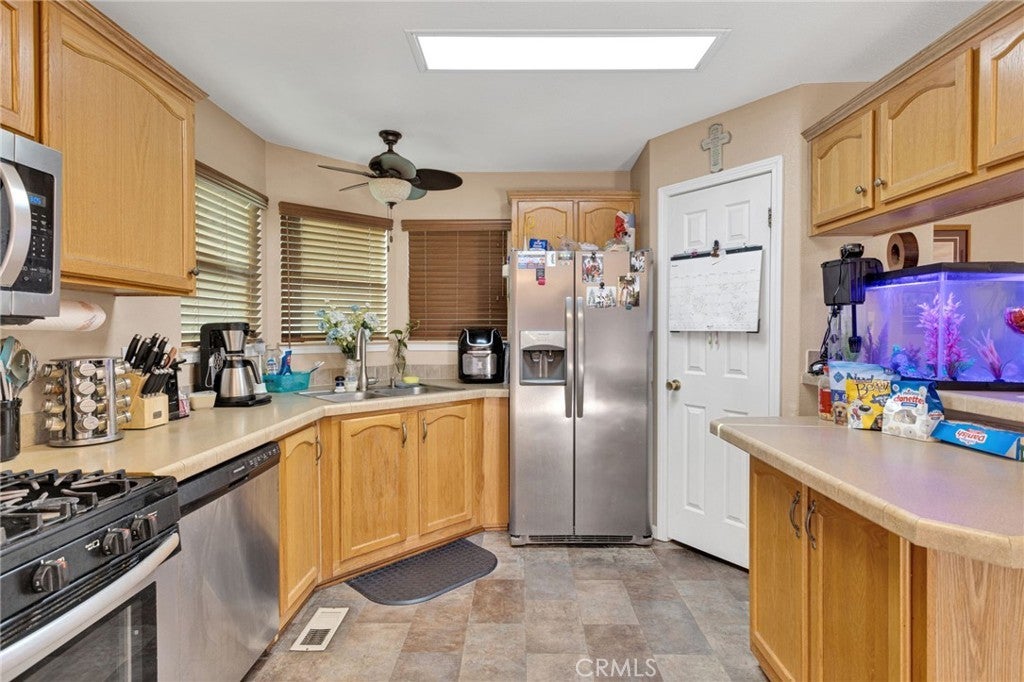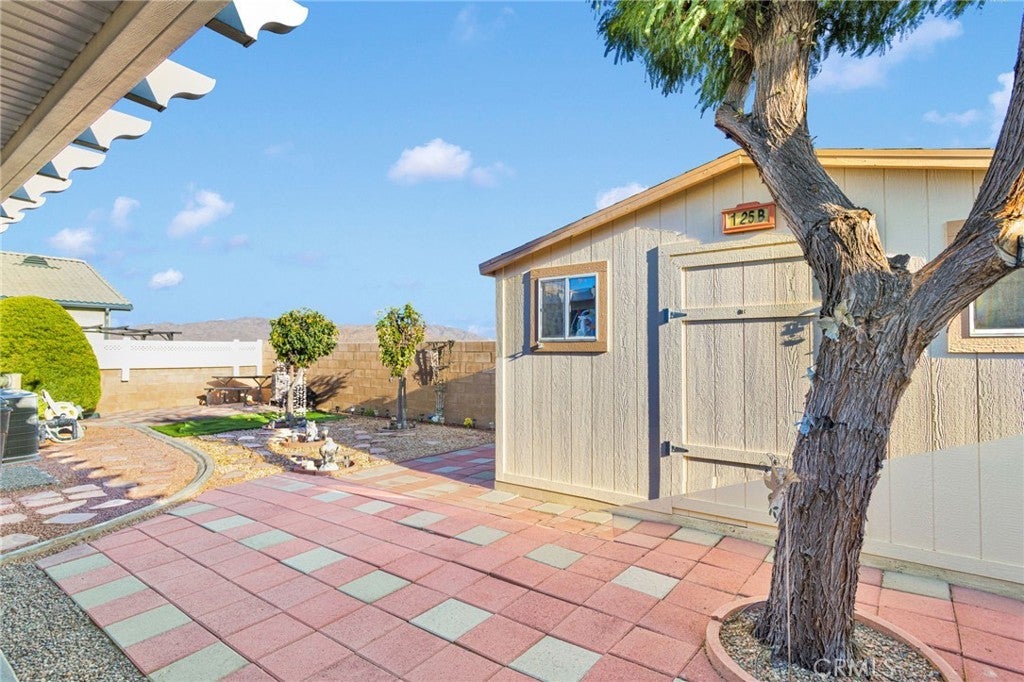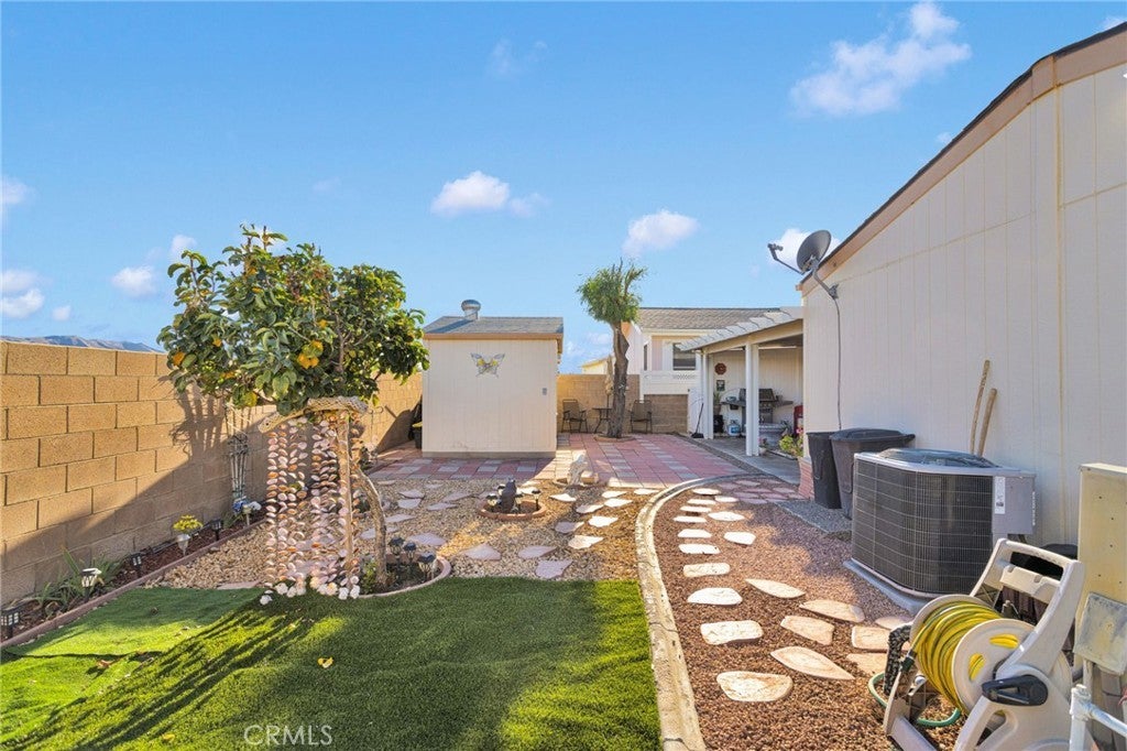 Welcome to your next home in beautiful Apple Valley’s desirable 55+ community, Vista Del Rosa! Built in 2004, this spacious 3-bedroom, 2-bath manufactured home offers comfort, convenience, and thoughtful upgrades throughout. Enjoy a modern kitchen with stainless steel appliances—including a refrigerator, stove, dishwasher, and microwave—plus a washer, dryer, and second refrigerator all included in the sale. Relax in your Jacuzzi spa or unwind on the aluminum back porch and front patio surrounded by irrigated, manicured landscaping, a dog run, and a vinyl fence with block wall for added privacy. The home also features a rain gutter system, swamp cooler, flood light for security, and locked gates for peace of mind. A detached storage shed with electricity and a wind turbine vent provides extra space for tools or hobbies. This property blends low-maintenance living with all the comforts you deserve—perfect for those looking to enjoy the best of senior community living in Apple Valley! Vista Del Rosa is a gated community with wonderful amenities, including a clubhouse, pool, spa, billiards, and BBQ area. Ideally located near shopping, dining, medical facilities, and the Apple Valley Senior Center with plenty of activities, this home offers the perfect blend of comfort, convenience, and community.