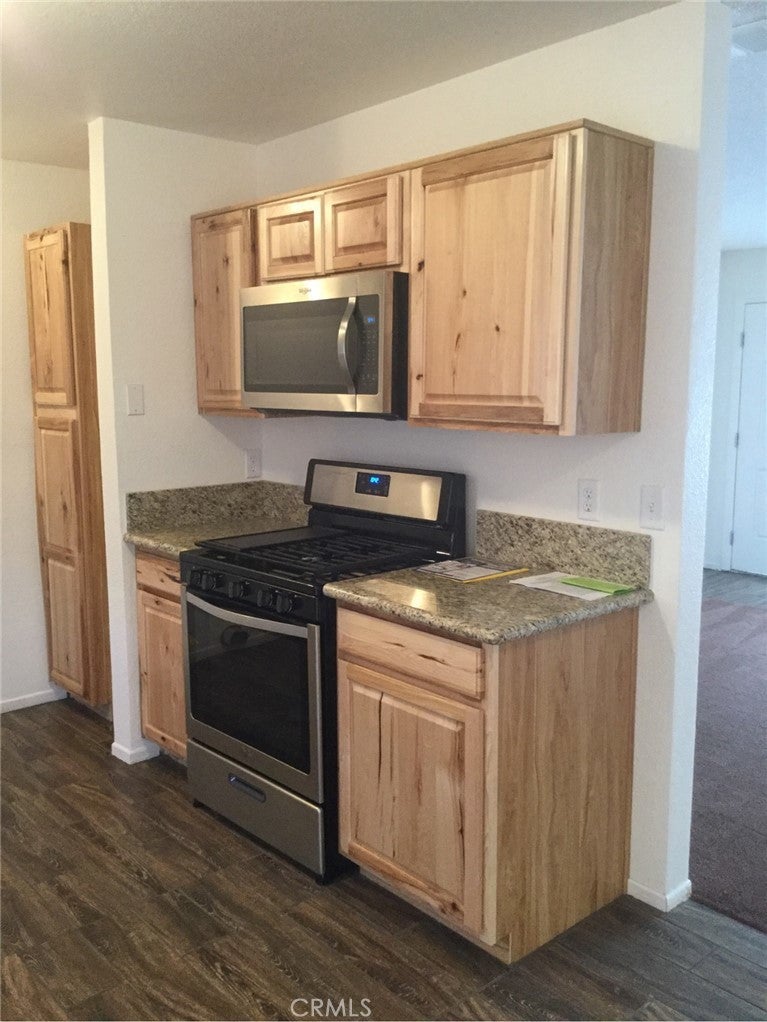 Charming single-story home with an inviting front exterior and an attached single-car garage, and a private, fully fenced backyard. Inside, you’ll find a blend of carpet and tile flooring, creating a comfortable and practical space. The modern kitchen features stunning granite countertops, stainless steel appliances—including a stove, dishwasher, and microwave—and a convenient laundry hookup tucked inside the kitchen area. With HVAC for efficient heating and cooling, this home combines style, comfort, and functionality. renter’s insurance required.