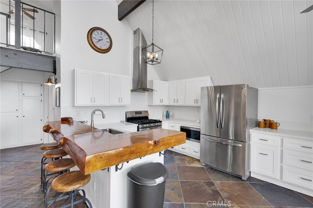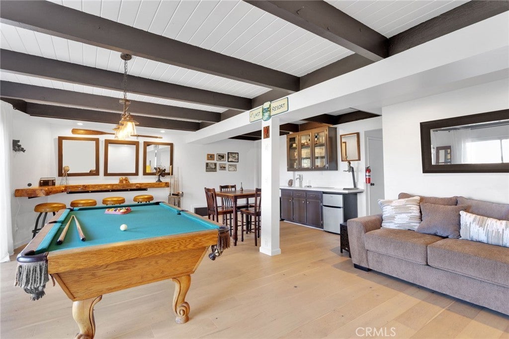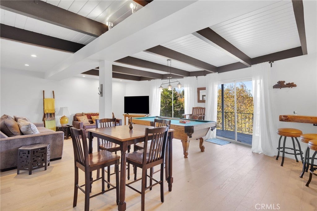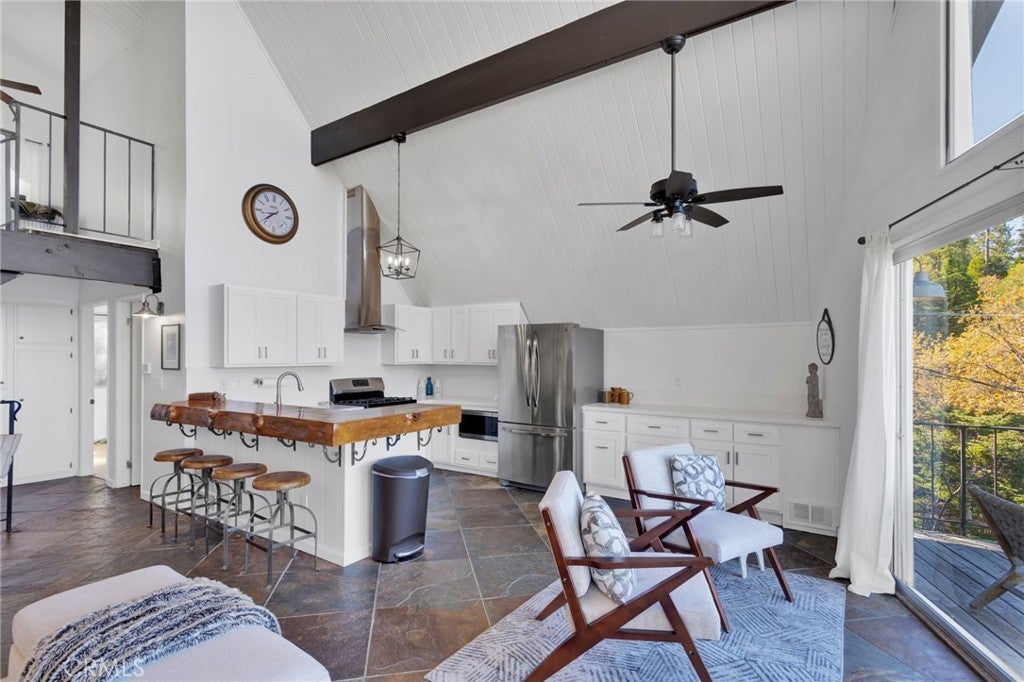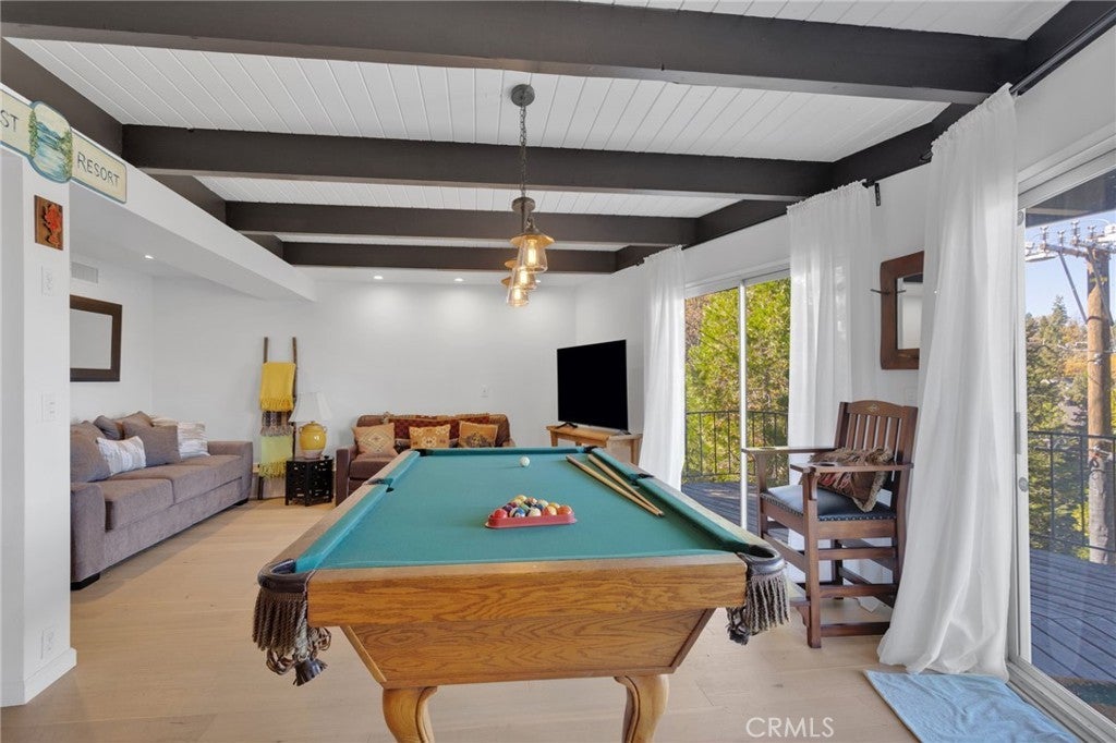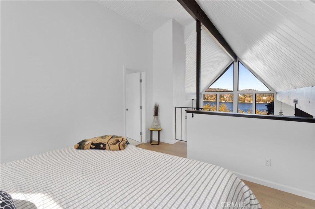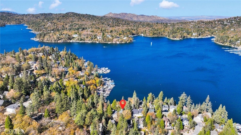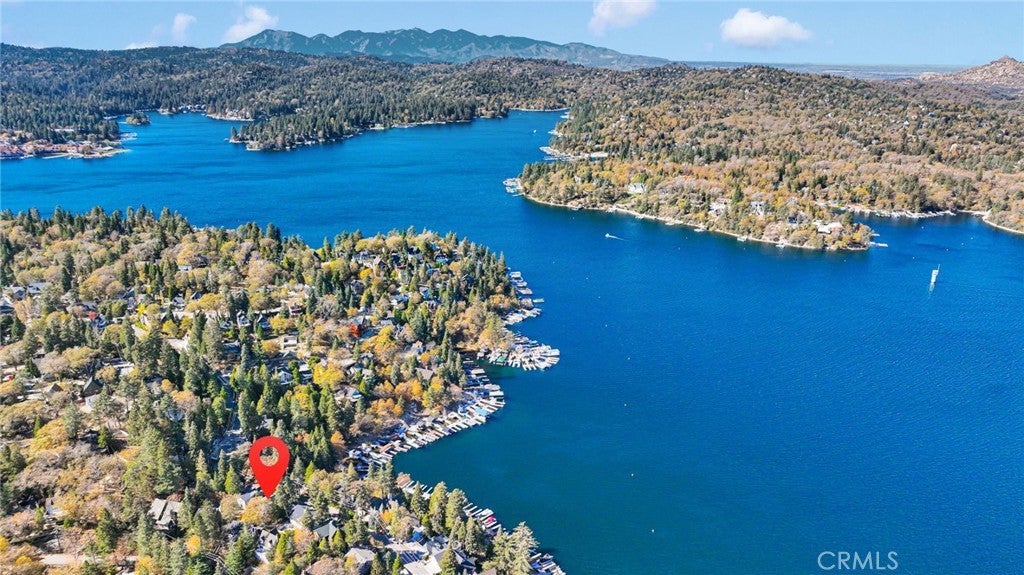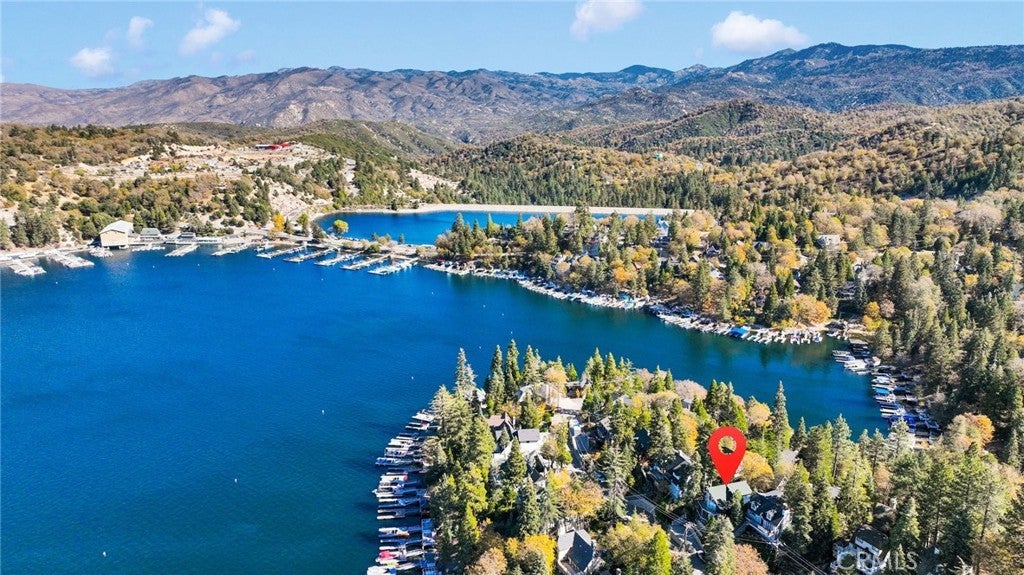 Welcome to 28919 Palisades Dr, Lake Arrowhead, CA 92352 — a fully furnished, recently updated first-tier stunner with amazing lake views! This beautifully remodeled mountain retreat offers approximately 2,016 sq ft of light-filled living space with 3 bedrooms, 2.5 baths, and multiple entertaining areas. Located just across the street from the lake with nearby lake access, you’ll enjoy full lake rights — stroll along the scenic lake trails, launch your boat or kayak, or take a refreshing swim in the crystal-clear waters. From the moment you step inside, you’ll be captivated by the open-concept design, dramatic wall of windows, and soaring wood-beamed ceilings that frame the breathtaking lake views. The spacious living room centers around a stunning stone fireplace, creating a perfect setting for cozy mountain evenings while still enjoying the view of the water. The beautifully updated kitchen is a chef’s dream, featuring new stainless steel appliances, a modern oven hood, custom cabinetry, and a breakfast bar that opens seamlessly to the dining area and living room. Whether you’re entertaining or relaxing, this level is designed for comfort and connection. Step outside onto one of two expansive decks to take in the spectacular views — watch boats drift by, soak in the fresh mountain air, and revel in the glowing sunsets over the water. Also on the main level are two nicely sized bedrooms with large closets and an updated full bath featuring modern finishes. The private master suite occupies its own level and is a true sanctuary. It features soaring ceilings, serene lake views, and a beautifully remodeled ensuite bathroom boasting dual sinks and a frameless glass, zero-threshold shower with a rain shower head — a spa-like retreat in the mountains. On the lower level, you’ll find a spacious family/game room complete with a wet bar, half bath, and laundry area — the perfect space for entertaining guests or relaxing with family. Additional highlights include central A/C, modern updates throughout, and turnkey furnishings, making this home move-in ready and ideal for use as a primary residence, second home, or short-term rental investment. Located in the highly sought-after Cedar Glen enclave, this property is just a short walk to two lake access points and only minutes from the marina, gas dock, and launch ramp, the hospital, and fire station offering the ultimate in Lake Arrowhead lifestyle living.