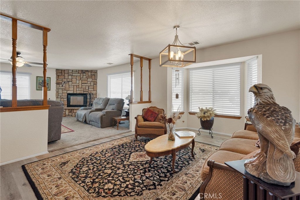 Welcome to The Estate, a well-maintained single-story home in Apple Valley offering space, functionality, and versatility on a large 1.2-acre lot. Dual electric gates open to a circular driveway with ample room for multiple vehicles, RV parking, boats, and off-road toys. The interior offers 2,776 square feet with four bedrooms, three bathrooms, and two separate living areas that create a flexible layout for everyday living and entertaining. The updated kitchen features white cabinetry, quartz countertops, and a large breakfast bar, along with a formal dining area and generous storage throughout. The bedrooms are notably spacious, including a well-sized primary suite, and the home’s open flow makes the space feel comfortable and easy to live in. The west wing includes an additional family room with a fireplace, along with a bedroom and bathroom that work well for guests, extended family, or flexible living arrangements. Outside, the property provides room to spread out with a covered patio, play area, storage shed, and extensive parking options. In addition to the attached two-car garage, the detached two-car garage with power and partial drywall offers strong potential for an ADU conversion, workshop, or additional storage. A newer septic system adds long-term practicality. Located near schools, shopping, and Apple Valley Country Club, this property combines usable land, RV access, garage space, and a functional single-level floor plan in a setting that’s increasingly hard to find in today’s market.