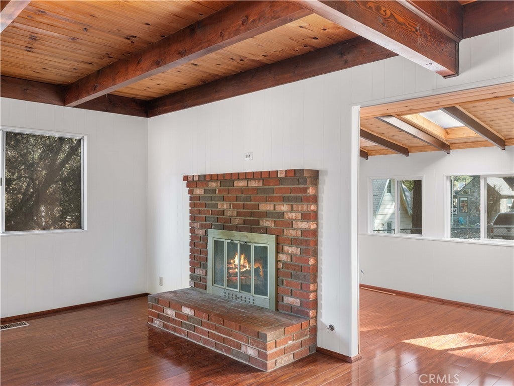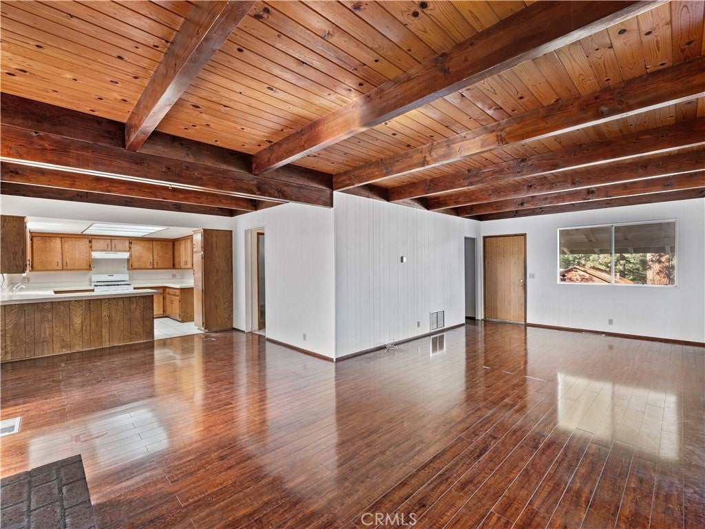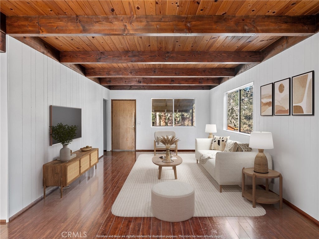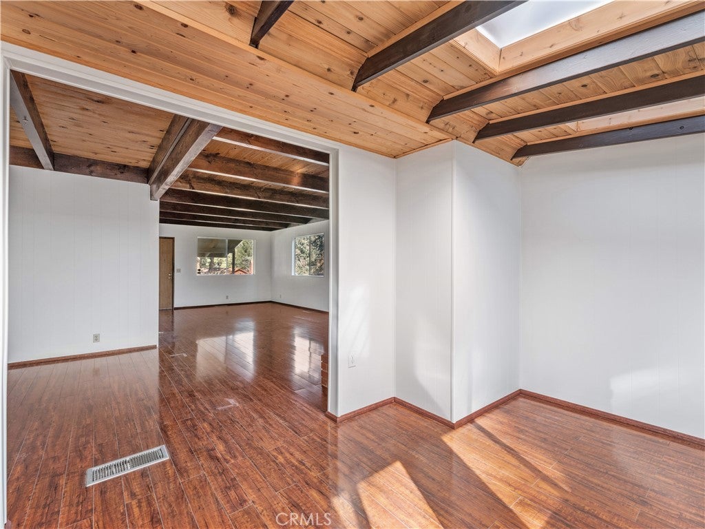 Check out this spacious 3 bedroom 2 bath single family home in the mountain community of Wrightwood offering 1,836 +/- square feet of living space. This 2-story home was just refreshed with new white interior paint downstairs (photos updated) and is incredibly inviting upon arriving with its raised and oversized front covered deck/porch to enjoy the smell and sounds of the mountains. The lowest ground level has a workshop space that can easily be converted back to the single car garage from when the home was built. You enter the home into a large living room that wraps around to the dining room, rear sun room and full kitchen. Additionally there's one bedroom and full bathroom downstairs as well as the laundry room with storage. Upstairs are two good sized bedrooms that benefit from extra large closet spaces. This home can retain its charm and be updated by updating interior paint and flooring. The backyard offers a fenced backyard with several pine trees and a serene, quiet environment to call home. The home is located not too far from downtown Wrightwood with great places to shop and eat as well as the ski resort. Wrightwood is a perfectly placed small community that offers convenient access to highways and freeways for commuting.