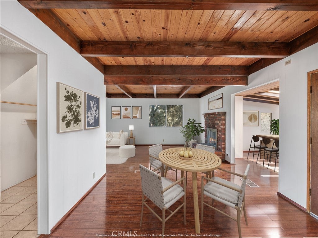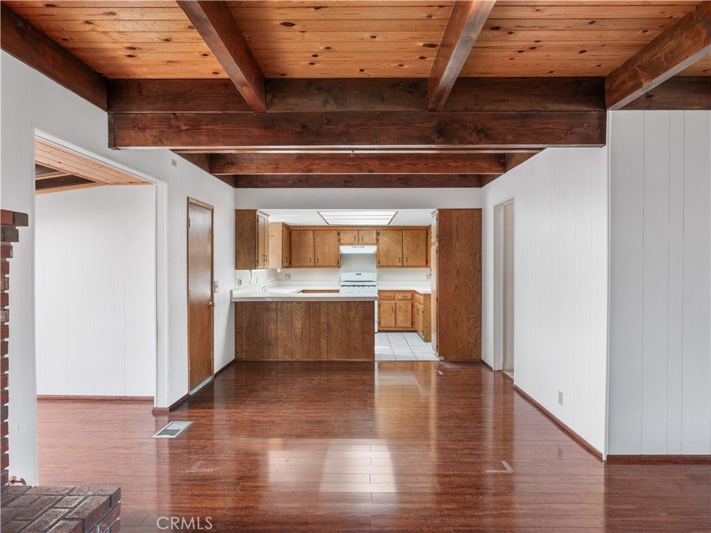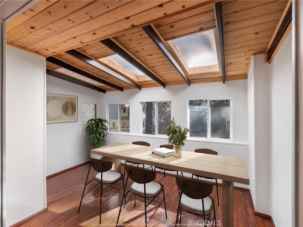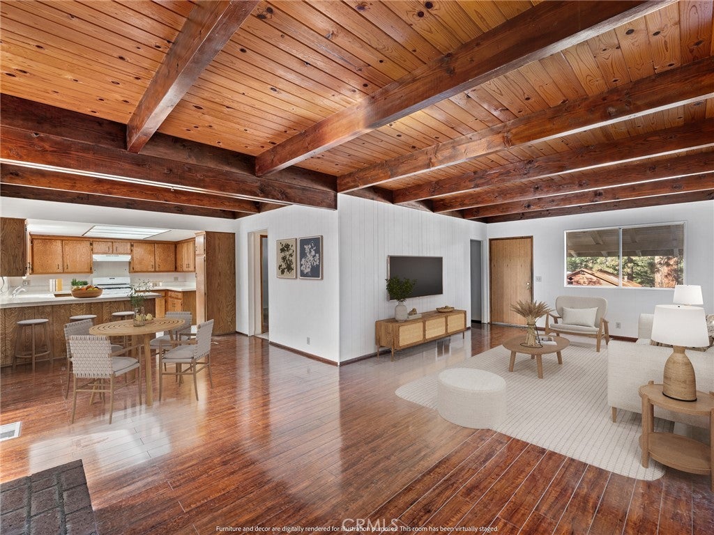 Check out this spacious 3 bedroom 2 bath single family home in the mountain community of Wrightwood offering 1,836 +/- square feet of living space. This 2-story home was just refreshed with new white interior paint downstairs (photos updated) and is incredibly inviting upon arriving with its raised and oversized front covered deck/porch to enjoy the smell and sounds of the mountains. The lowest ground level has a workshop space that can easily be converted back to the single car garage from when the home was built. You enter the home into a large living room that wraps around to the dining room, rear sun room and full kitchen. Additionally there's one bedroom and full bathroom downstairs as well as the laundry room with storage. Upstairs are two good sized bedrooms that benefit from extra large closet spaces. This home can retain its charm and be updated by updating interior paint and flooring. The backyard offers a fenced backyard with several pine trees and a serene, quiet environment to call home. The home is located not too far from downtown Wrightwood with great places to shop and eat as well as the ski resort. Wrightwood is a perfectly placed small community that offers convenient access to highways and freeways for commuting.