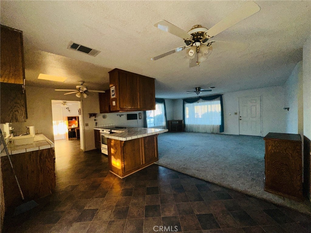 Breakfast Bar, Ceiling Fan(s), Open Floorplan, Storage, Tile Counters