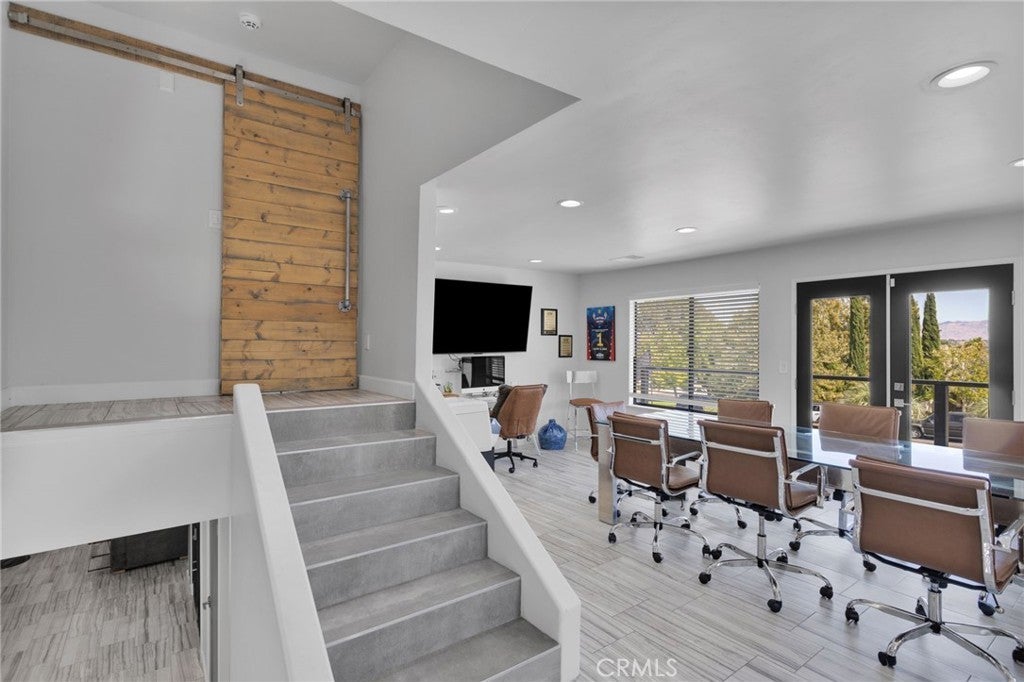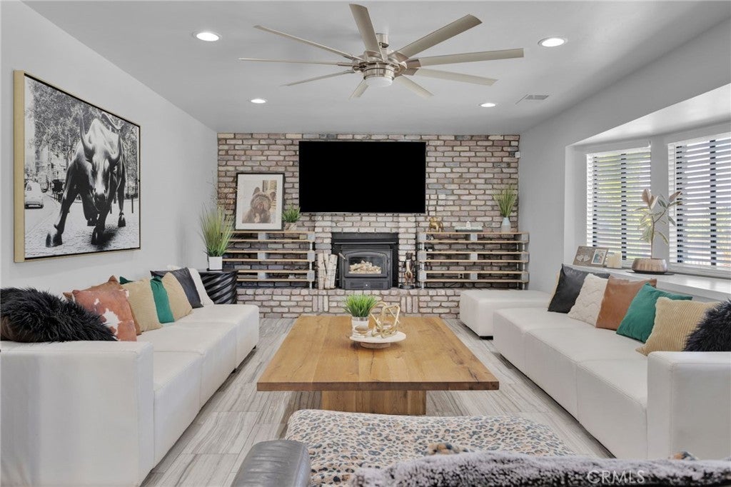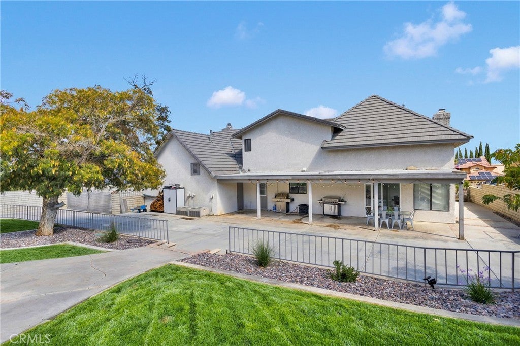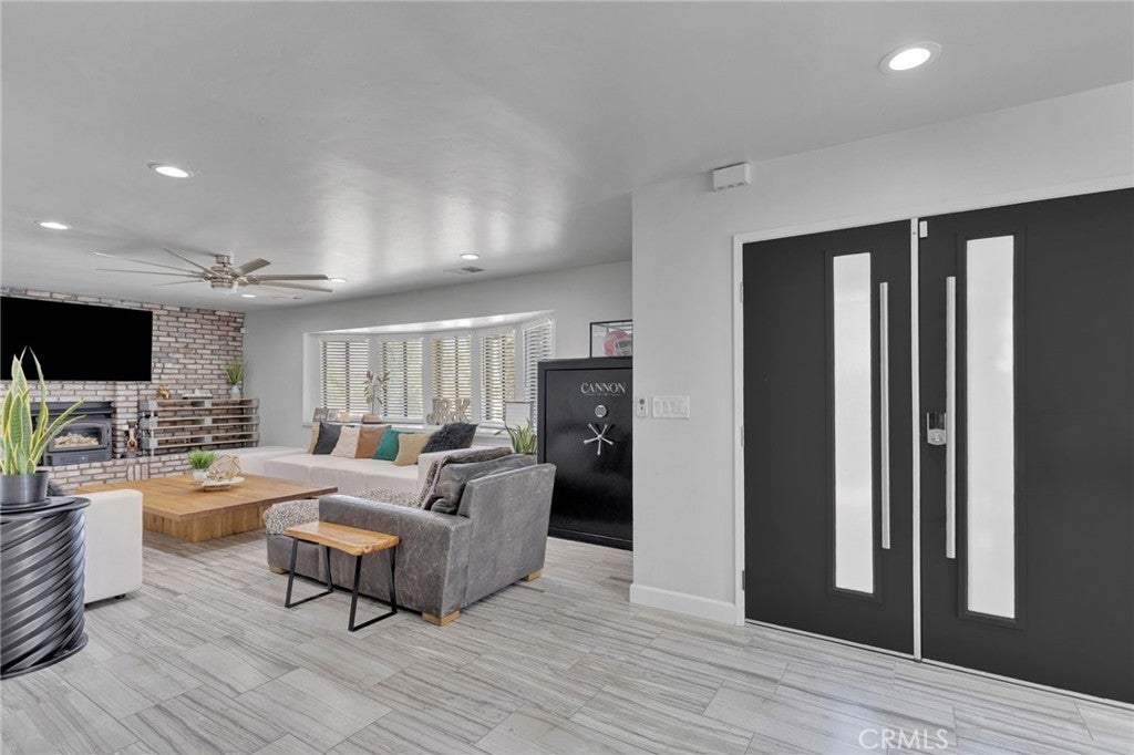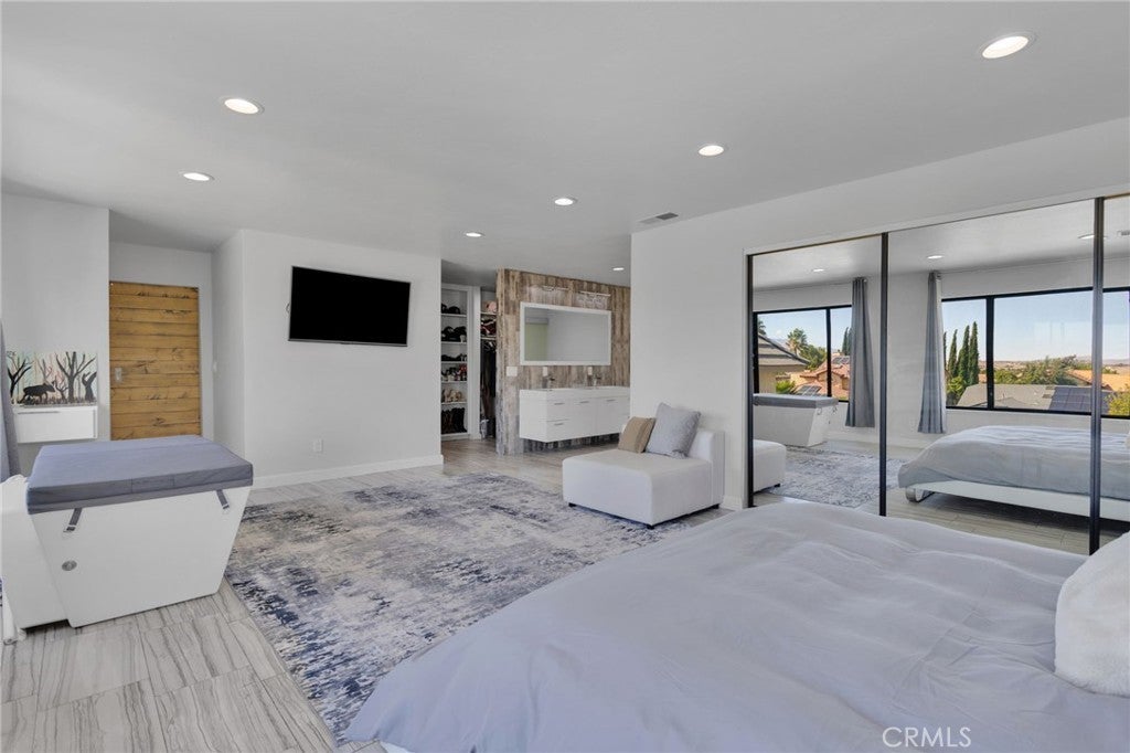 Welcome to an extraordinary architectural residence located within the highly sought-after community of Spring Valley Lake. Set on one of the rare 20,000 sq ft half-acre lots, this FOUR-level Mid-Century Modern–inspired home offers a distinctive design and presence rarely found in the High Desert. The property delivers grand luxury curb appeal, with the home set far back from the street for added privacy and comfort, complimented by mature palm trees and a commanding arrival you’ll be proud to showcase. True gated RV & Boat parking—a rare feature within this HOA—along with ample additional parking provides everyday convenience. This 3-bedroom, 2 full bath, 2 half bath residence has been completely remodeled, blending industrial-modern design with warm natural elements. High ceilings, oversized ceiling fans, the appearance of architectural concrete pillars, and rich all natural wood beams & finishes create an ambiance reminiscent of a high-end urban loft, especially striking in the evening hours. The designer kitchen features commercial-grade built-in appliances, including a 48-inch built-in refrigerator, convection oven, microwave, wine refrigerator, custom range hood, and commercial-style sink and faucet. All natural-wood breakfast and dining nook is seamlessly integrated into the countertops. While a wood-burning stove anchors the family room. The entire third level offers an expansive great room with 2 grand windows and dual access doors to a private balcony with valley views, wet bar, fireplace, half bathroom—ideal for a home office, game room, formal dining area, or optional bedroom. This is one of the home's most versatile and inviting spaces. The fourth level is exclusively dedicated to the primary retreat, featuring 2 grand windows giving panoramic views of the valley, walk-in closet, and spa-inspired bath with oversized walk-in shower, rain and multi-head shower system, and oversized separate jetted soaking tub. The ground level includes two additional bedrooms and a spa-style bathroom with deep soaking tub, rain and dual shower heads, and Bluetooth speakers for an elevated experience. Additional highlights include a tankless water heater, freshly painted deck, and fully landscaped with natural grass and mature pomegranate and pistachio trees—no artificial turf. Offering architectural distinction, modern luxury, and rare amenities, this exceptional residence truly stands apart. Schedule your private showing today.