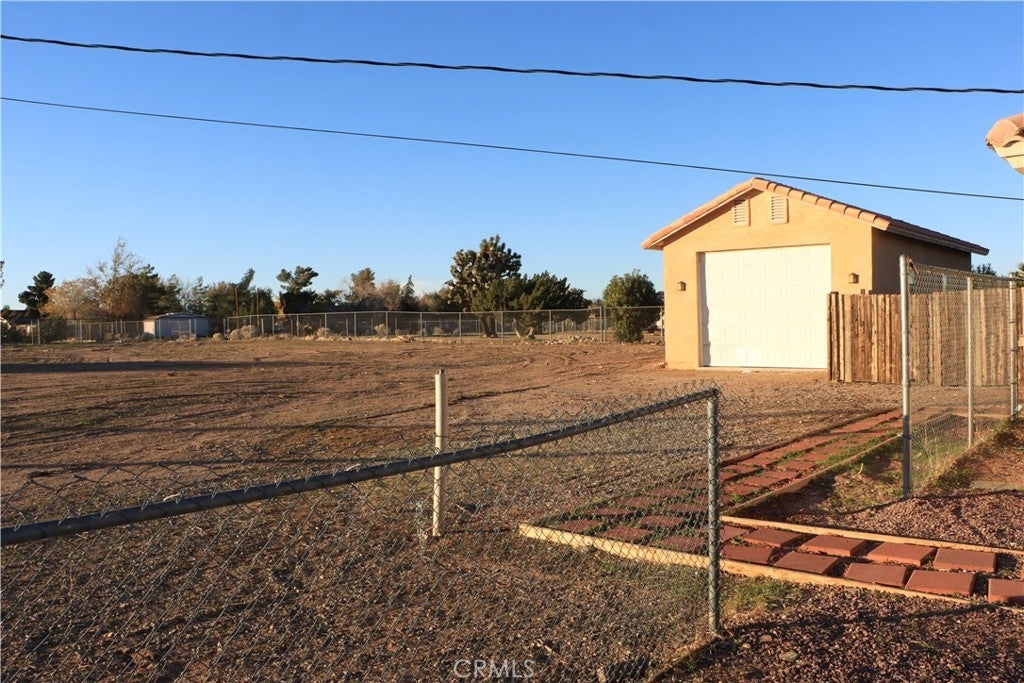 Centrally located between Hesperia's Main Street and the famous Ranchero Road both offering quick I-15 access, this 4-bedroom, 3.25 bathroom- home offers privacy, convenience, and endless possibilities. Inside you’ll find new flooring. A laundry room with storage and outdoor access. A dining room with a breakfast nook and your bay windows. Two master bedrooms on opposite sides of the house and a finished three car garage. A second detached and finished RV garage with a restroom and water heater- it is ready for you to store your RV, create a workshop, or convert it into a separate ADU. Outdoors, enjoy three distinct areas: a vacant lot zoned for animals, a cross-fenced meditation space with colorful trees and grass. A side yard- fruit tree garden. Front landscaping, paved road access, and no HOA restrictions, this property is ready to fit your lifestyle or investment goals.