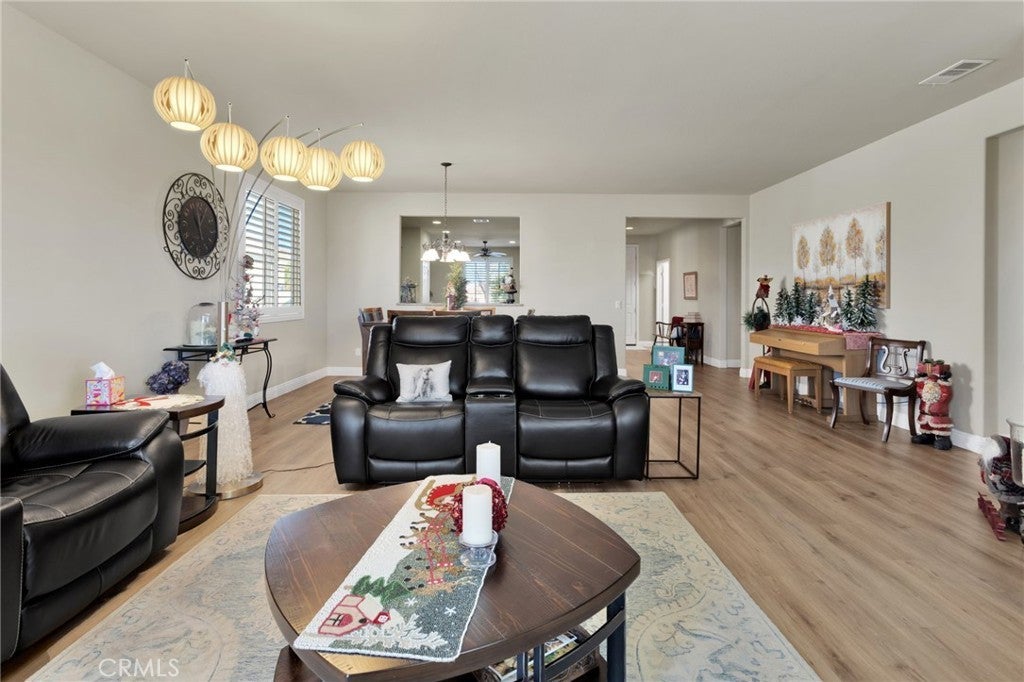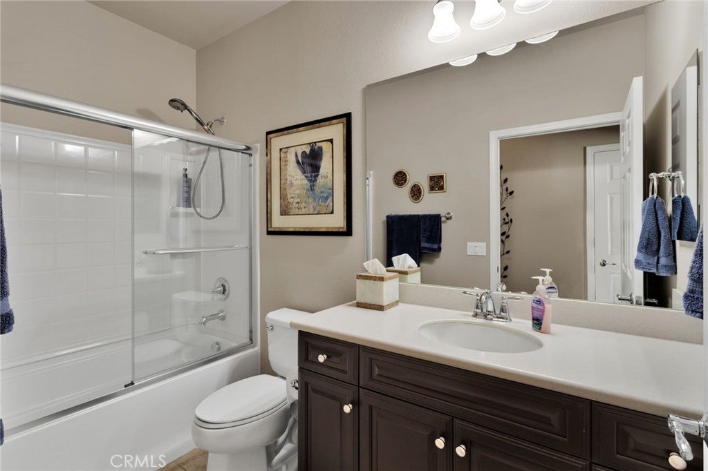 Imagine waking up each morning in your cozy, beautifully-maintained home nestled in the heart of Solera at Del Webb. As you sip your morning coffee, you're treated to stunning views of the San Gabriel Mountains right from your own backyard. The peaceful landscape, the sound of birds chirping, and the fresh air make it feel like a daily retreat. Inside, the home welcomes you with an open-concept living area, perfect for both relaxation and entertaining. The spacious kitchen, with its granite countertops and generous cabinet space, invites you to whip up your favorite meals. And when you're done, a bright breakfast nook is the perfect spot to enjoy your meal while soaking in the sunshine. The bonus room offers endless possibilities—whether it’s your quiet office for peaceful work-from-home days, a hobby space for creative projects, or a guest room for family and friends. The primary suite is your personal haven, with a huge walk-in closet to keep everything organized and an upgraded walk-in shower that adds a touch of luxury to your daily routine. And after a day of enjoying the resort-style amenities—whether you’ve been working out in the fitness center, playing pickleball with neighbors, or lounging by the pool—you can unwind in your beautifully landscaped backyard, resting under the covered patio with breathtaking mountain views in the background. This home isn't just a place to live—it’s a lifestyle. Whether you're hosting friends or enjoying a quiet evening at home, every detail is designed to enhance your comfort and happiness. With easy access to everything you need, from indoor laundry to a garage that keeps everything organized, this home makes life simpler and more enjoyable. Welcome to the lifestyle you’ve been dreaming of.
