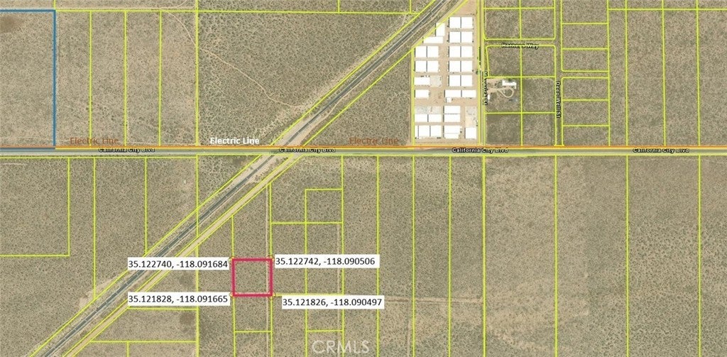 For sale is a 2.5 acre lot just south of California City Blvd and Maverick St. This lot would be at the corner of the extension of Johnson Ave and 22th St. Electricity is on California City Blvd or via solar. Priced to sell. GPS Coordinates: NW: 35.122740, -118.091684 NE: 35.122742, -118.090506 SW: 35.121828, -118.091665 SE: 35.121826, -118.090497
