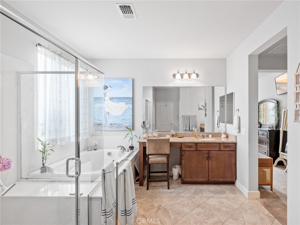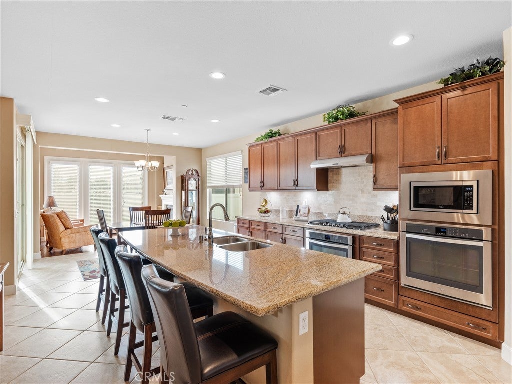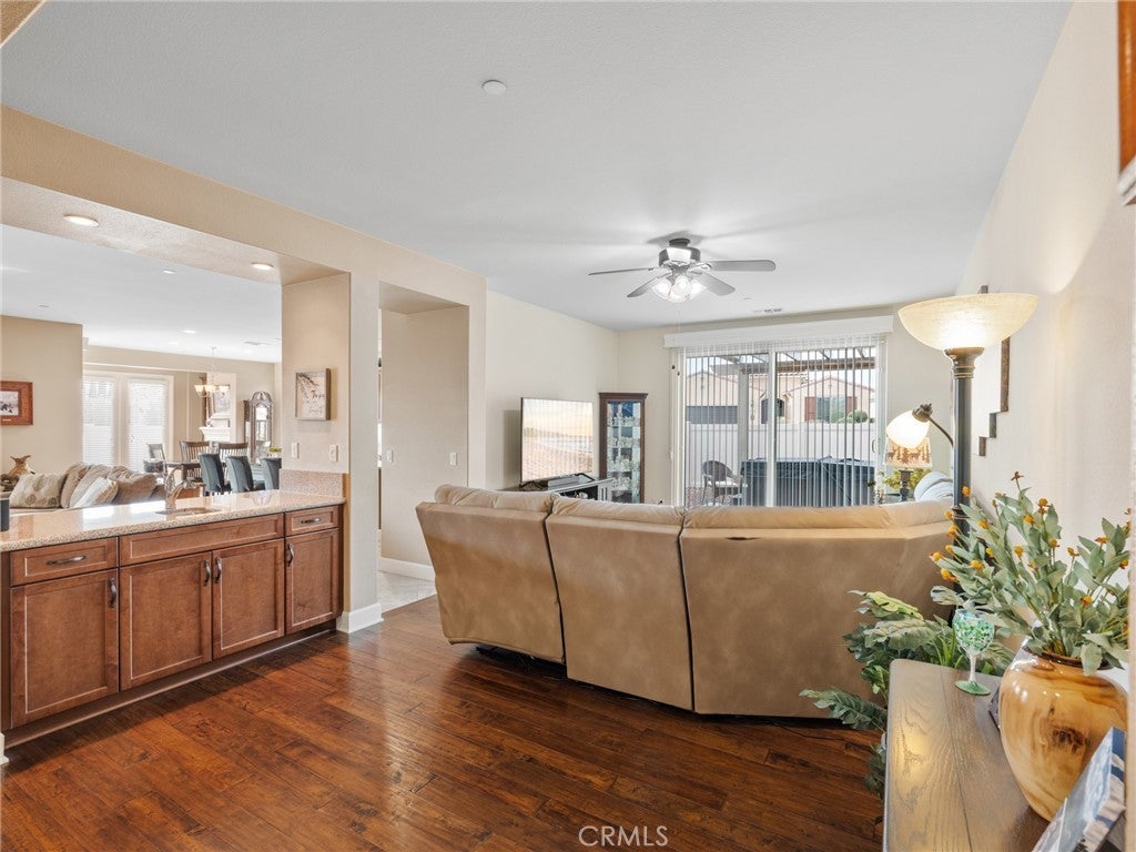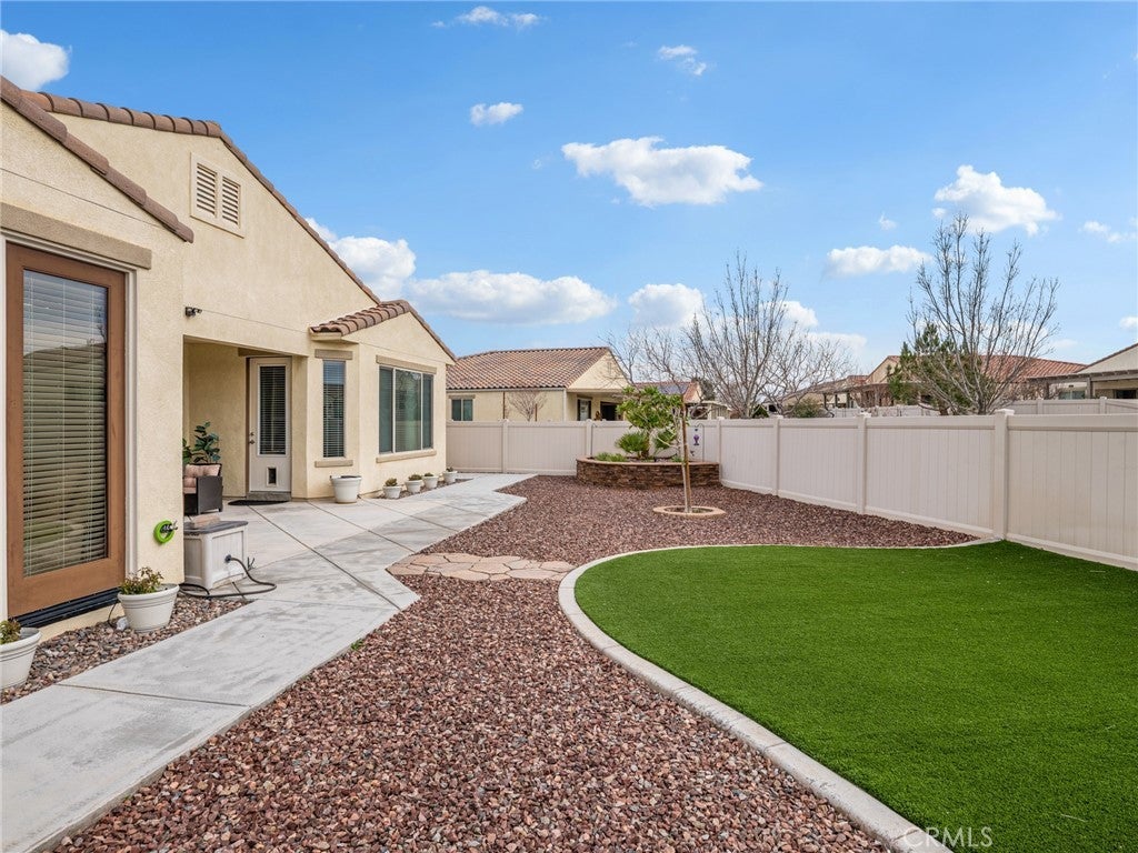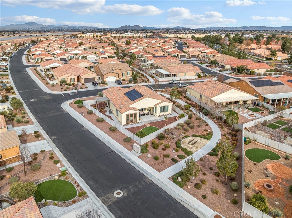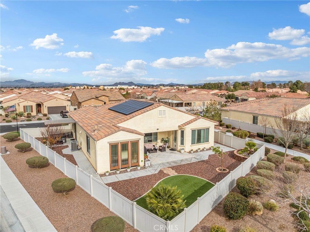 Elevated 55+ Lifestyle | Gathering Model | Paid Solar | One of Sun City’s Larger Lots. Set on one of the larger corner lots within the desirable 55+ gated community of Sun City, Apple Valley, this thoughtfully designed Gathering Model offers 3 bedrooms, 3 bathrooms, and 2,569 sq ft of well-appointed living space. Known within the community for its unique placement, the home is often referred to as being “on an island,” thanks to its corner-lot positioning with no shared fencing on surrounding sides, creating a rare sense of privacy and openness. Inside, high ceilings and abundant natural light enhance the home’s open and inviting layout. The kitchen serves as the heart of the home, featuring a center island open to the living room, double ovens, built-in microwave, stovetop range, walk-in pantry, and extensive cabinetry—perfect for both everyday living and entertaining. Just beyond, the living areas are complemented by a warm hearth room with fireplace, ideal as a cozy library, reading space, or quiet retreat. A wet bar connects the living room to the formal dining room, currently used as a den, offering flexibility for entertaining, hobbies, or additional living space. The spacious primary suite provides a private retreat, while a mini suite located near the front of the home offers comfort and privacy for guests. Flooring includes hardwood and tile throughout the main living areas, with carpeted bedrooms for added comfort. Step outside to the pergola-covered patio off the den, where a hot tub creates an inviting space to relax and unwind. The fully landscaped yard is designed for ease of maintenance, featuring decorative rock and raised planters that allow for beauty without the upkeep. Additional highlights include a paid-off solar system, a flagpole accenting the corner lot, and a peaceful setting that enhances the active adult lifestyle. Conveniently located near Jess Ranch Marketplace, the home offers close proximity to shopping, dining, and movie theaters while enjoying the security and amenities of this highly sought-after community.