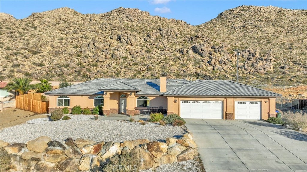 Welcome to this beautiful Apple Valley home, offering comfort, space, and stunning desert scenery. Featuring 4 bedrooms, 3 full bathrooms, and 1 half bath, this property boasts 2,502 sq ft of living space on a generous 0.71-acre lot with RV access. Step into the inviting living room, highlighted by a beautiful fireplace, perfect for cozy evenings. The home includes two spacious primary suites, each offering walk-in closets and ensuite bathrooms complete with both a shower and a soaking tub.The open-concept layout creates a seamless flow throughout the home, while the expansive kitchen provides excellent potential for customization to fit your style. Enjoy breathtaking mountain and desert views that truly set this property apart. With exceptional potential, RV access, and ample space, this home is the perfect opportunity to create your ideal desert retreat.