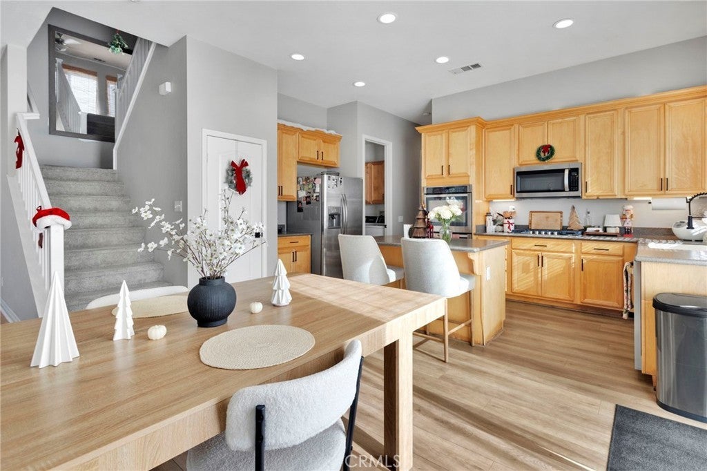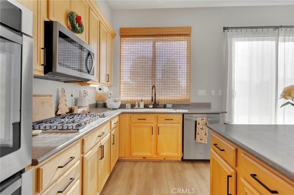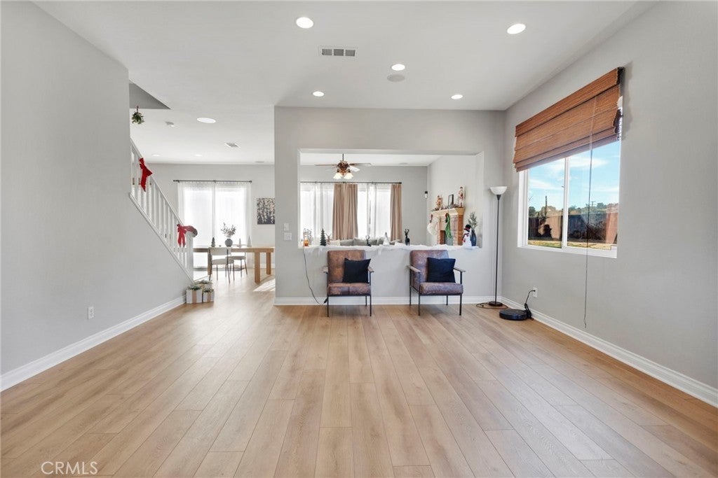 Spacious and inviting two-story home in Hesperia offering 4 bedrooms, 2.5 bathrooms, and nearly 3,000 square feet of space to stretch out, spread out, and still not trip over each other. The open floor plan is filled with natural light and generous living and dining areas that handle everything from slow mornings to lively gatherings with friends who somehow always end up in the kitchen. Speaking of which, the kitchen offers ample cabinet storage, plenty of counter space, and a large island that’s perfect for meal prep, late-night snacks, or keeping an eye on homework while pretending not to listen. Upstairs, you’ll find oversized bedrooms and flexible space ideal for a home office, game room, workout zone, or that room you’ll swear you’ll organize “this weekend.” The primary suite is your well-earned retreat, featuring a spa-style bathroom with dual sinks, a soaking tub, separate shower, and a walk-in closet with custom built-ins that might finally settle the great closet debate. The entire home has an audio system and surround sound in the family room. The upstairs have 10' ceilings and downstairs have 9' ceilings. This also allowed for higher doors throughout the house. An advantage you wouldn't see is the radiant roof barrier. This helps with utility costs in both the summer and winter. this home has a walking closet in each bedroom, walk-in pantry, new appliances and new flooring. Additional highlights include recessed lighting, ceiling fans, a dedicated laundry room, and a three-car garage with room for cars, storage, and the projects you’re definitely going to finish. The backyard offers space to relax, entertain, or start planning future barbecues. Conveniently located near schools, shopping, and commuter routes, this home delivers comfort, flexibility, and enough space to grow into without outgrowing it too fast.