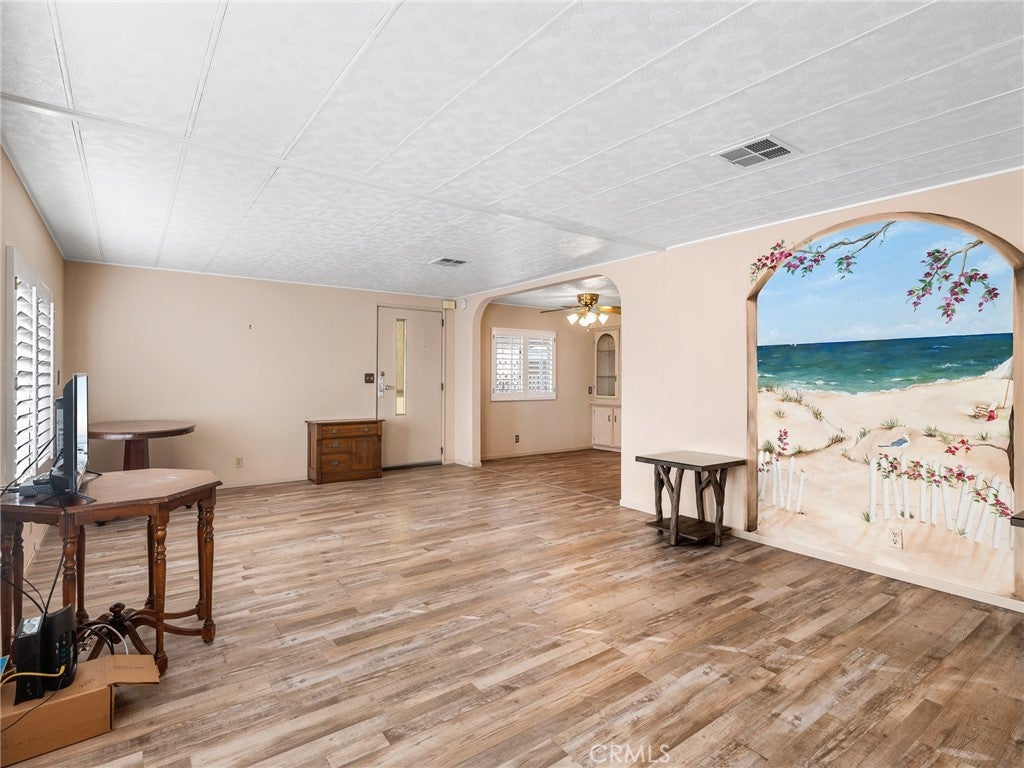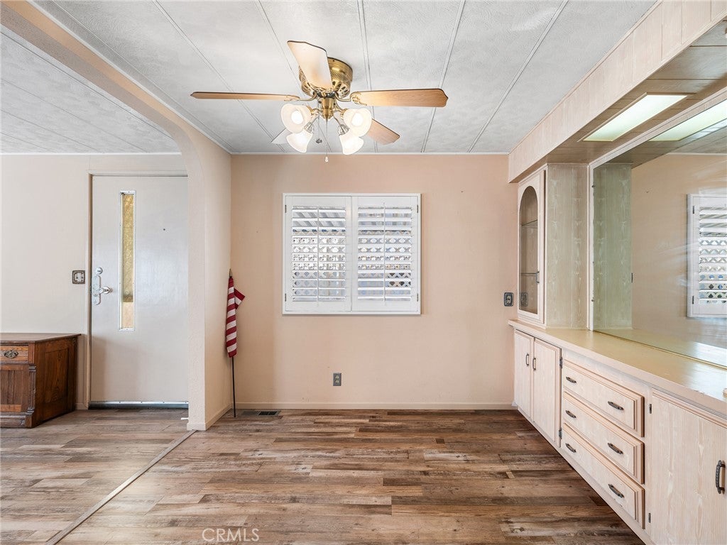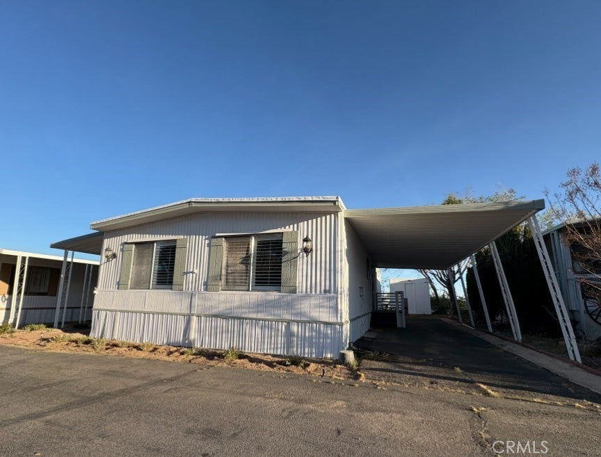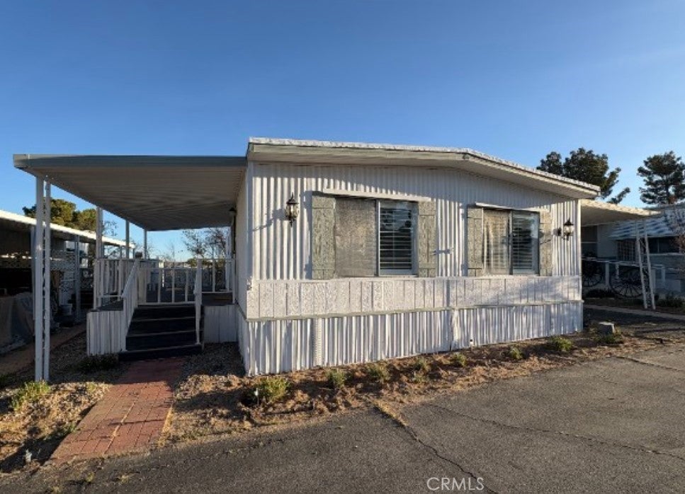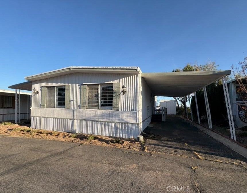 Well-cared-for home in a quiet 55+ community designed for relaxed, low-stress living. This inviting residence offers two spacious bedrooms and two bathrooms, including a primary suite with a large walk-in closet. The open-concept layout features updated flooring, plantation shutters throughout, built-in storage, and a separate laundry room that keeps everything in its place. A large covered front deck creates the perfect spot to enjoy desert mornings and cool evenings, while the mature desert landscaping, apricot tree, and clean side and backyard spaces add to the home’s appeal. Additional features include a two-car covered carport, automatic sprinkler system, oversized storage shed, and shade awnings on the windows to help keep the home comfortable. Residents enjoy access to a heated pool, fitness equipment, game room, library, gathering areas, dog park, and free RV parking, all with onsite management. Conveniently located near shopping while remaining pleasantly tucked away, this community offers low space rent, affordable utilities, and a welcoming environment.