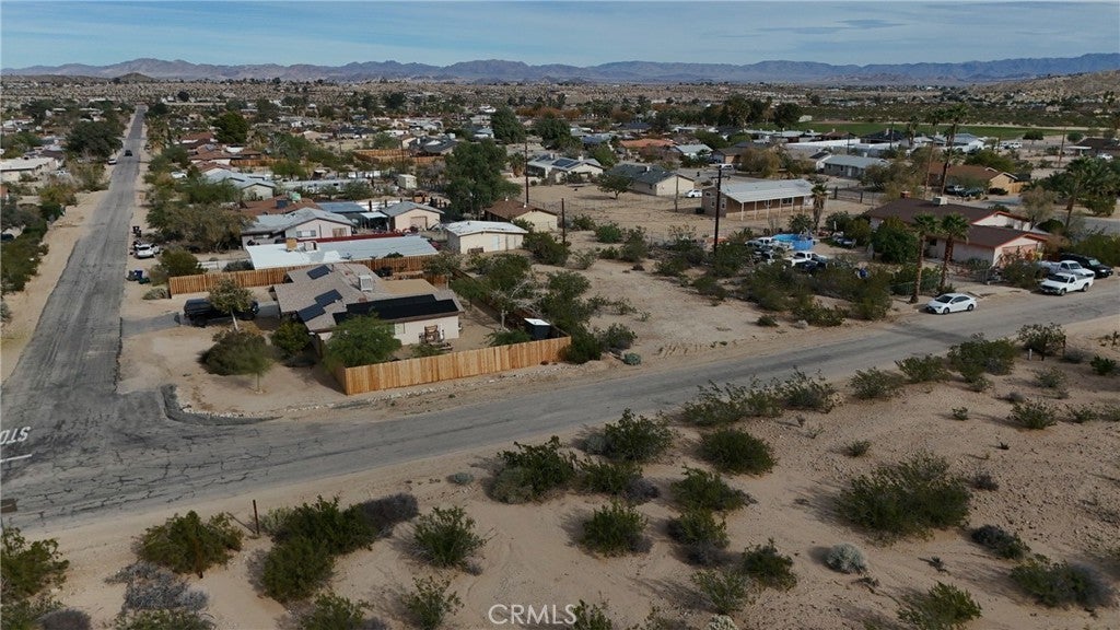 This 11,250 sq ft vacant lot in 29 Palms is zoned RS-1 and offers a clear, picturesque view of Joshua Tree National Park, with a mountain range directly across the street, making this location ideal for outdoor and nature lovers. The property is within walking distance of the Twentynine Palms Dog Park, which includes separate fenced areas for large and small dogs, and Knott Sky Park, a well-maintained community park with playgrounds, picnic areas, ballfields, restrooms, and open space. Joshua Tree National Park is known for its unique rock formations, desert scenery, hiking trails, and dark night skies. Utility access is in the street, and buyers should contact the City of Twentynine Palms directly to verify availability and connection costs. This is a great chance to build in a scenic area with outdoor amenities and easy access to Joshua Tree National Park for hiking and exploration. Don’t miss this chance to secure this scenic lot! This property does not have an address assigned. "791 Foothill Dr." is for listing purposes only. APN# 0616-032-25-0000 Coordinates: 34.124525 / -116.085813