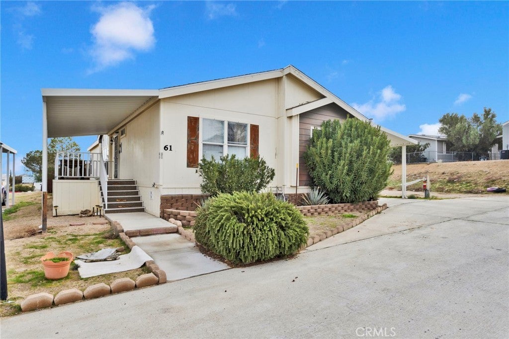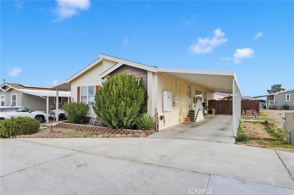 ***BEST PRICED HOME AROUND*** Amazing 3-bedroom, 2-bath double-wide home in the desirable Santiago Desert View Estates. This move-in-ready home features an open floor plan, spacious living area, bright kitchen with plenty of cabinet and counter space, and in-unit laundry for added convenience. The covered carport can easily fit 2 vehicles plus you have a fenced backyard perfect for dogs with a shed for storage. The primary suite includes a large walk-in closet and private bath AND shower. Located in a quiet, well-managed community offering a clubhouse, pool, spa, and playground. Conveniently situated near the BNSF Railway facility in Barstow, shopping, dining, and major commuter routes.