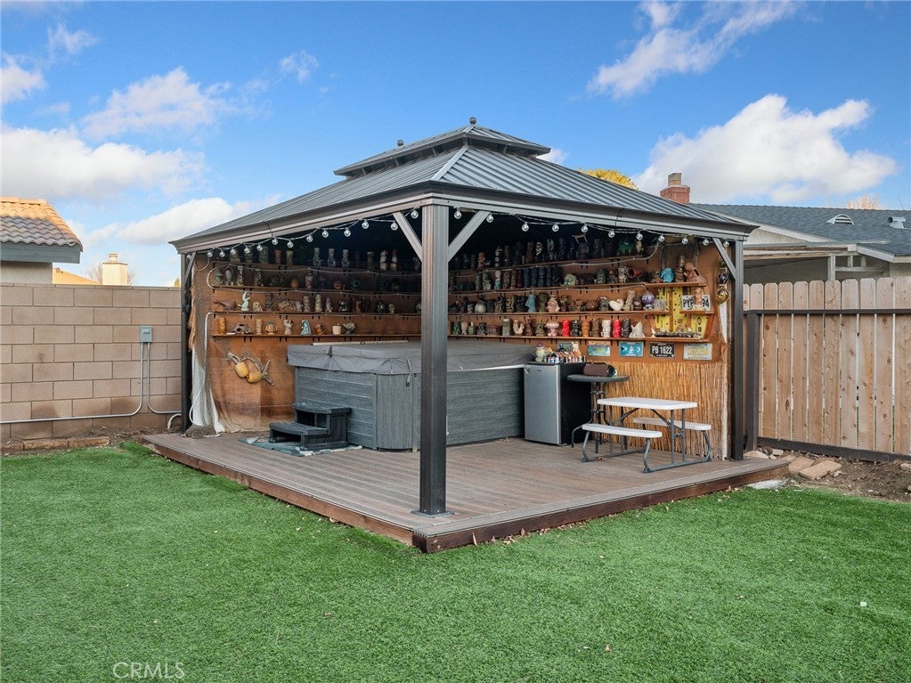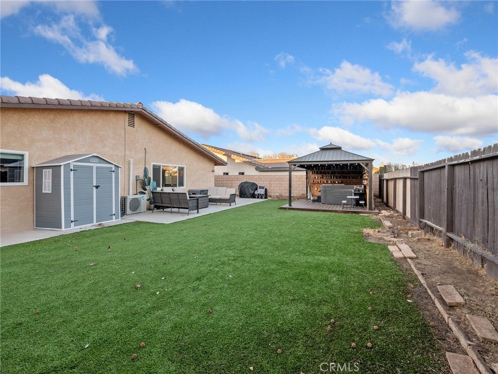 Great starter home located in the well sought community of Spring Valley Lake. As you walk in you are welcomed by ceramic-wood style flooring, stone fireplace and bright windows. Spacious living room is a great space for entertaining. A 24000 BTU mini split was installed for added energy efficiency. Open floor plan which flows seamlessly to the kitchen complete with granite countertops, backsplash and ample kitchen cabinets. Indoor laundry room is convenient. The backyard has a spacious lot with artificial turf for easy maintenance. Enjoy a glass of wine while relaxing in your hot tub. Home is equipped with solar panels which keeps your electric bill low. As part of the Spring Valley Lake community, you'll enjoy unmatched amenities: a 200-acre waterski lake with marina, swimming beach, parks, fishing areas, and a top-tier equestrian center. Golf lovers will appreciate being steps from the award-winning 18-hole Steel Canyon Golf Club and country club, all within your neighborhood. The community is protected by a 24/7 Public Safety Department offering professional security services, medical response, lake patrol, and strategically placed surveillance cameras for added peace of mind.