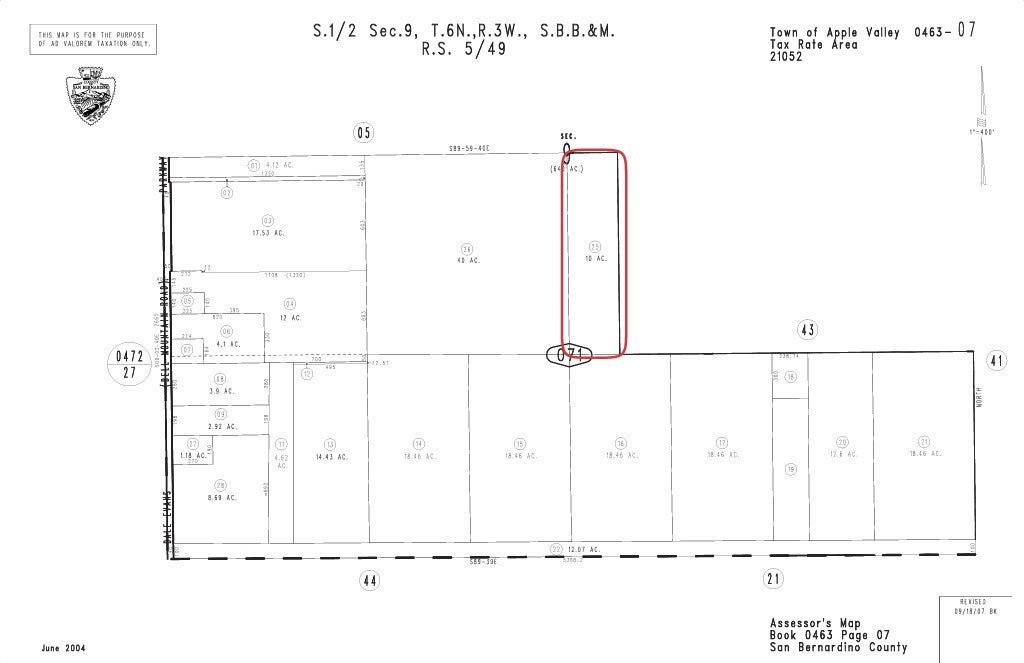 MOTIVATED SELLER! 10 ACRES of COMMERCIAL LAND in NORTH APPLE VALLEY, located along DALE EVANS PARKWAY within an established INDUSTRIAL / COMMERCIAL CORRIDOR of the HIGH DESERT. The property offers convenient access to I-15 and MAJOR LOCAL ROADWAYS. The surrounding area includes existing INDUSTRIAL and DISTRIBUTION FACILITIES, including the WALMART and BIG LOTS DISTRIBUTION CENTERS, as well as the LEACANGS DISTRIBUTION CENTER, currently under construction and planned at approximately 1,207,135 SQUARE FEET. The site is also located near the planned BRIGHTLINE WEST HIGH-SPEED RAIL CORRIDOR, with a proposed VICTOR VALLEY STATION along the I-15 FREEWAY. Zoned COMMERCIAL – OP (OFFICE PROFESSIONAL), the parcel may allow a range of PROFESSIONAL and COMMERCIAL USES. BUYER TO VERIFY zoning, permitted uses, utilities, development requirements, and all project information with the TOWN OF APPLE VALLEY and appropriate agencies. This property does not have an assigned address. Any address referenced is for listing purposes only. APN 0463-071-25-0000. GPS Coordinates: 34.621116°N, 117.197737°W. Drive by today! OWNER WILL FINANCE!