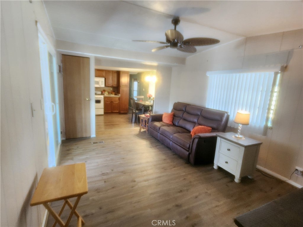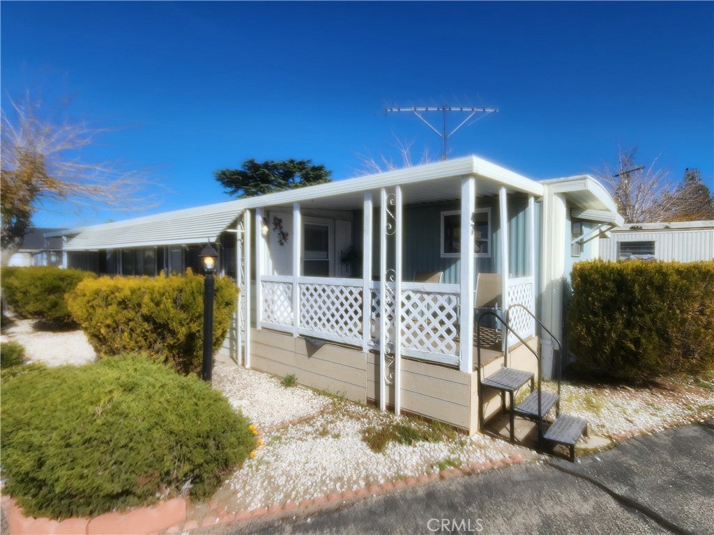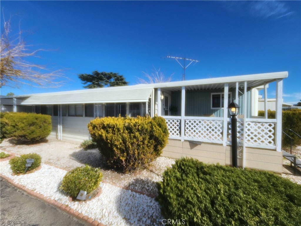 Convenient, Affordable, and Upgraded Manufactured Home in a 55+ Park. This 2-bedroom, 2-bathroom Home Features, New Flooring Throughout, Newer Appliances, Upgraded Cabinets, a Newer Slider Entrance Door, a Primary Bedroom, Ceiling Fans, 2 New Windows, an Enclosed Patio with Laundry Area and Additional Storage. A Full-Size Carport That Will Possibly Fit 2 Cars, Two Sheds, a Back Patio Area, and a Covered Front Porch. It is Conveniently Located Very Close to Restaurants, Stater Brothers Grocery, Post Office, Banks, Storage Facilities, and Repair Shops. This Could Be Your Next Home!