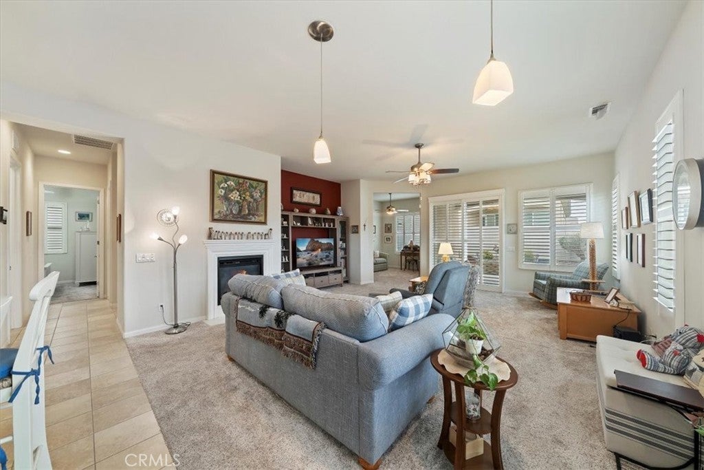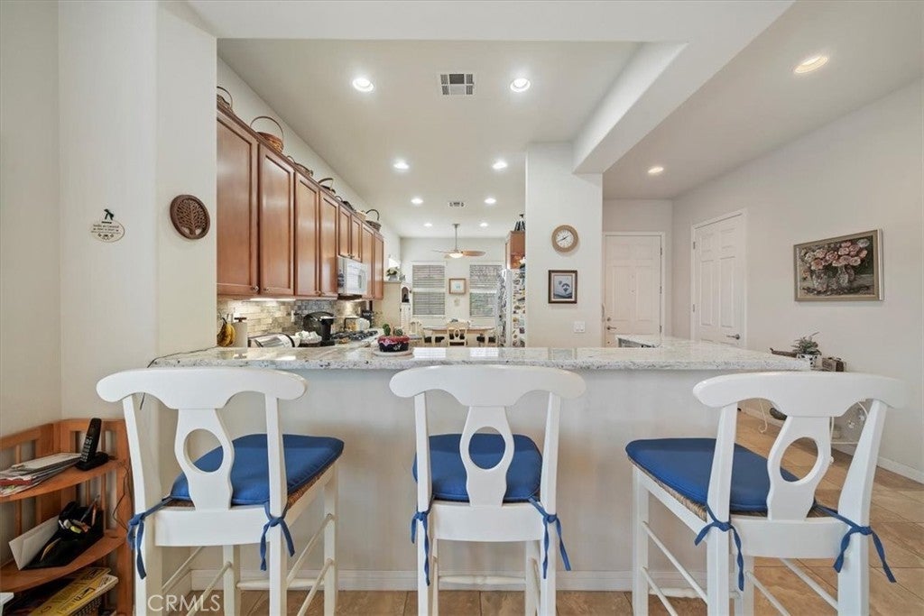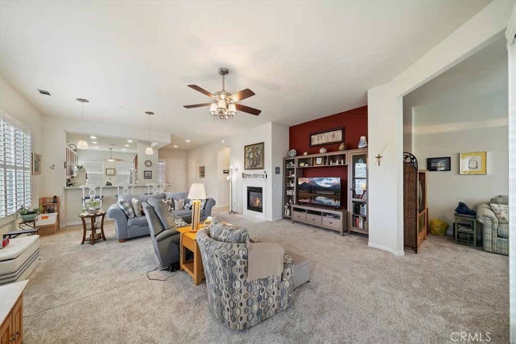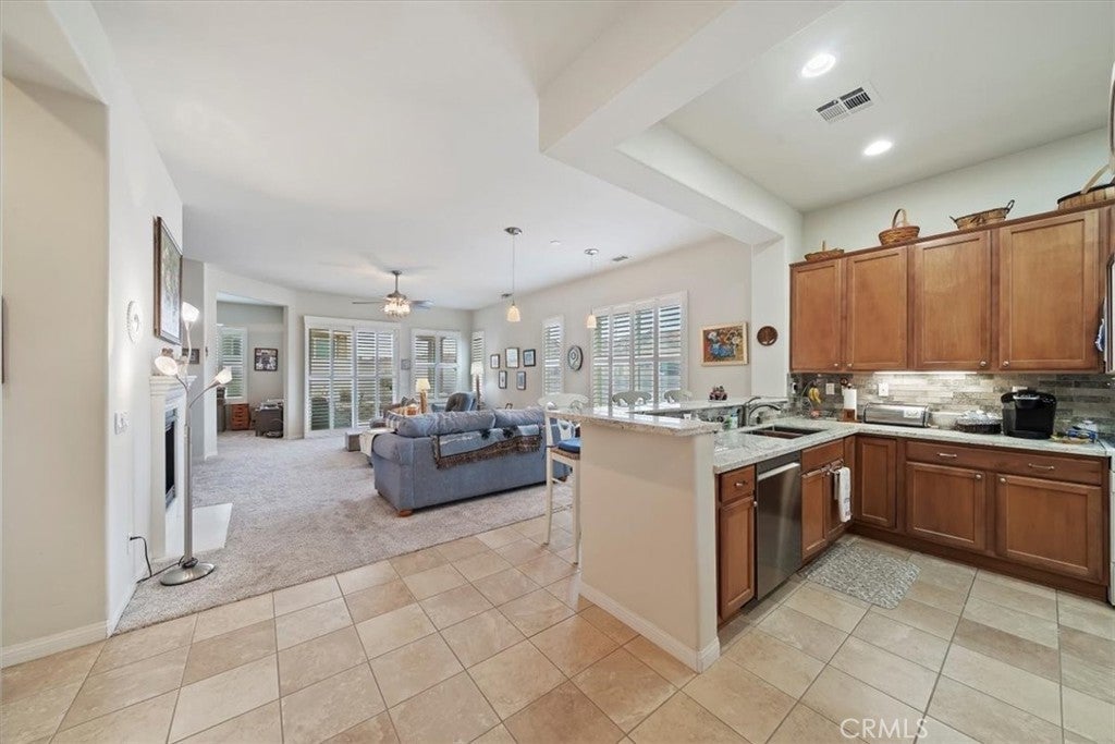 Welcome to your new home! This home has everything you need to enjoy within a well-maintained, gated, Senior community with countless activities and events to participate in or relax and enjoy the peaceful comforts of being home! Enjoy entering this beautiful home with an open floor plan featuring spacious rooms and an updated kitchen equipped with newer granite countertops, full backsplash, abundant cabinetry with pull-out drawers, pantry, a dining area with a view, and a large bar counter providing additional space for entertaining. Additional features include lovely plantation shutters, recessed lighting, ceiling fans, a beautiful fireplace, and an indoor laundry room with wash basin and ample storage cabinets. The primary bathroom offers a walk-in closet, walk-in shower, and a dressing area with generous counter space, double sinks, and lighting options. This is a must-see property, full of lovely spaces, beautiful windows, finished two-car garage and spacious driveway, surrounded by professional landscaping and flatwork. Make your appointment today!