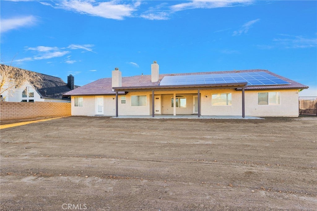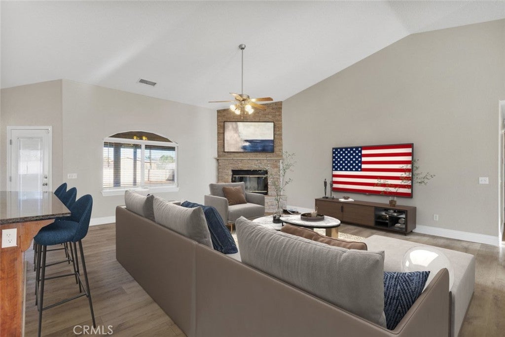 Welcome to this beautiful Apple Valley home situated on a spacious lot of over half an acre, offering room to spread out, store toys, and truly enjoy desert living. The paid off solar panels is a huge money saver. The fully fenced property features block wall fencing, RV parking, an attached 3-car garage, eye-catching curb appeal with mature, well-maintained landscaping, a security camera system, and a custom dog run with artificial grass. Inside, you’ll find vaulted ceilings, waterproof vinyl flooring, and a welcoming living room anchored by a stunning stacked-stone fireplace. A formal dining room provides the perfect setting for gatherings, while a dedicated office and bonus room offer flexibility for work, hobbies, or additional living space. The heart of the home is the massive kitchen, complete with a large island, barstool seating, stainless steel appliances, pantry, recessed lighting, and a bright breakfast nook surrounded by windows that flood the space with natural light. The private primary suite is a true retreat, featuring its own fireplace, a spacious walk-in closet, a soaking tub, and a beautifully finished tile shower. An indoor laundry room adds convenience with built-in cabinets, counters, and a utility sink. Step outside to a large covered patio, perfect for relaxing or entertaining, with plenty of space to customize the yard to your vision. Solar panels will be paid off at close of escrow, adding long-term energy savings and peace of mind. Located in one of Apple Valley’s most desirable areas, this home is close to top-rated schools, Jess Ranch Marketplace, and some of the best shopping and dining the High Desert has to offer. This is the space, comfort, security, and location you’ve been waiting for.