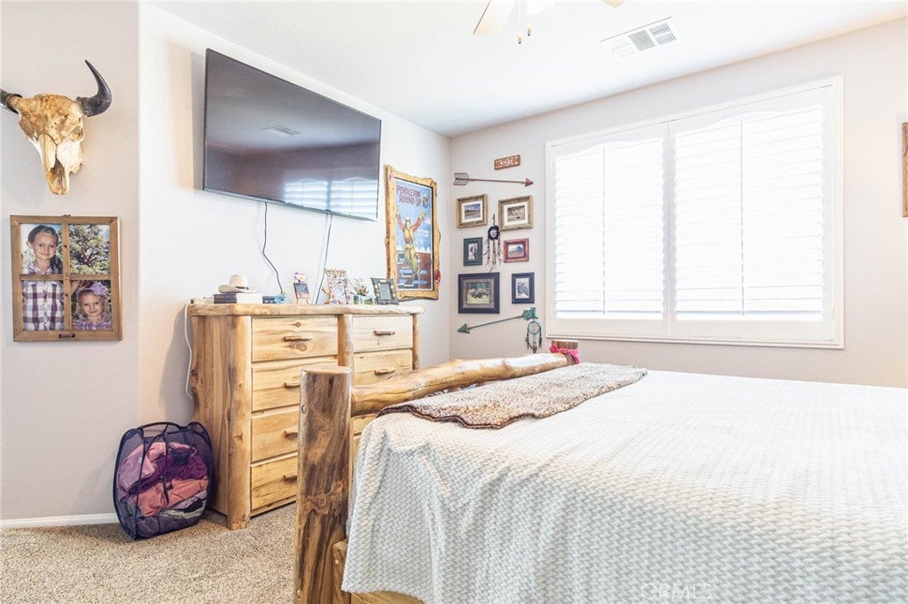Do you want to live in a beautiful 55+ community in desirable Apple Valley? Come check out this beautiful home located on the Mojave riverbed with a beautiful view of the San Gabriel mountains. A large courtyard welcome you to a lovely place to set and enjoy. Then enter to find a home that has 2 bedrooms, 2 bathrooms, a den with double glass doors and a wonderful kitchen with a breakfast nook, large pantry, stainless steel appliances, pull out shelves and granite counters. The open great room has a fireplace and dining area which is open to the kitchen. There are two solar tubes, one in the kitchen and one in the laundry room. Home is appointed with plantation shutters, crown moulding and ceiling fans. Beautiful tile floors that look like would planks were installed in 2018 along with upgraded carpet in the bedrooms and was fully painted inside at that time. The primary bathroom has dual sinks, walk-in shower, linen closet, water closet and large walk-in closet. Primary bedroom has that beautiful view to wakeup to. Step out back to a covered patio to take in the view. Home was completely painted outside, stucco and trim 4 years ago. Call and make your appointment.
