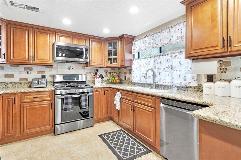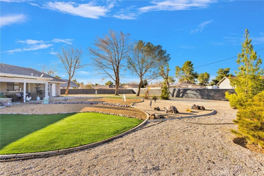 Welcome to this exceptional home located in one of Apple Valley’s most sought-after neighborhoods, tucked away on a quiet cul-de-sac and set on a large lot with tons of parking. From the moment you arrive, the beautifully landscaped front and backyard set the tone for the pride of ownership found throughout. The four-car garage includes a spacious 16' x 16' home office or workshop, and the oversized RV pad with full hookups on the side of the garage is perfect for all your toys and travel needs. Inside, you’ll find a welcoming space that instantly feels cozy yet open, with warm details and an airy layout that invites you to relax and stay awhile. You'll be met with vaulted ceilings, exposed beams, and a wood-burning stove, perfect for snuggling up to on those chilly winter nights. The home also features new windows, all new window coverings, an indoor laundry room, and thoughtful upgrades throughout. Step outside to enjoy the covered back patio—ideal for relaxing or entertaining—and appreciate a property that has been meticulously maintained and truly move-in ready.