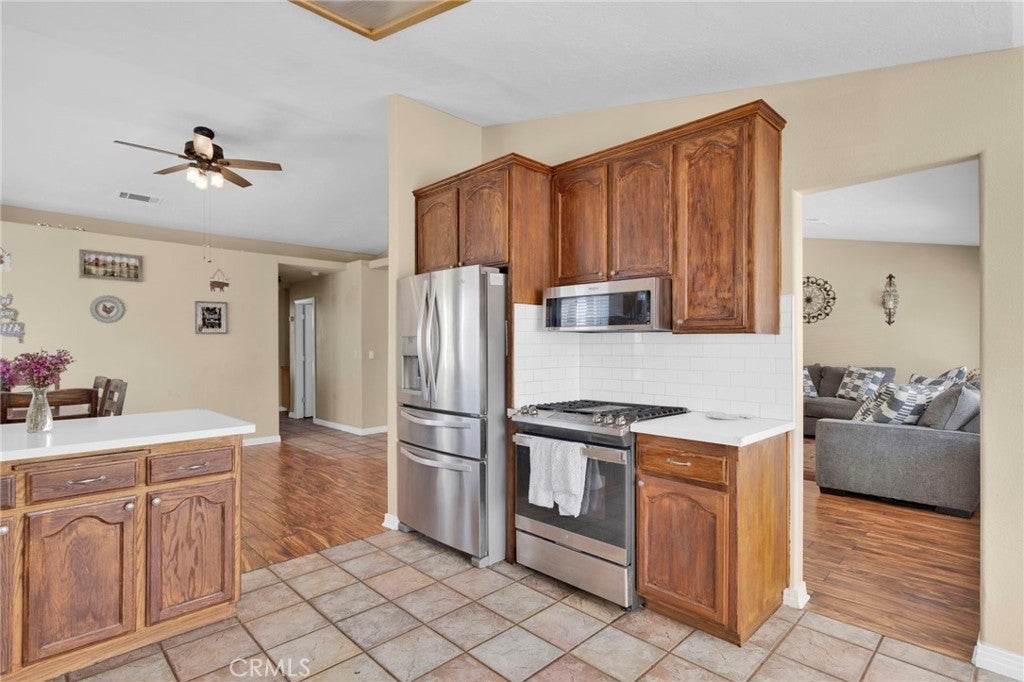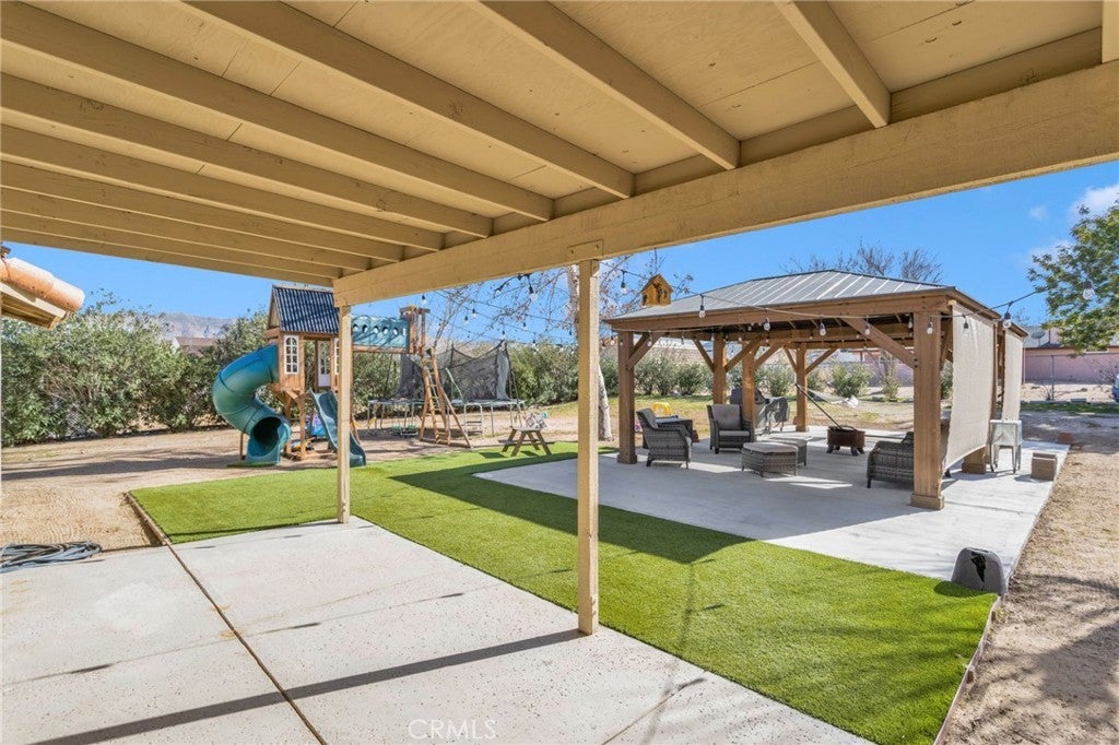 Beautiful home in the highly desirable, commuter friendly Mesa area of Hesperia. The decorative front gates, circular driveway, and clean landscape give this home great curbside appeal. Upon entry you are greeted with a large living room with a wall full of windows into the backyard. This room shares a double-sided fireplace with the den area. The kitchen ia large with plenty of cupboard space and a bright, sunny nook. Popular split floor plan with the master on one side of the home, and the two bedrooms on the other. The master suite is over-sized with high ceilings, alcove of windows, custom paint, and large walk-in closet. The other two bedrooms are spacious with plenty of closet space. This home is located on nearly a half-acre with rv/boat access on either side. Indoor laundry, finished garage, and a large gazebo in the backyard for entertaining.