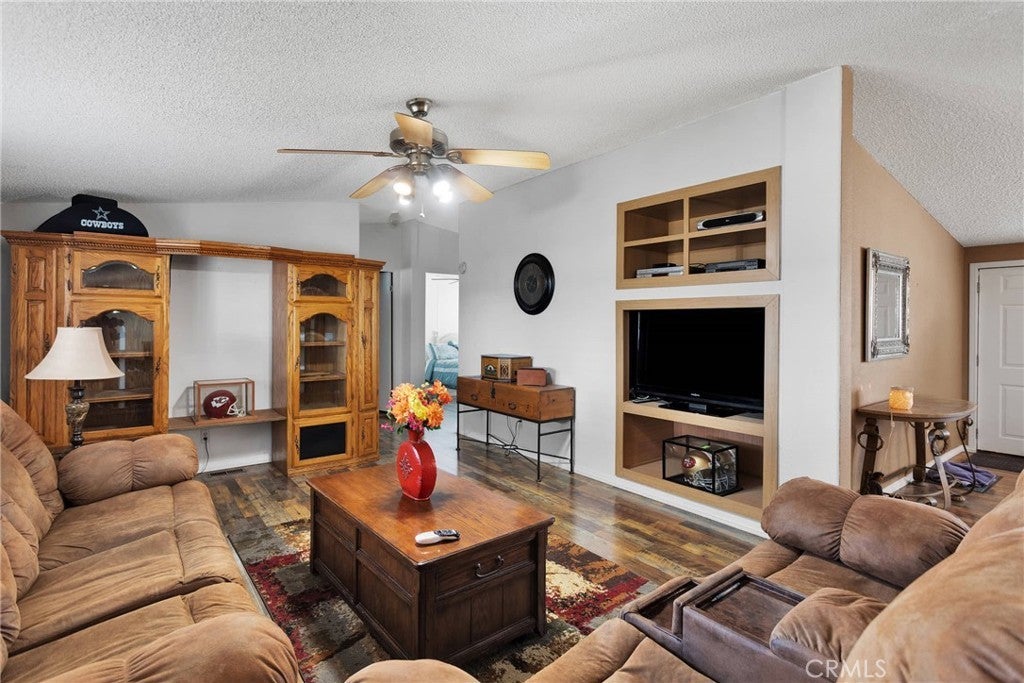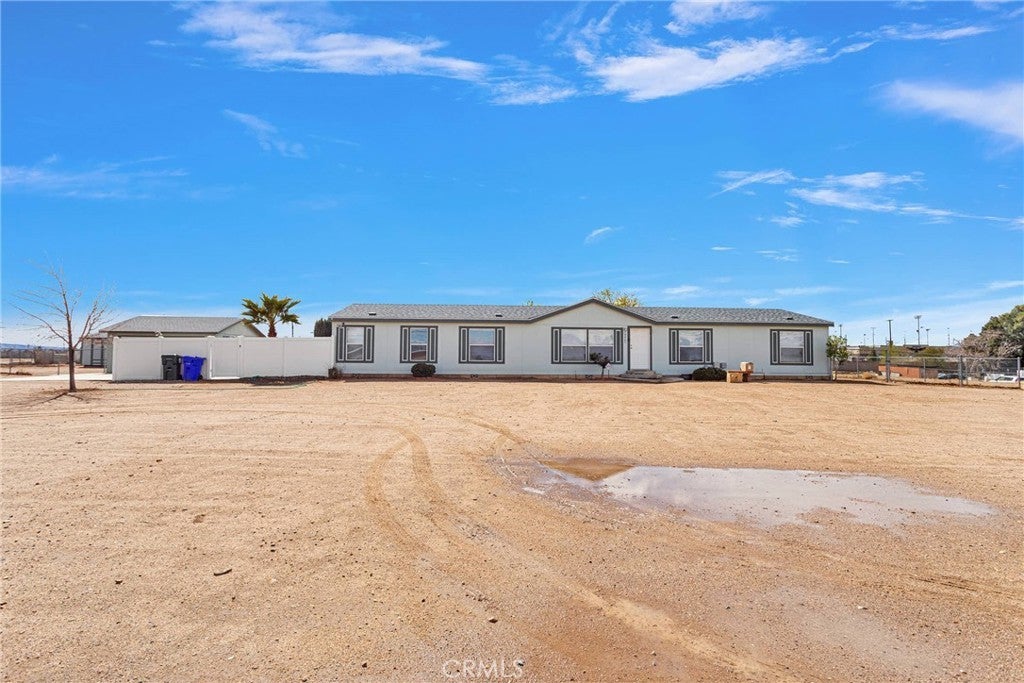 Charming 4-bedroom, 2-bathroom Mobile Home on Permanent Foundation with Modern Updates! This spacious 2002 mobile home is set upon perm foundation with a 2-car detached garage. This property offers an ideal blend of comfortable living and convenience. Split floor plan, large primary suite, with TV area or office, with en suite bathroom and walk in closet. 2 additional bedrooms have wardrobe closets. Ample storage with 2 extra sheds, free standing spa with privacy screening, built in BBQ, and covered patio make a perfect area for entertaining. Large kitchen with center island and a separate room for laundry, washer, and dryer. Even a freezer will fit in there. Recent upgrades include newer flooring in the living room, family room, hall, and one bedroom. Brand new roof was installed in 2024, giving you peace of mind for years to come. Could be horse property, fence does not include the entire property, section in back could be for barn and arena.