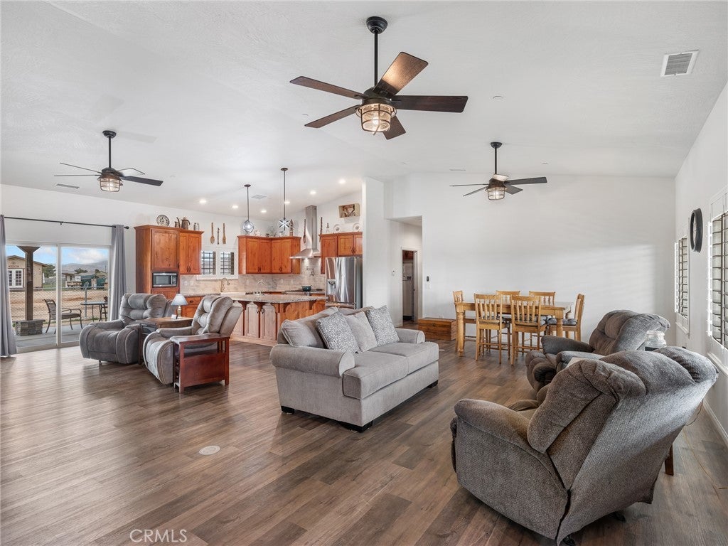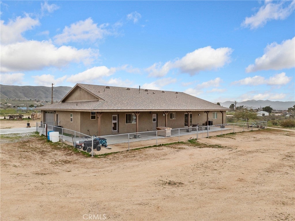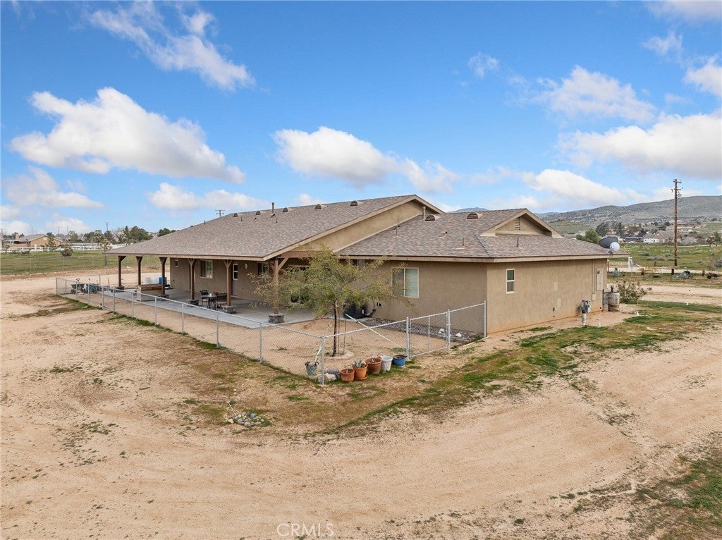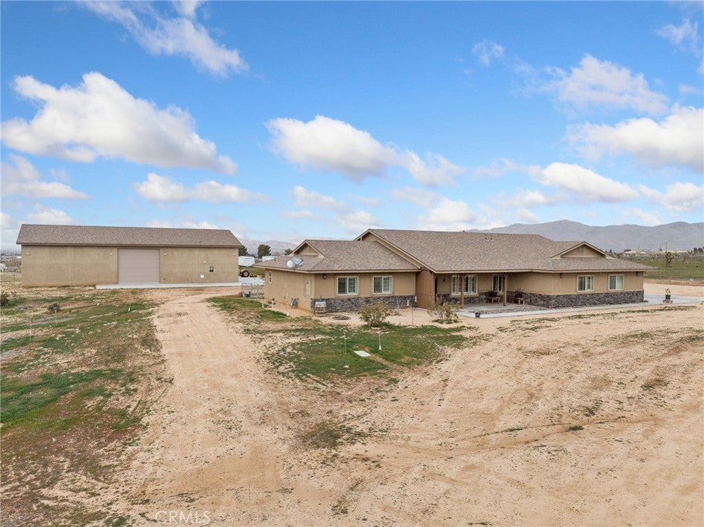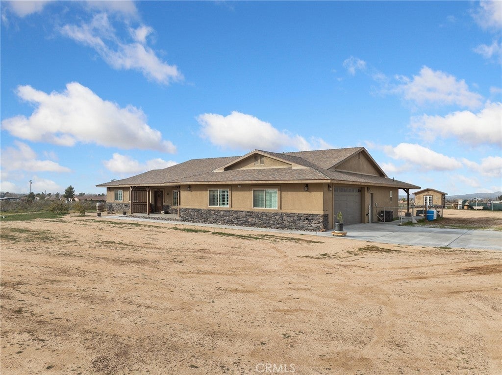 CUSTOM-BUILT - 3-YEARS NEW - PRISTINE MOVE-IN READY! A home with a vision - and every box is checked!! This meticulously maintained, custom-built 3-bedroom (could be 4 BDR by adding divider wall to extra large bedroom designed for live-in family member), 3 full baths residence on 4 ACRES offers quality craftsmanship and thoughtful design throughout. Immaculate and truly move-in ready * All You Need To Do Is Make It Home. INTERIOR HIGHLIGHTS: Exquisite chef's kitchen featuring a ZLINE 6-burner gas cooktop, All-gas stainless steel appliance package, Custom range hood and convenient pot filler, Tankless water heater for energy efficiency and endless hot water. Built to discerning standards with quality finishes throughout. DREAM GARAGE / SHOP - 3200 SQ. FT. 49'X80' The shop you and your spouse have always dreamed of building: Massive 4,000 sq. ft., Full bathroom, Open truss construction, 30 feet wall-to-wall work bench & 6-inch reinforced concrete slab designed to support substantial weight and heavy equipment. Plus, an expansive 4-car tandem attached garage thoughtfully equipped for an electric vehicle charging station. GARDEN: Charming gardening shack anchors this flourishing garden oasis, where fresh spinach, artichokes and crisp lettuce grow just steps from your kitchen. Thoughtfully arranged garden beds and a dedicated composting area create a sustainable, self-sufficient space designed for true farm-to-table living. ADDITIONAL FEATURES: 300 sq. ft. recreation cabin on the corner of the lot. Drive-over septic cover rated for maximum weight. Shared well (Apple Valley Foothill County Water District - highly regarded water source. SPECTACULAR views of the Marianas' Mountains. This property offers the perfect blend of refined living and serious workspace - ideal for hobbyists, business owners, collectors, family and anyone who values space and quality!