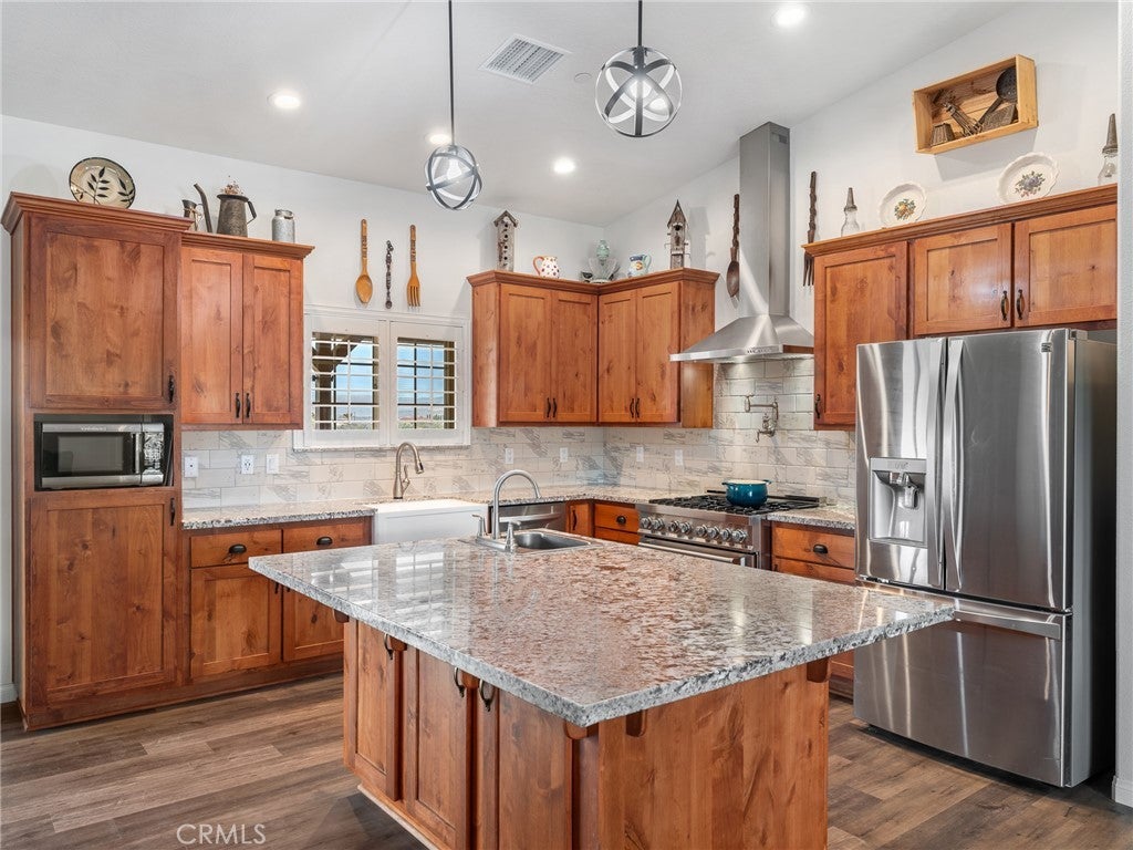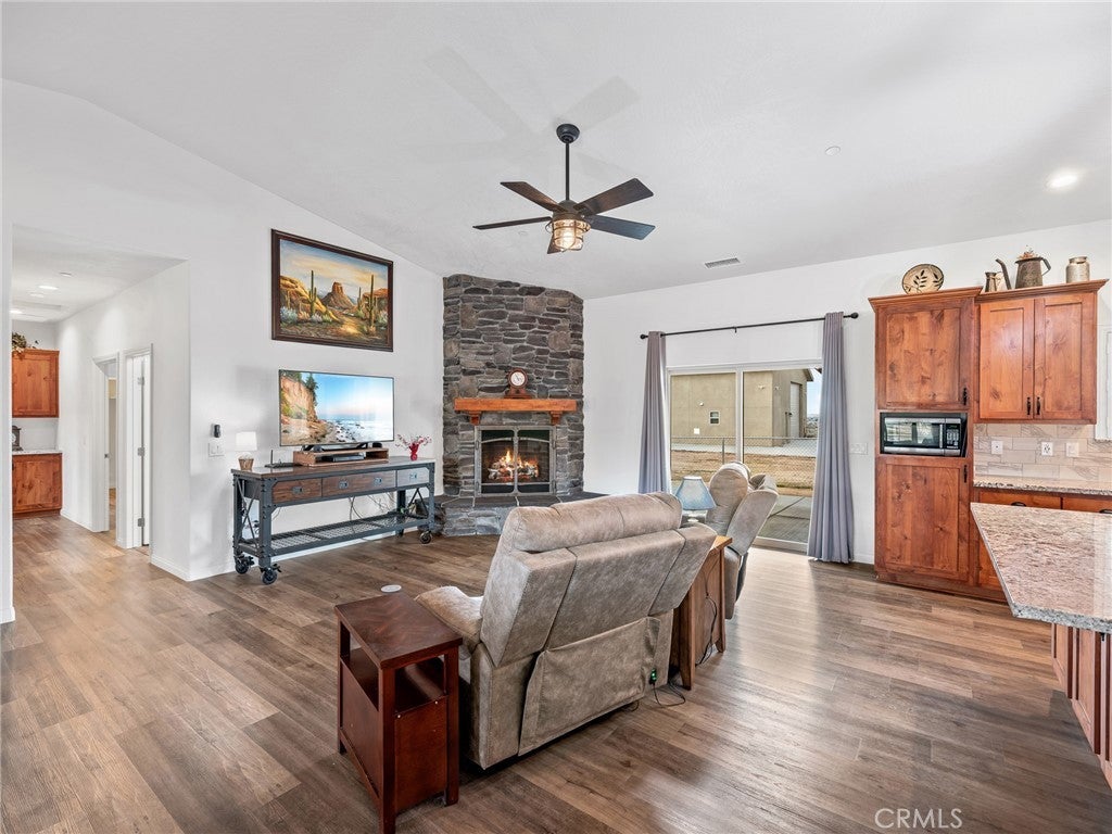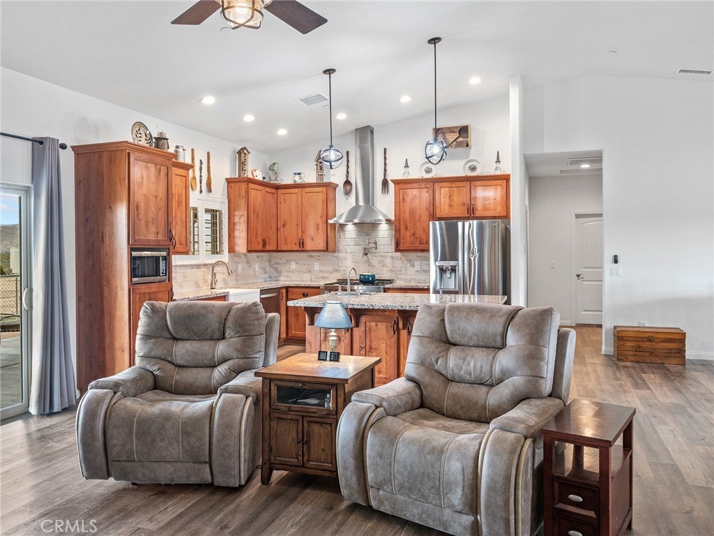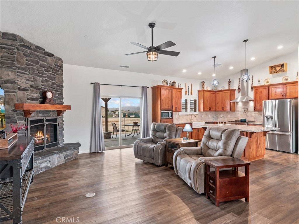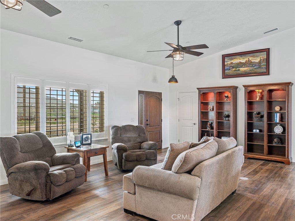 CUSTOM-BUILT - 3-YEARS NEW - PRISTINE MOVE-IN READY! A home with a vision - and every box is checked!! This meticulously maintained, custom-built 3-bedroom (could be 4 BDR by adding divider wall to extra large bedroom designed for live-in family member), 3 full baths residence on 4 ACRES offers quality craftsmanship and thoughtful design throughout. Immaculate and truly move-in ready * All You Need To Do Is Make It Home. INTERIOR HIGHLIGHTS: Exquisite chef's kitchen featuring a ZLINE 6-burner gas cooktop, All-gas stainless steel appliance package, Custom range hood and convenient pot filler, Tankless water heater for energy efficiency and endless hot water. Built to discerning standards with quality finishes throughout. DREAM GARAGE / SHOP - 3200 SQ. FT. 49'X80' The shop you and your spouse have always dreamed of building: Massive 4,000 sq. ft., Full bathroom, Open truss construction, 30 feet wall-to-wall work bench & 6-inch reinforced concrete slab designed to support substantial weight and heavy equipment. Plus, an expansive 4-car tandem attached garage thoughtfully equipped for an electric vehicle charging station. GARDEN: Charming gardening shack anchors this flourishing garden oasis, where fresh spinach, artichokes and crisp lettuce grow just steps from your kitchen. Thoughtfully arranged garden beds and a dedicated composting area create a sustainable, self-sufficient space designed for true farm-to-table living. ADDITIONAL FEATURES: 300 sq. ft. recreation cabin on the corner of the lot. Drive-over septic cover rated for maximum weight. Shared well (Apple Valley Foothill County Water District - highly regarded water source. SPECTACULAR views of the Marianas' Mountains. This property offers the perfect blend of refined living and serious workspace - ideal for hobbyists, business owners, collectors, family and anyone who values space and quality!