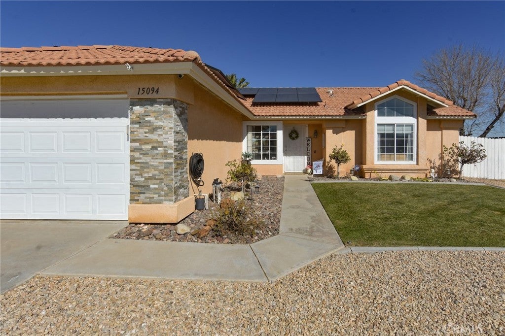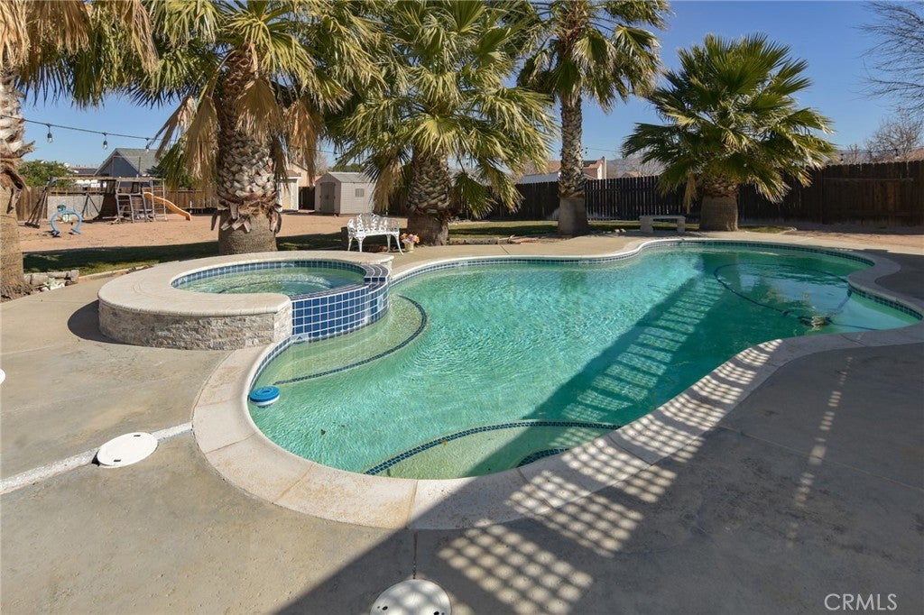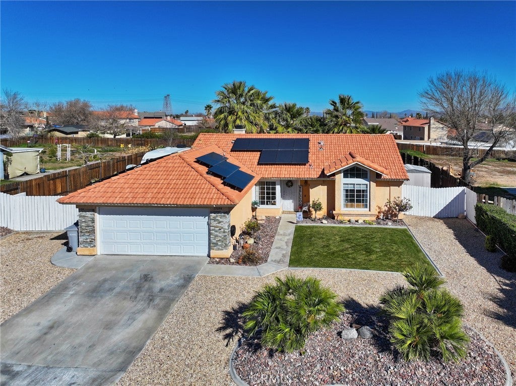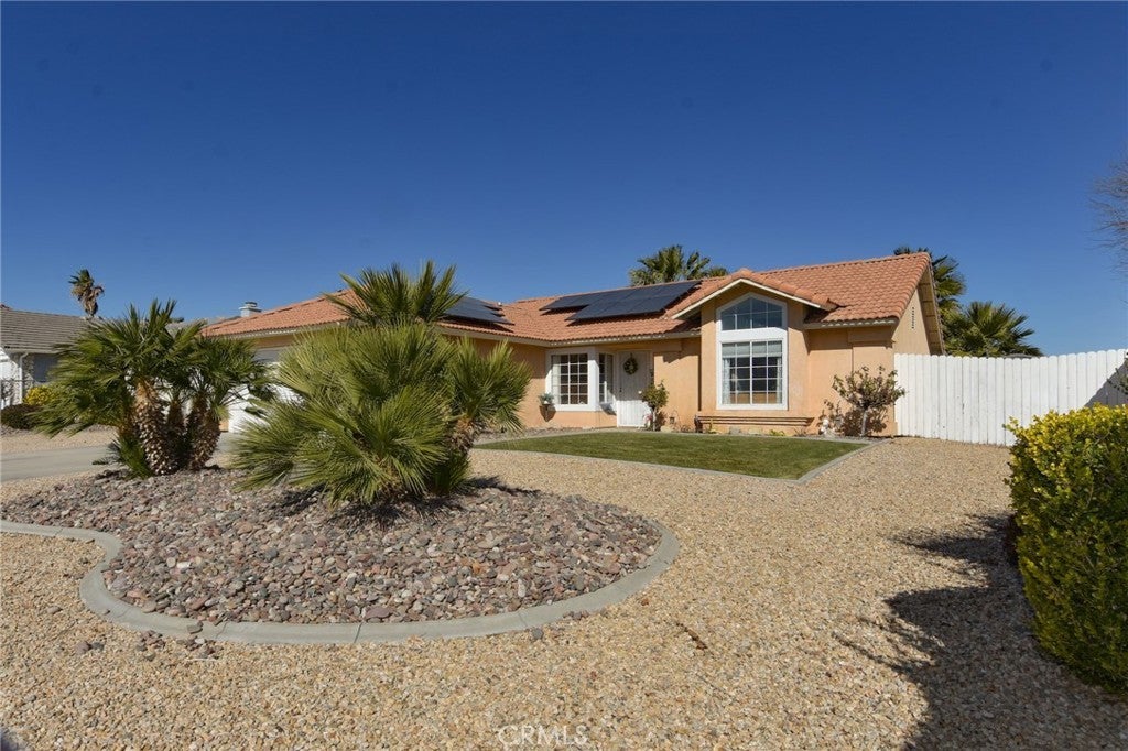 3BR/2BA single-story home in Hesperia. Owned solar, private pool and spa. Built 1991, 2-car garage, no HOA. Approx. 18,000 sq ft lot size. This single-story 3 bedroom, 2 bathroom home offers a functional layout designed for everyday living. Built in 1991, the property has been consistently maintained and reflects long-term care, making it a practical option for buyers seeking space, efficiency, and usable outdoor features. The interior provides a well-kept, comfortable floor plan with natural light and a logical flow between living areas. Room sizes support daily use without unnecessary space, allowing for easy move-in and straightforward upkeep. Energy efficiency is supported by a fully owned solar system that helps reduce monthly utility costs. The home also includes a 2-car garage and shows pride of ownership throughout, with no HOA restrictions to limit future flexibility. Situated on an approximately 18,000 square foot lot, the backyard includes a private pool and spa, a covered patio for shaded outdoor use, and ample yard space for a variety of needs. The outdoor area is fully enclosed and intended for private enjoyment. Located just off Ranchero Road, the home offers convenient access to shopping, dining, and commuter routes while remaining removed from high-traffic areas. The combination of lot size, owned solar, and location supports long-term value and usability.