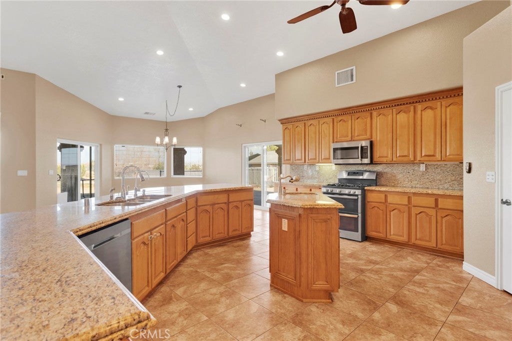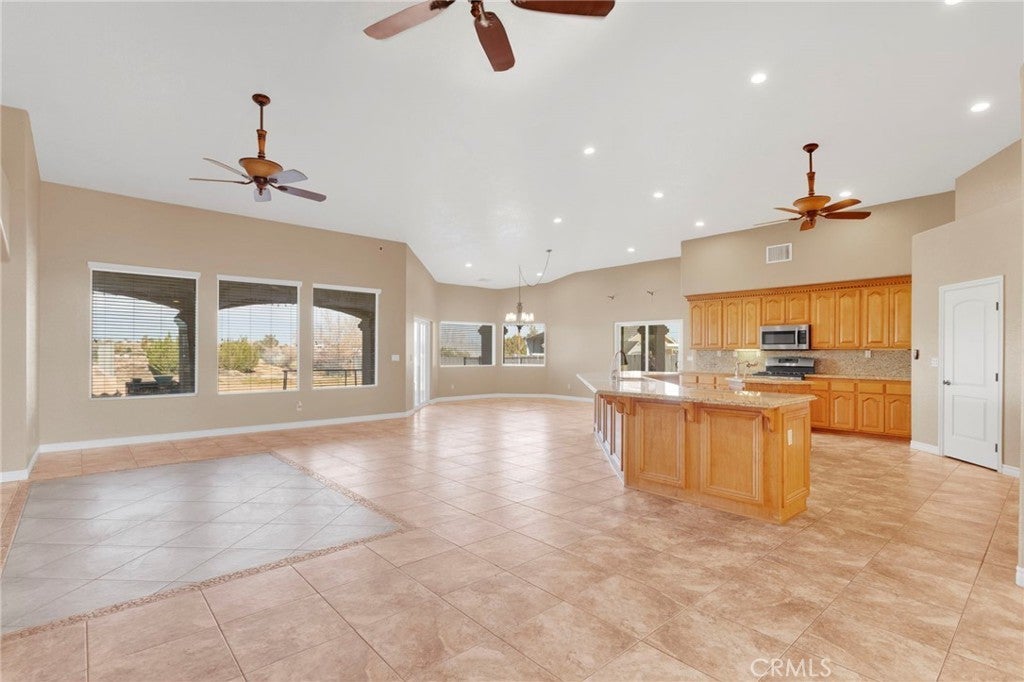 Big space, great flow, and golf course views—this well-appointed Hesperia home offers 6 bedrooms, 3 bathrooms, and approximately 3,730 square feet designed for real life. The open, split floor plan gives everyone room to spread out while still staying connected, and the entry makes a statement with specialty tile flooring featuring a water-jet medallion. Just off the foyer is a perfect office or parlor, followed by inviting living spaces with a fireplace, media center, and a kitchen and dining area built for gathering, complete with breakfast bar seating. The primary suite feels like its own retreat with a fireplace, sitting area, spacious walk-in closet, and an ensuite bath featuring a jacuzzi tub and separate shower—because grown-ups deserve nice things too. Indoor laundry is conveniently located near most bedrooms to save a few steps each day. Outside, enjoy a pool and spa safely tucked behind a security fence, a gated and cross-fenced lot, and peaceful views overlooking the Hesperia Golf Course. Add in a three-car attached garage and you’ve got a home that’s ready for busy days, relaxed evenings, and everything in between.