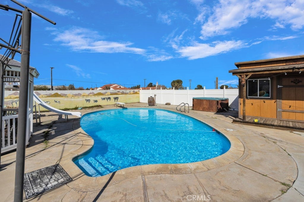 Step inside and discover thoughtfully designed living spaces ideal for both everyday living and effortless entertaining. A formal living room welcomes guests, while the inviting den offers a cozy retreat. The dedicated dining room sets the stage for memorable gatherings, and the spacious kitchen features bar seating and a sunny breakfast nook — perfect for morning coffee with a view. Two oversized bonus rooms provide exceptional versatility — ideal for a game room, executive home office, gym, guest quarters, creative studio, or multi-generational living. An enclosed patio adds yet another comfortable space to relax and enjoy year-round. Outdoors, you can spend warm summer days by the sparkling pool and spa, unwind beneath the gazebo, or host unforgettable celebrations in the one-of-a-kind poolside saloon — an entertainer’s dream and conversation piece all its own. For equestrian enthusiasts and animal lovers, the grounds include corrals, a barn, and expansive open acreage ready for livestock, horses, or 4H projects. A detached garage, generous side parking, and secure fencing provide ample room for vehicles, RVs, trailers, and recreational toys — delivering both functionality and peace of mind. Experience the perfect blend of space, comfort, and country charm in this expansive ranch-style estate — complete with an adjacent lot being offered with an additional 1.37 acres for unmatched flexibility and future potential. Consider building a new home on the adjacent lot (Apn#0411-091-13) while enjoying the comfort of the main residence — whether for multi-generational living, a private guest home, or future resale. Create a second residence to sell, develop a custom dream home for yourself, or explore income-producing possibilities such as a rental or private retreat (buyer to verify zoning and county requirements)0. The opportunity here is exceptional. This listing does not include the adjacent lot but is available for purchase along with this listing. This is more than a home — it’s a lifestyle and an opportunity. Schedule your private showing today and experience the possibilities firsthand.