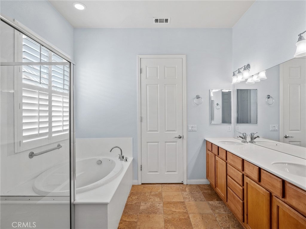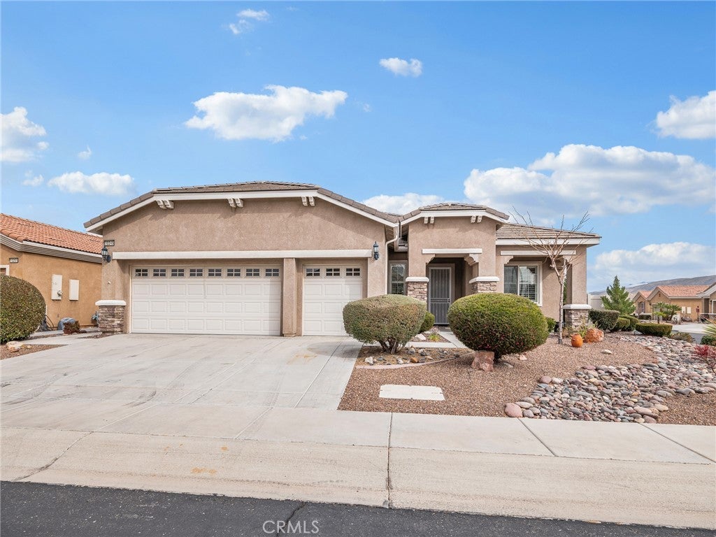 WELCOME HOME !! Gorgeous 2007 Sequoia Model located in the desirable DEL WEBB 55+ Community in Apple Valley! Inside, you'll find 10-FOOT CEILINGS that create a bright and open feel, complimented by STUNNING PLANTATION SHUTTERS for timeless style and privacy. The spacious layout includes a beautiful GOURMET KITCHEN WITH DOUBLE OVENS, breakfast nook, center island and plenty of cabinets - perfect for everyday living and entertaining. The large Living room with COZY FIREPLACE and LOVELY LAMINATE WOOD FLOORING! The spacious master suite with master bath that has LARGE SOAKING TUB AND SEPARATE SHOWER, dual sinks and LARGE WALK-IN CLOSET! Just off the main living area is a BEAUTIFUL SUNROOM with lots of windows, a perfect spot to enjoy your morning coffee or unwind in the evening. The laundry room is both practical and spacious, offering plenty of storage for linens and towels and also INCLUDES WASHER AND DRYER. Two car garage PLUS an ADDED BONUS golf cart garage area provides dedicated space for your golf cart, recreational equipment, or additional storage. A beautifully designed low maintenance front yard that blends natural beauty and easy upkeep. Living in Del Webb offers so many resort-style amenities, sparkling pools, fully equipped fitness center, tennis and pickleball courts and many social activities and clubs! Embrace the opportunity to live in Del Webb - a relaxed and fulfilling lifestyle!